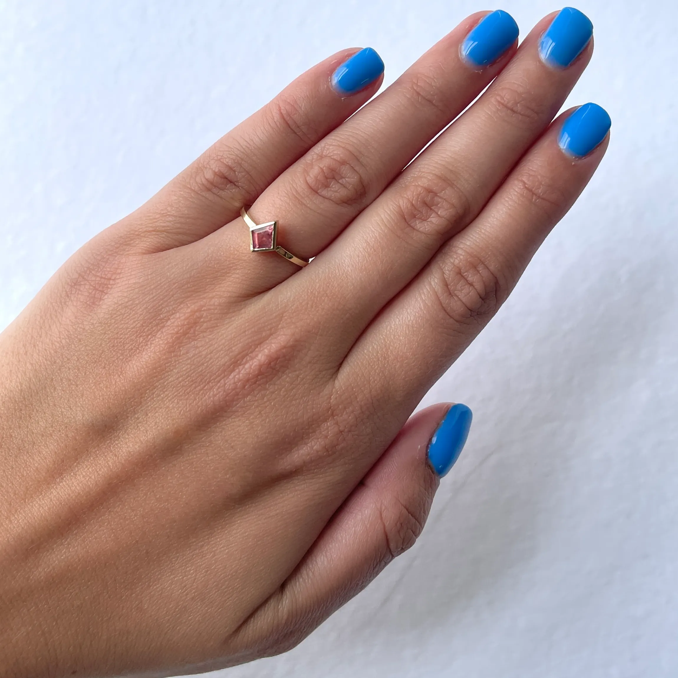 14 karat yellow gold set with a pink kite-cut sapphire totaling 0.60 carat.