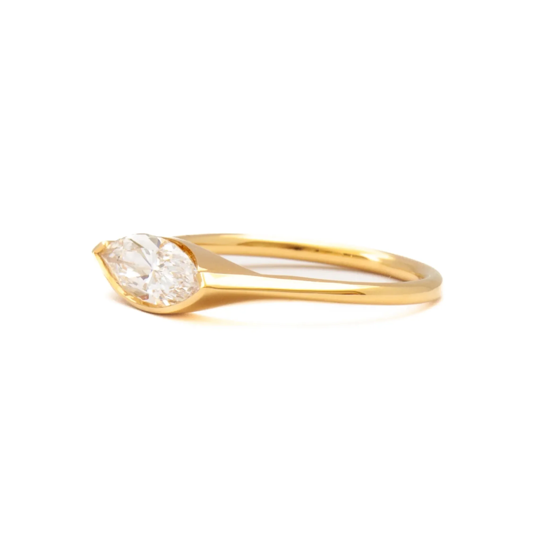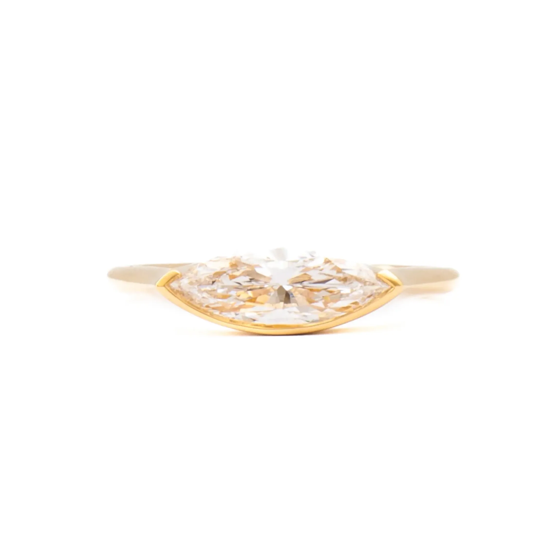 18 karat yellow gold set with one marquise GIA-certified diamond (G color/SI1 clarity) totaling 0.78 carat.