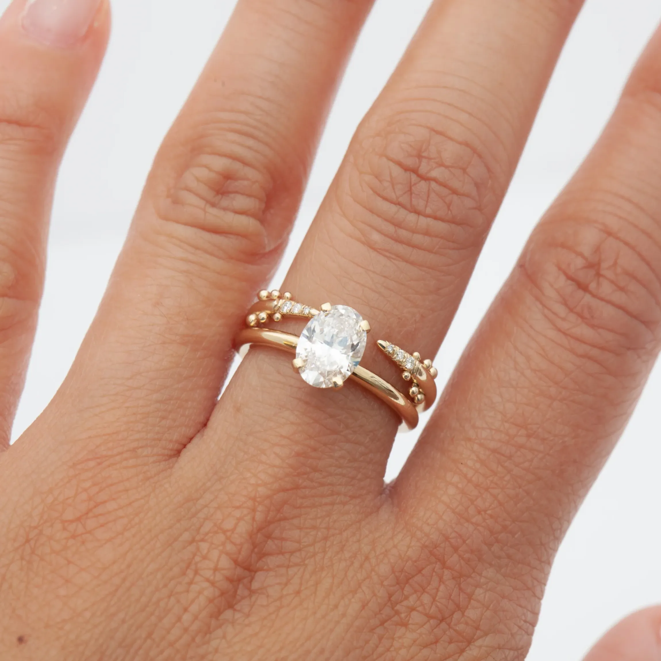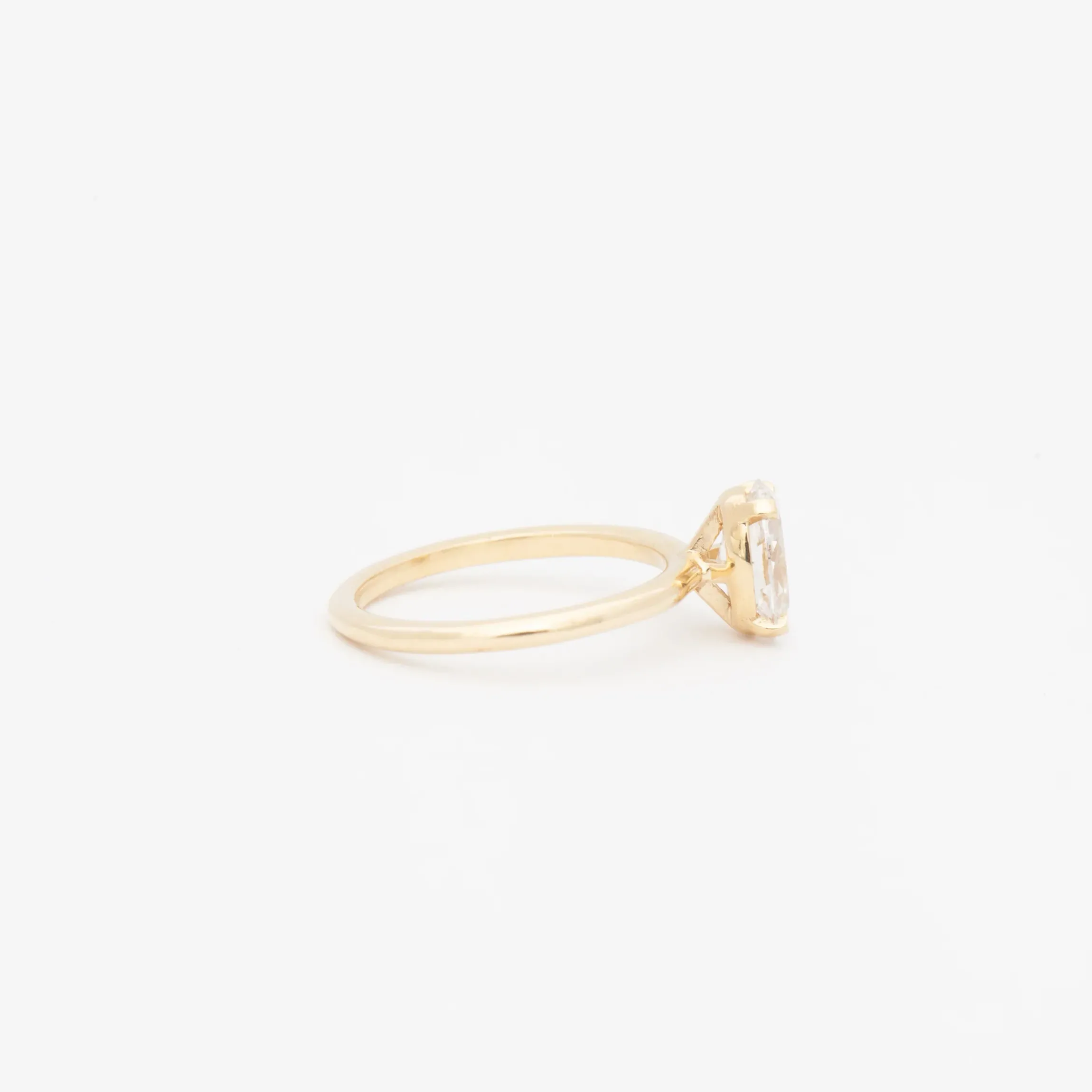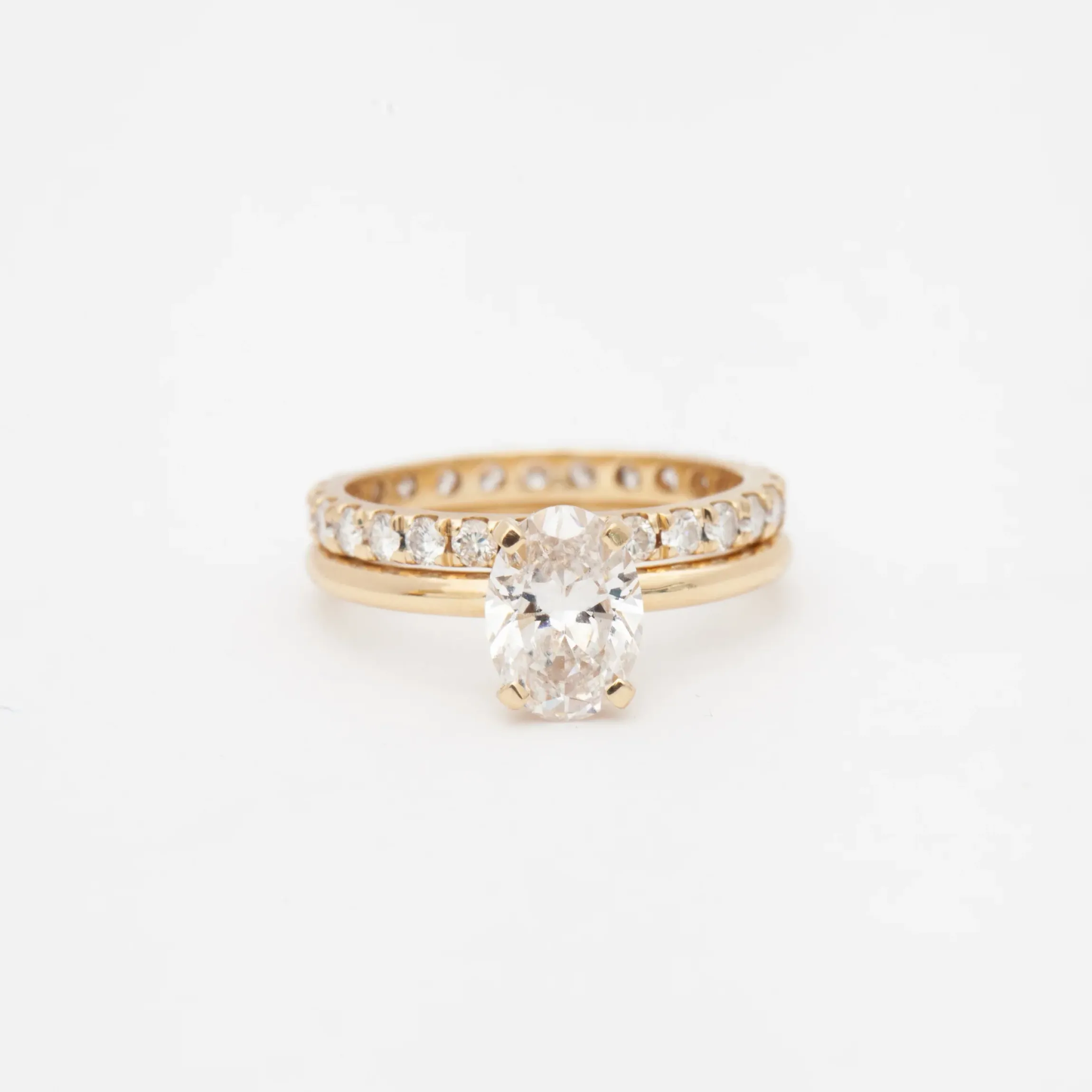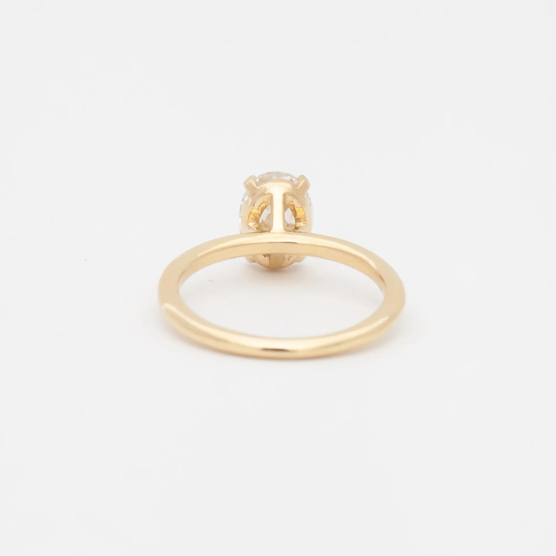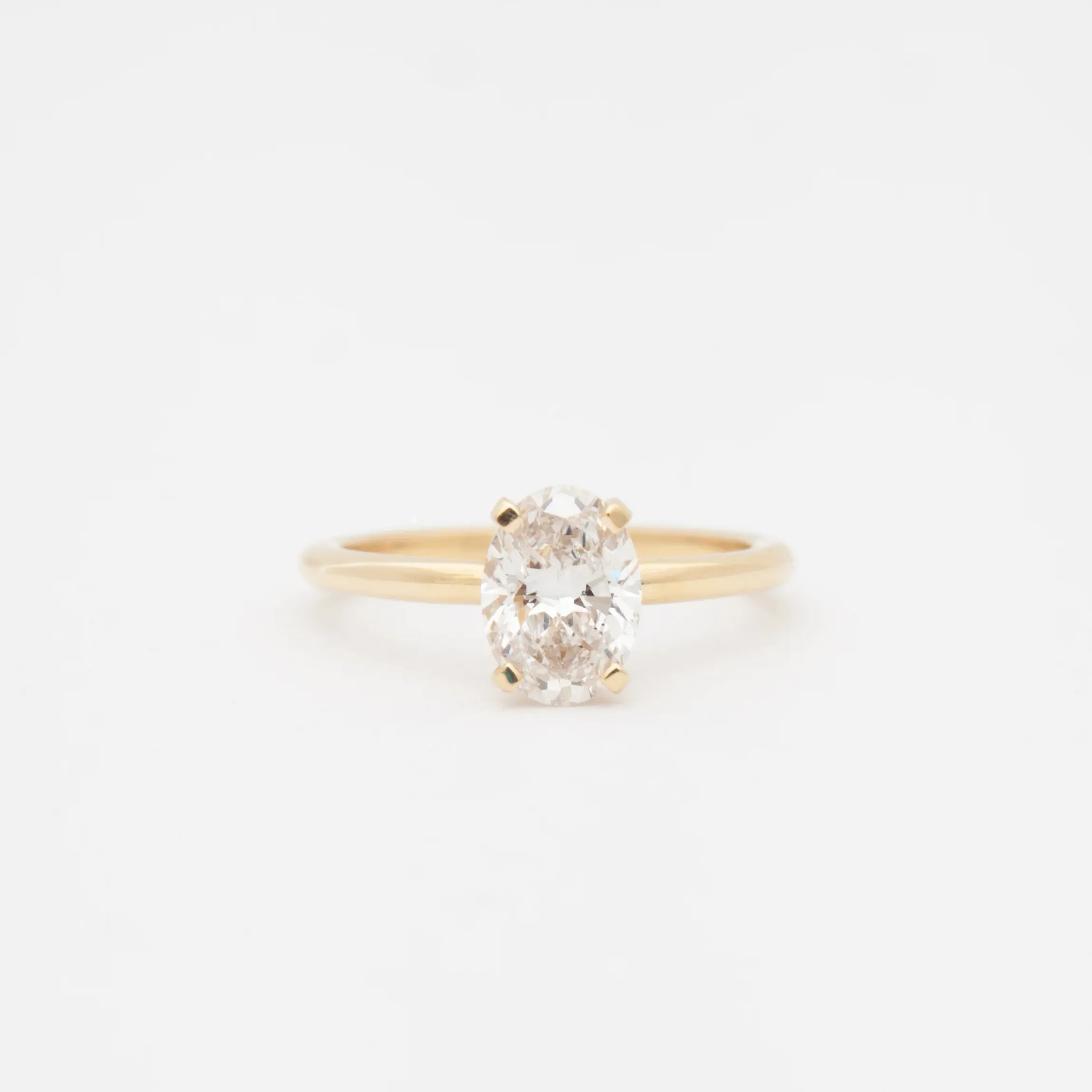 18 karat gold set with one 1.25 carat lab-grown Diamond Foundry oval white diamond (H color, VS2 clarity) center.