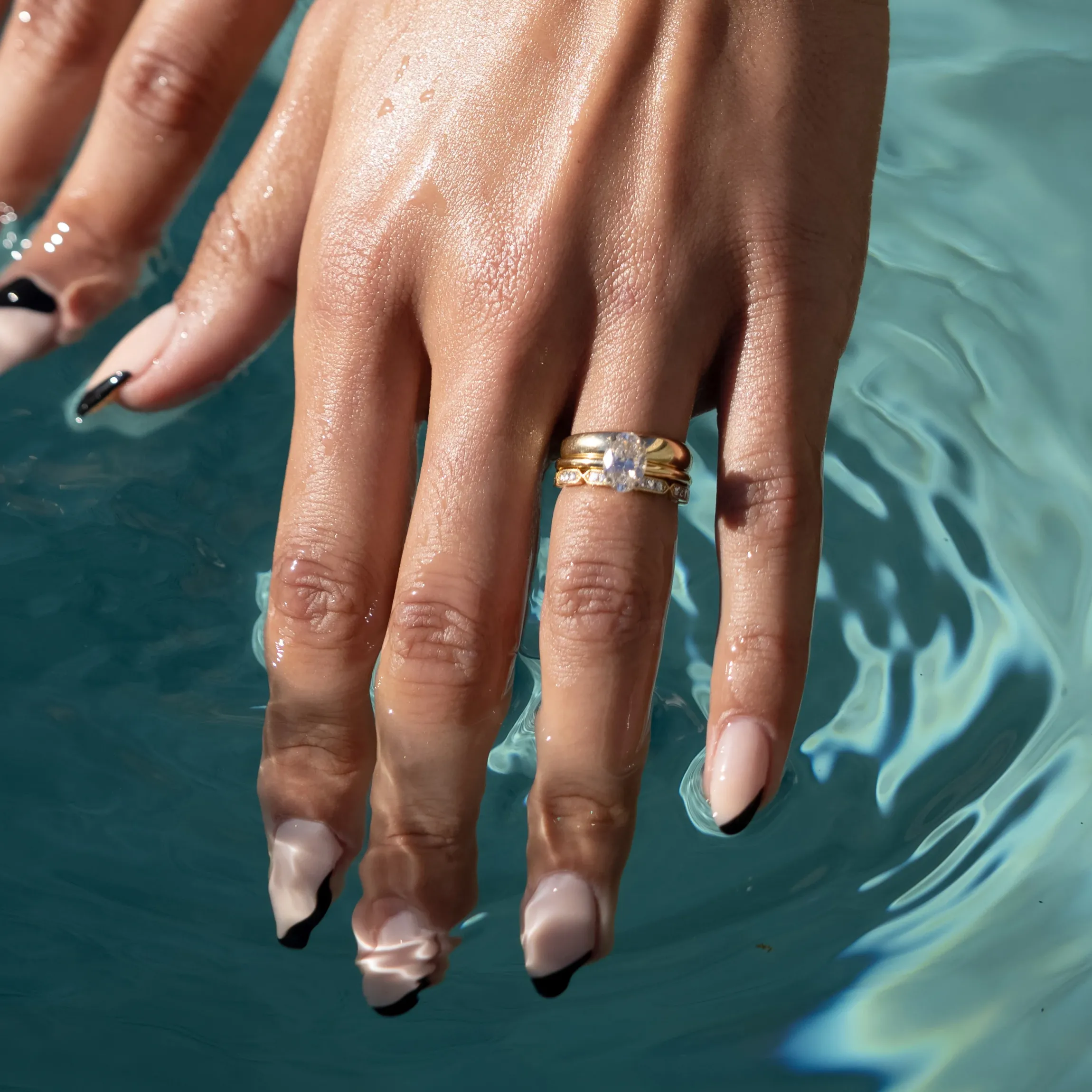 Art and science meet in this elegant new iteration of our Coursière setting thanks to a responsibly, sustainably grown diamond center made by our partners at Diamond Foundry. Clean lines serve as an architectural base while flattened square prongs cradle the oval in rich yellow gold. Made with intent and craft, this ring expresses a modern way to make a lifelong commitment. Made in the U.S.A.