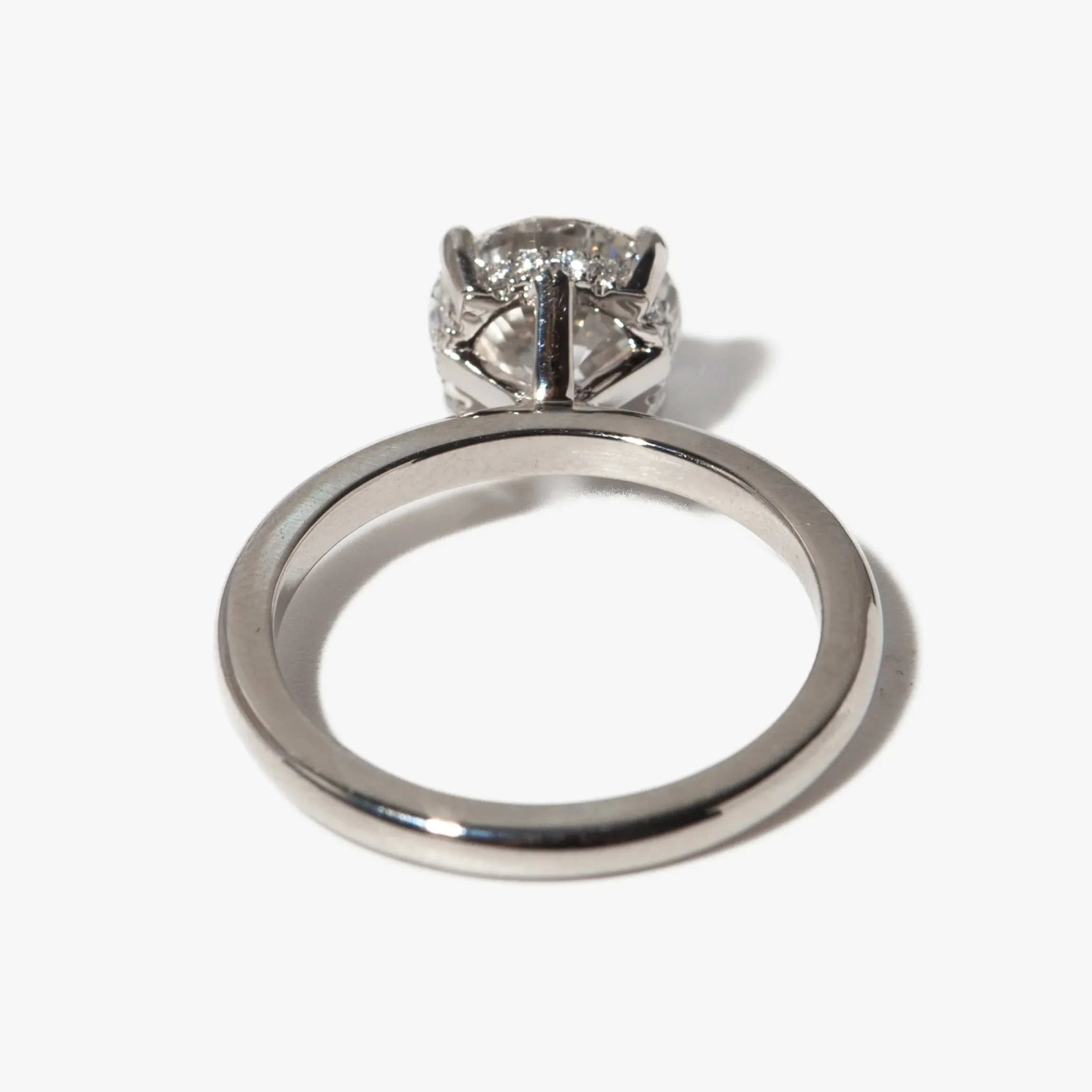 The subtle architecture of this solitaire setting lets the fantastic faceting of this gorgeous 2.00carat lab-grown diamond shine its brightest. With a hidden halo featuring dazzling pavé diamonds, this ring is truly beautiful from every angle. The height of the gallery allows for bands to pair perfectly, try stacking it with a step-cut diamond band for understated shimmer or amp up its brilliance with a stack of eternity bands. Made in the U.S.A.