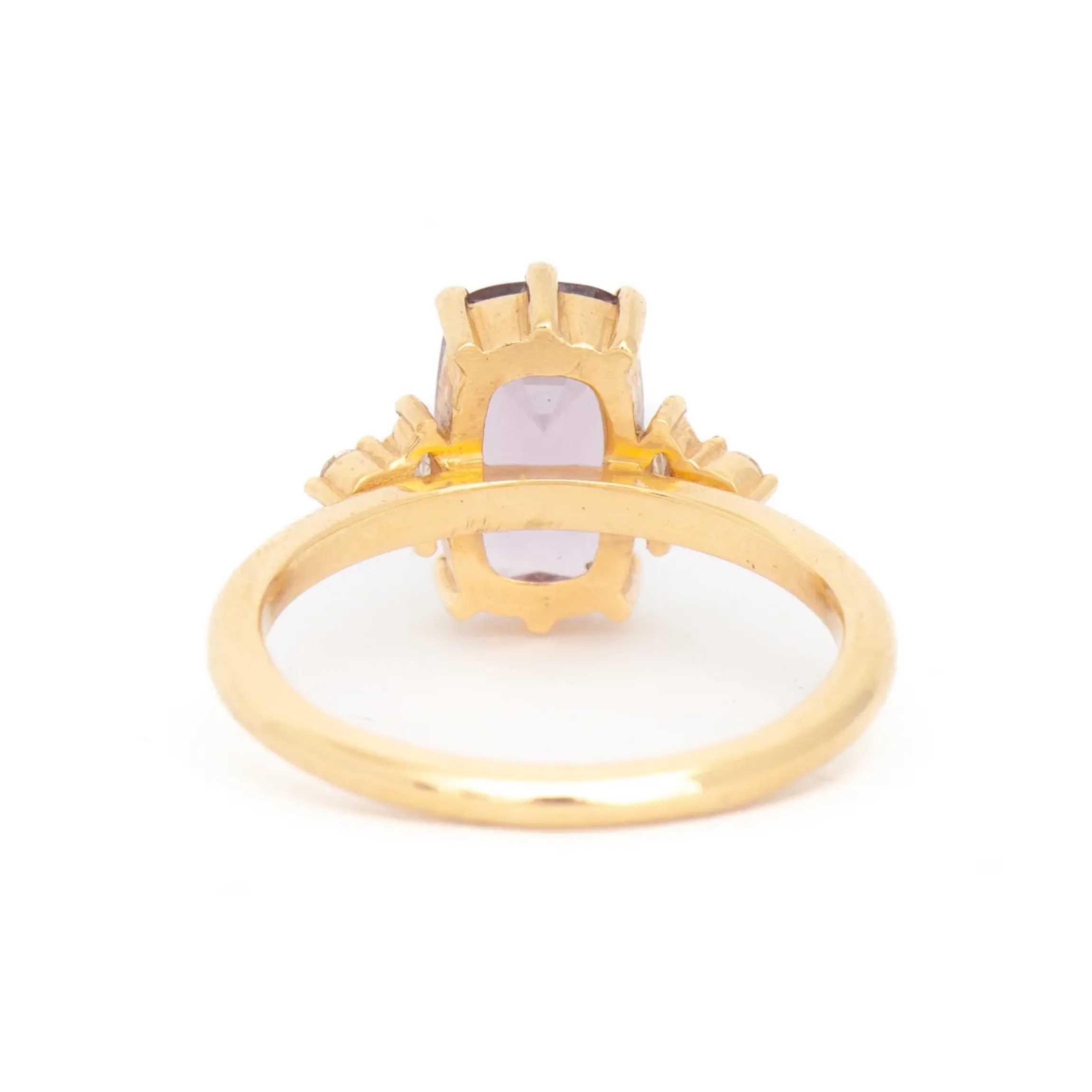It’s hard not have this moody-colored ring catch your eye. The center spinel stone shifts color between rosy-purple and light lavender depending on the light you’re in. On either side, marquise and round diamonds add some sparkle whike the prong details add extra visual interest. This Desi ring brings the drama.