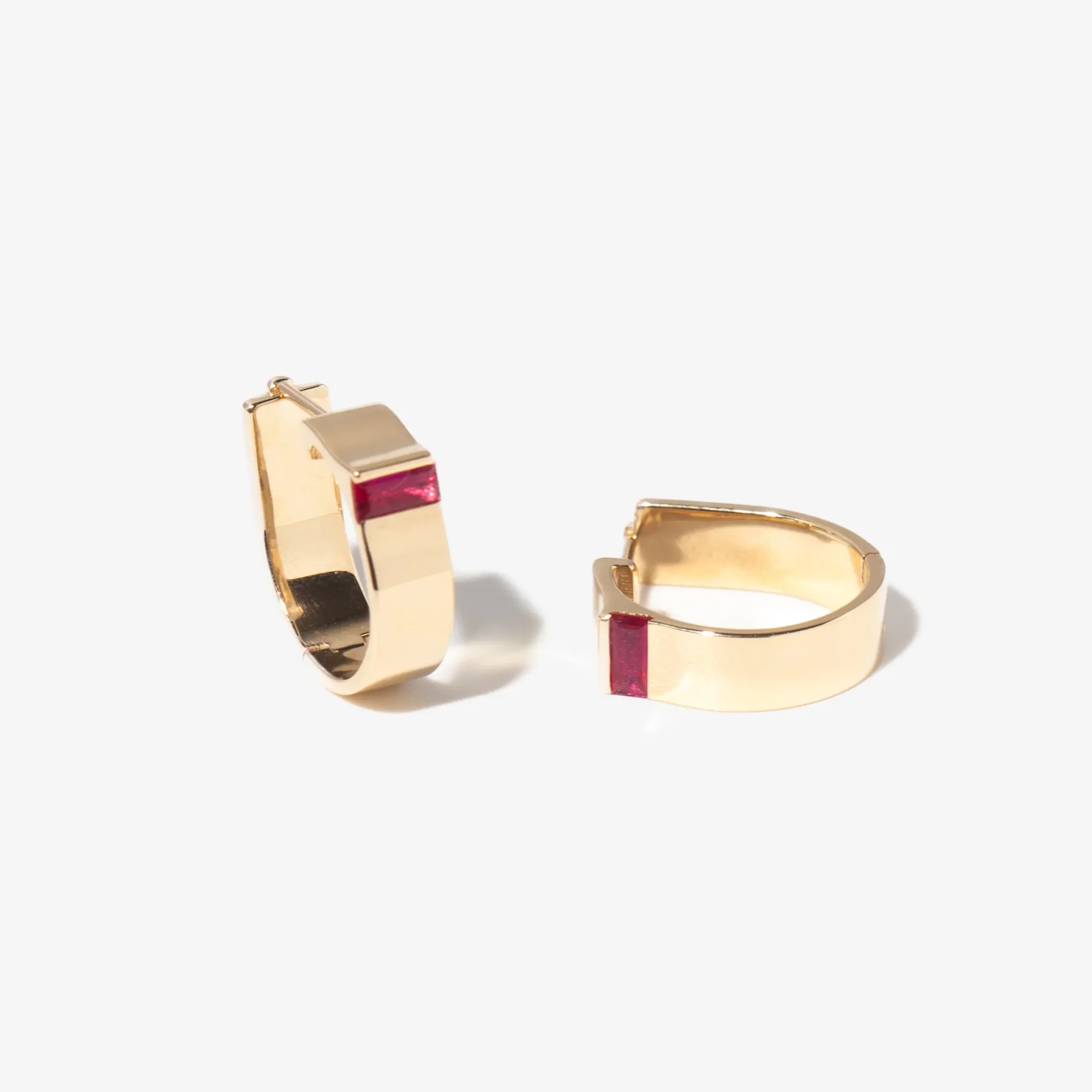 SHW embraces the unusual and honors individual style, as well as the intimate ritual of wearing jewelry. The Braga hoops combine a geometric silhouette with red baguette-cut rubies. Intentionally designed and handmade in NYC, these huggies are perfect for someone looking to add some rubies to their stack.