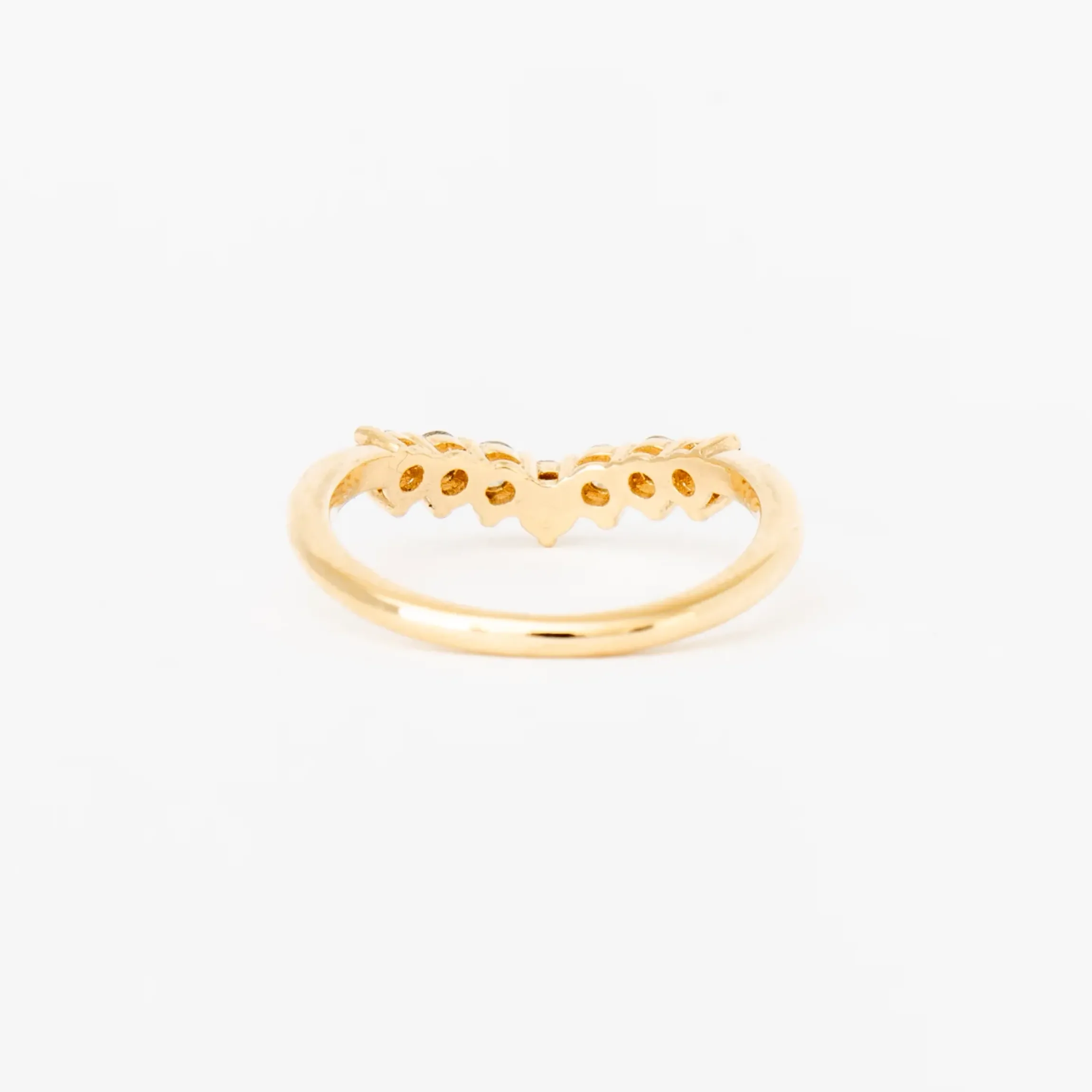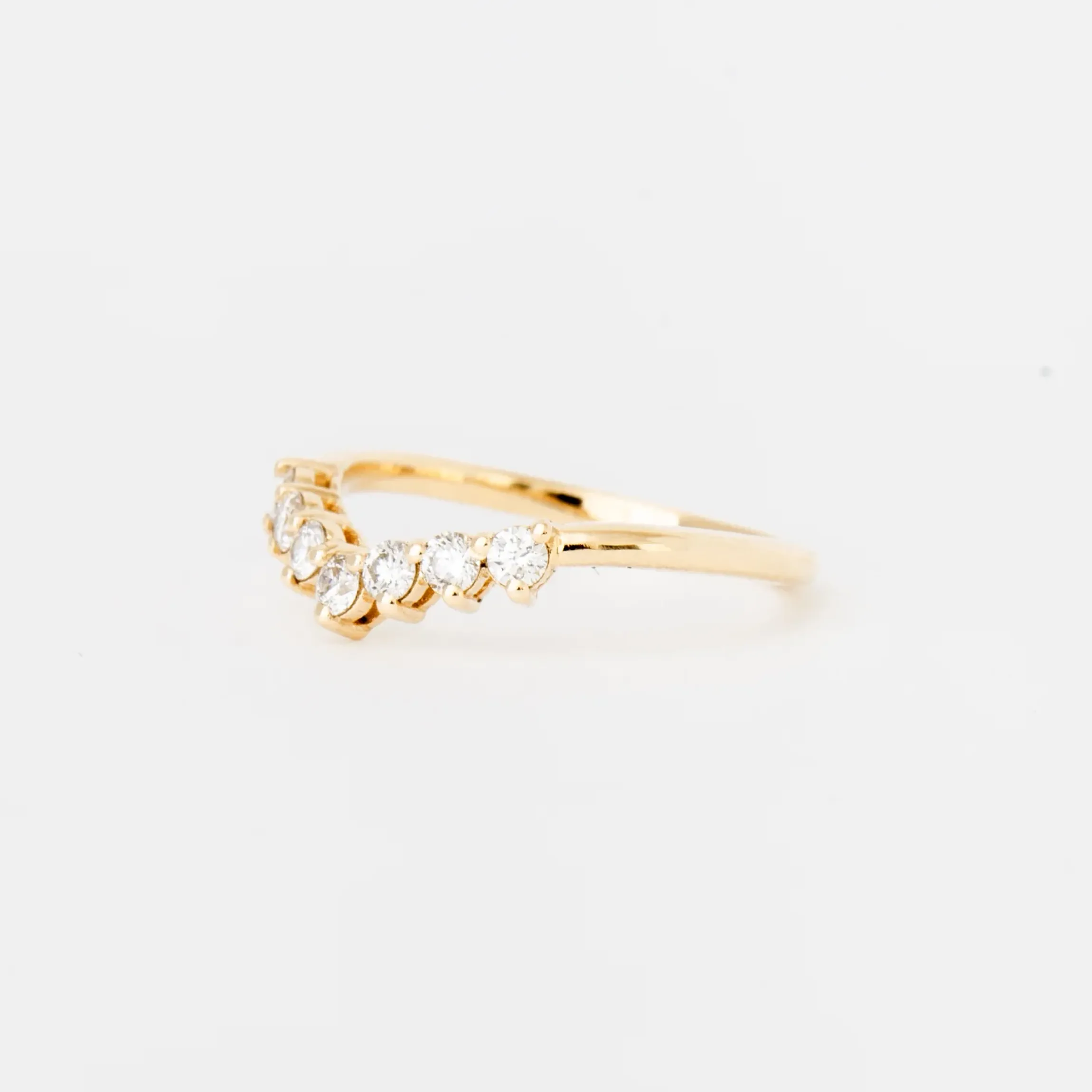 A timeless option, the Angelina ring features seven round diamonds set on a slight curve. Pair the diamond covered band with an engagement ring or another band, you’ll be pleased to see how beautifully it hugs other rings. Made in San Francisco.