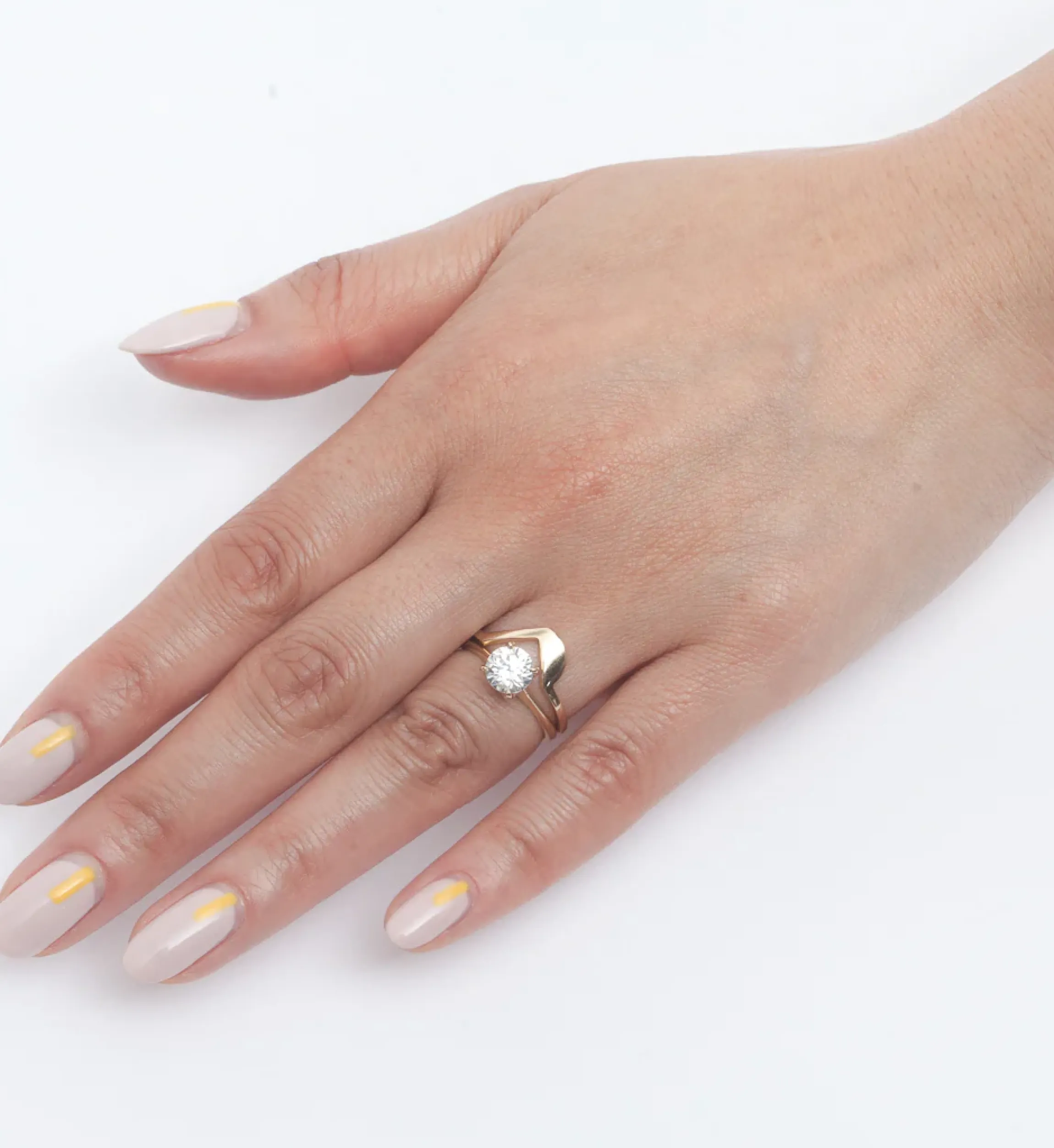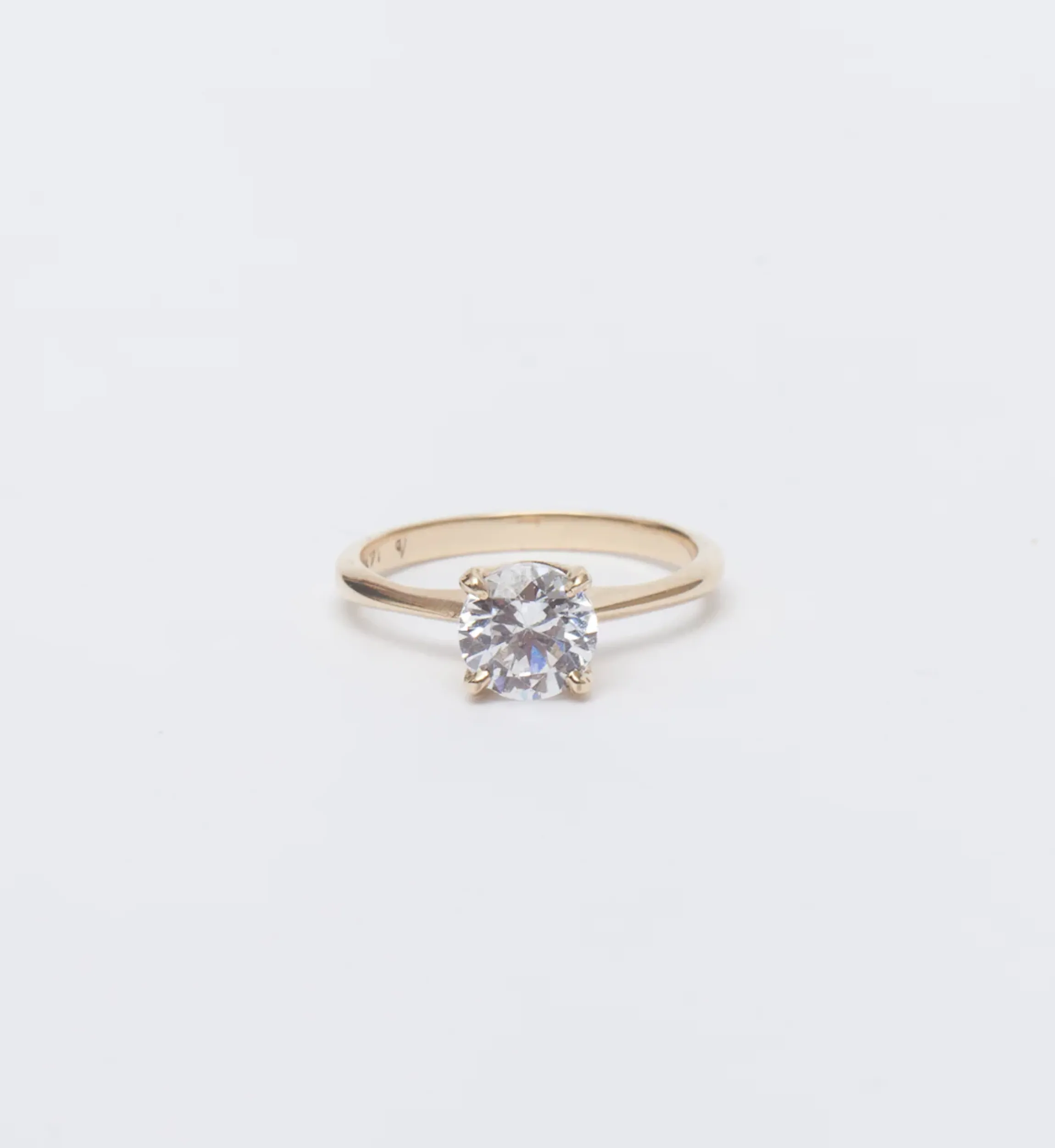 14 karat reclaimed gold with approximately 1 carat white diamond. Please note the listed price accounts for a diamond that may vary by +/-0.05 carats.