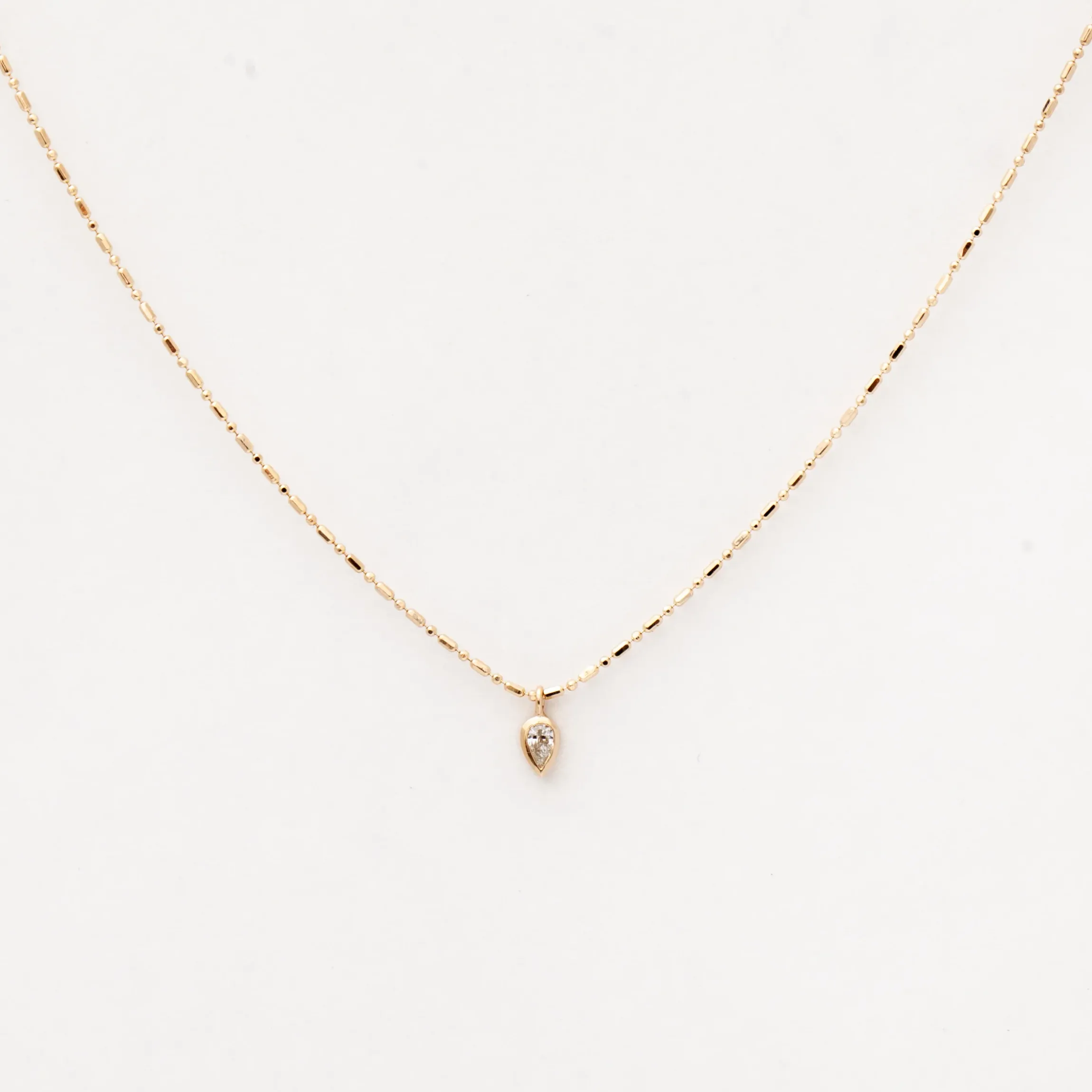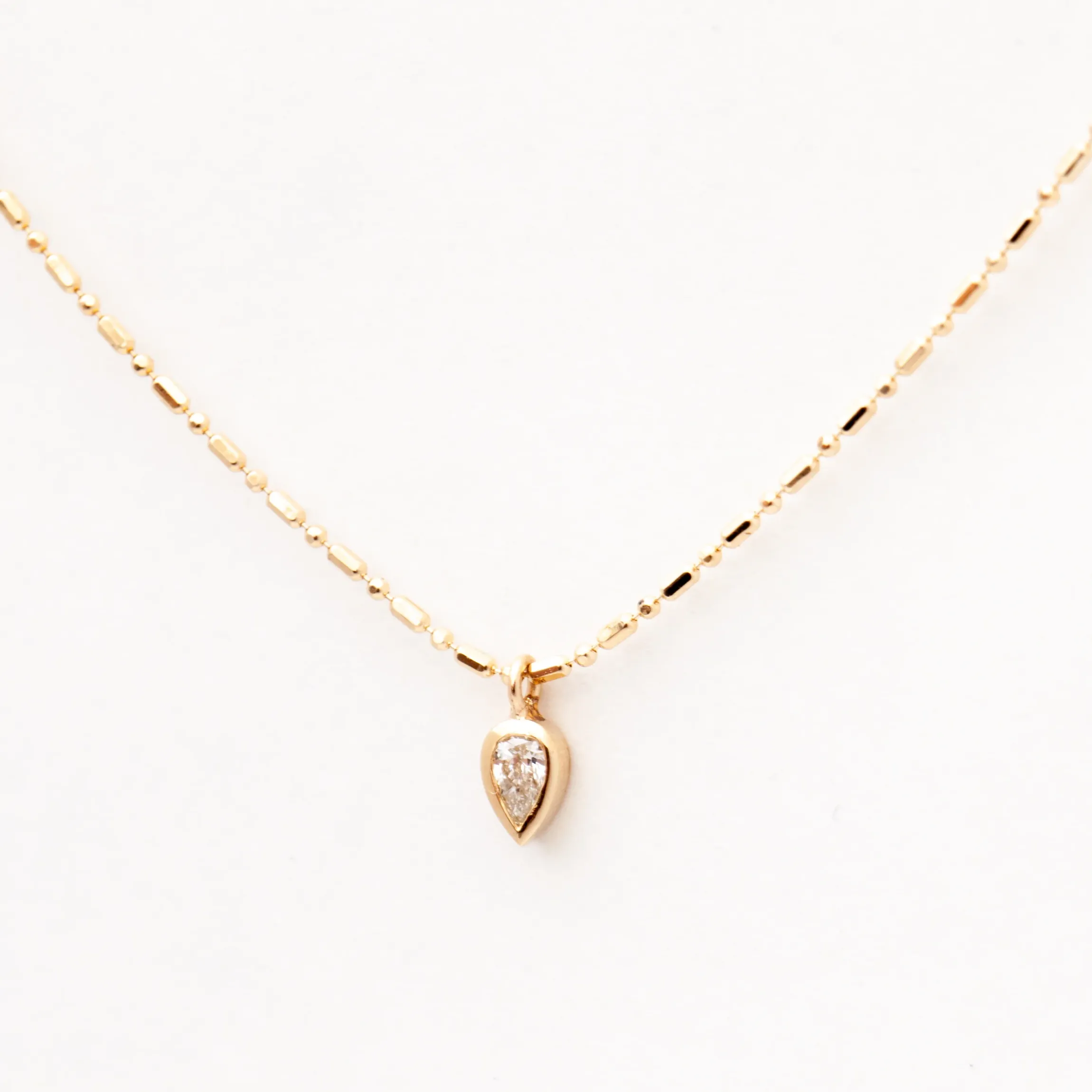 Sparkle and shine with this unique twist on the classic diamond necklace! The star of the show is the bezel pear diamond charm that gracefully glides along a subtle tube u0026amp; bead chain. Perfect for wearing solo, but even more fun when layered with other pieces. Finished with a hallmarked logo plate and spring-ring clasp closure. Made in the U.S.A.