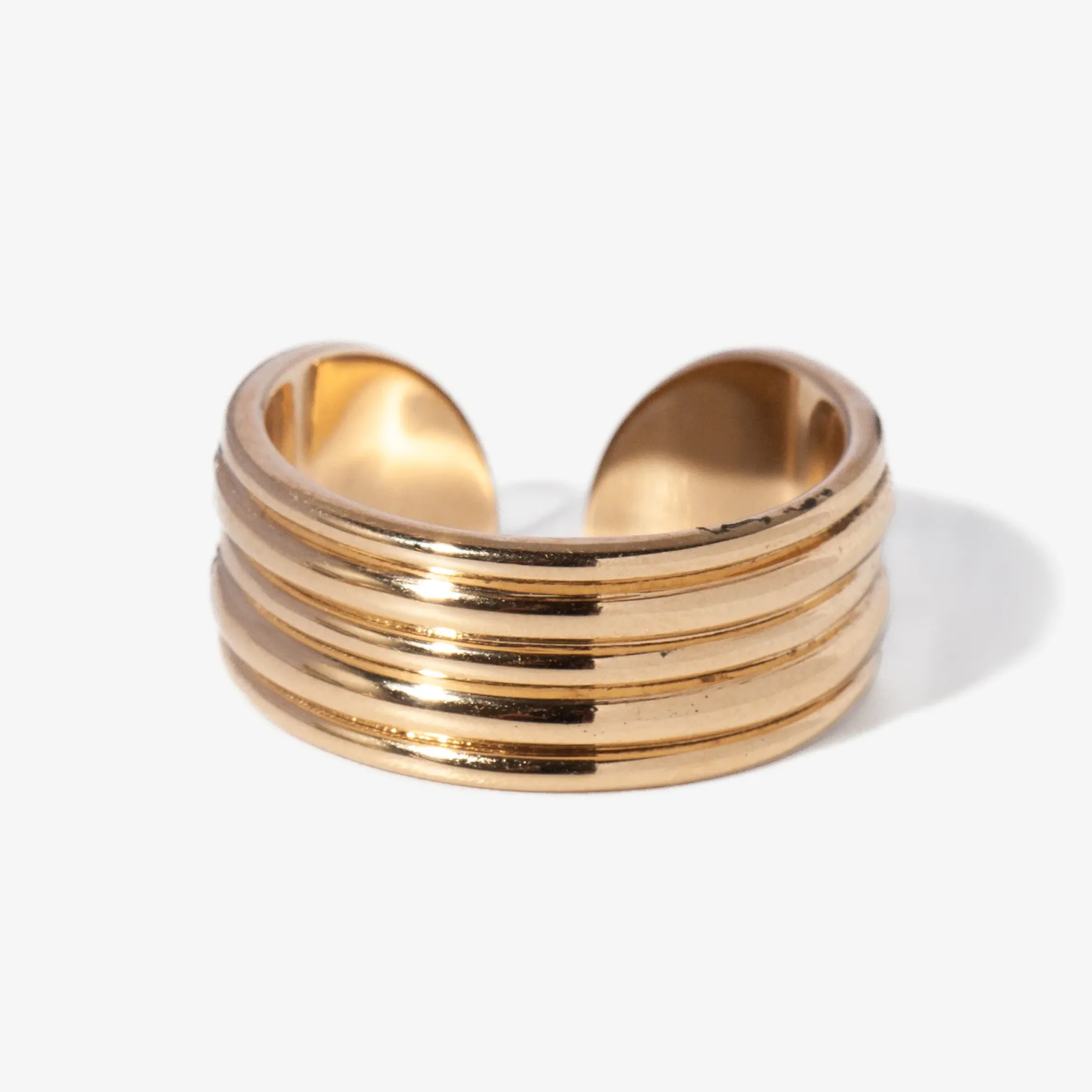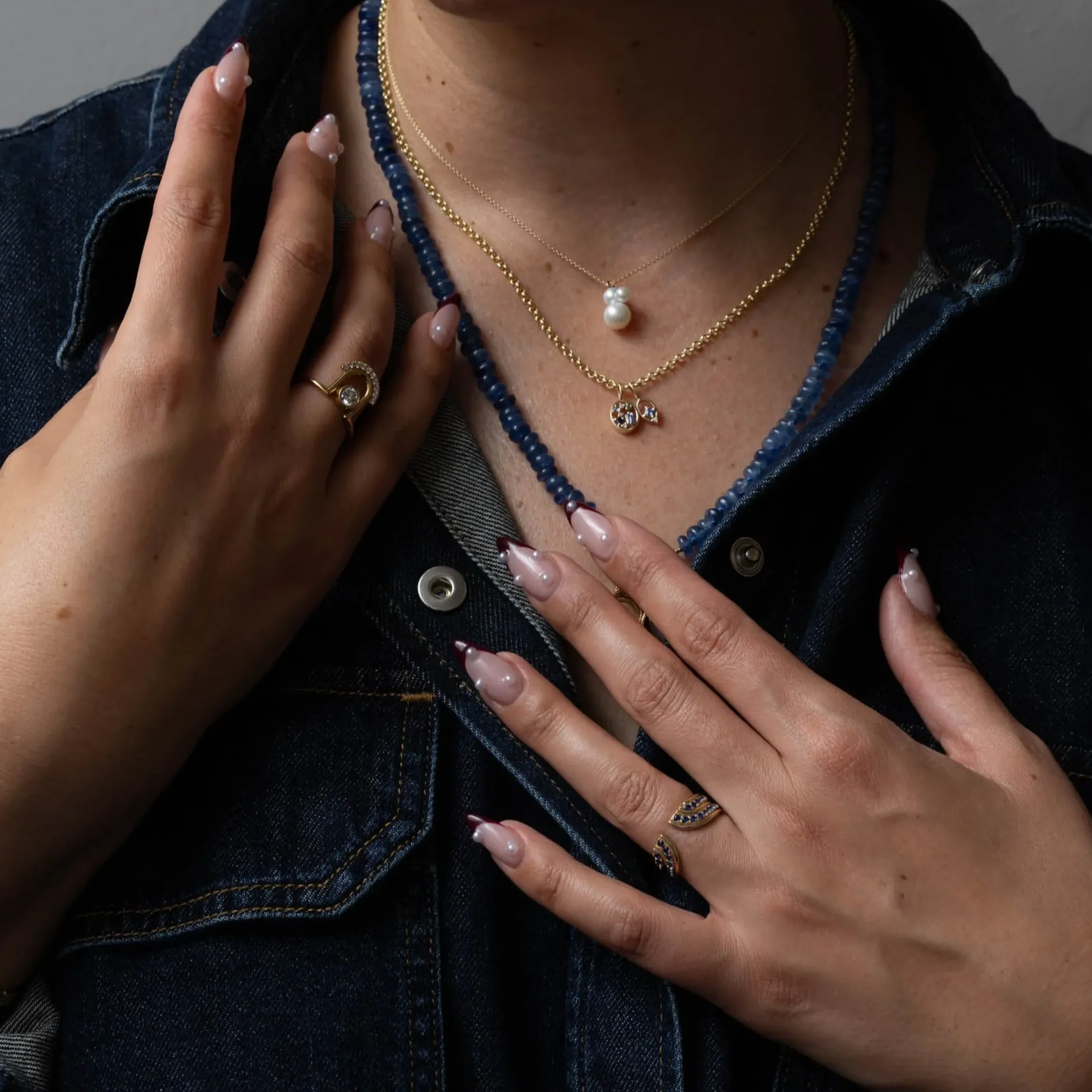 The Stella Ring, designed by Casey Perez, features her signature architectural lines in a modern yet minimal design. Crafted from recycled 14K yellow gold, the sleek band wraps around the finger with an ombre of blue sapphires. It’s perfect for wearing solo or stacked, showcasing Casey’s meticulous attention to detail with four bubbly gold lines. Designed and crafted in Brooklyn, NYC.
