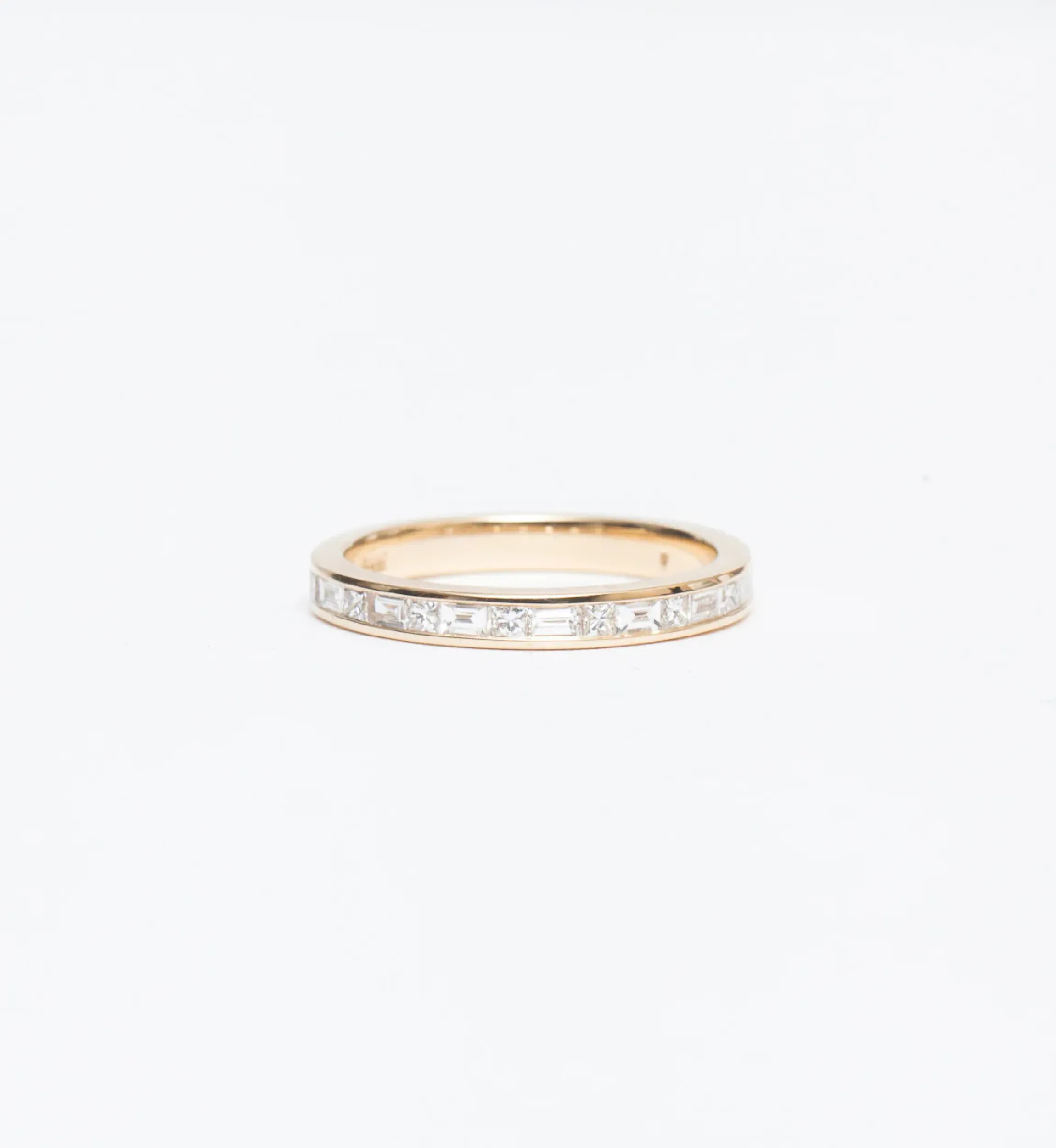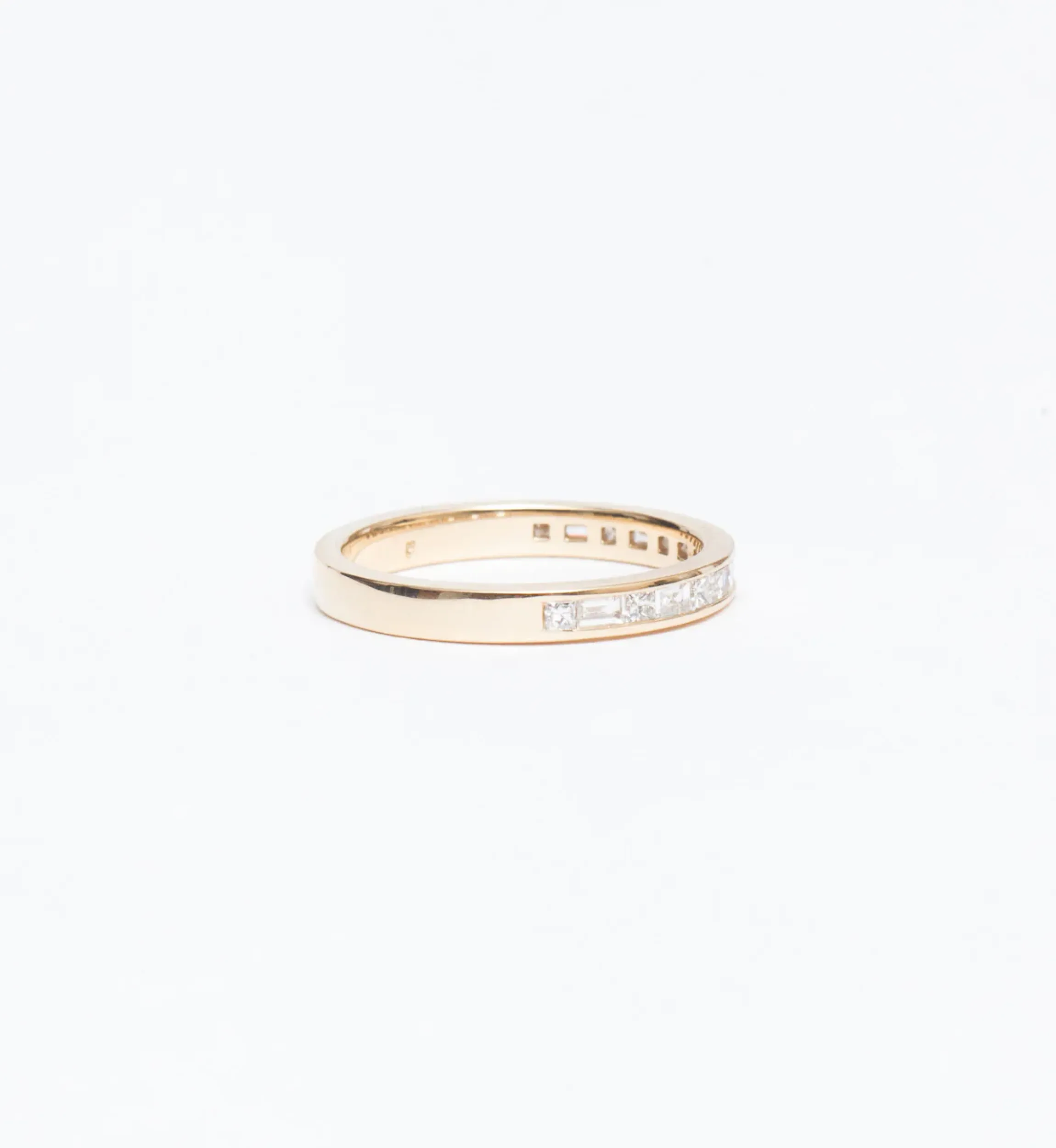 14 karat gold with fifteen (0.375 carat) of princess-cut and baguette-cut diamonds.