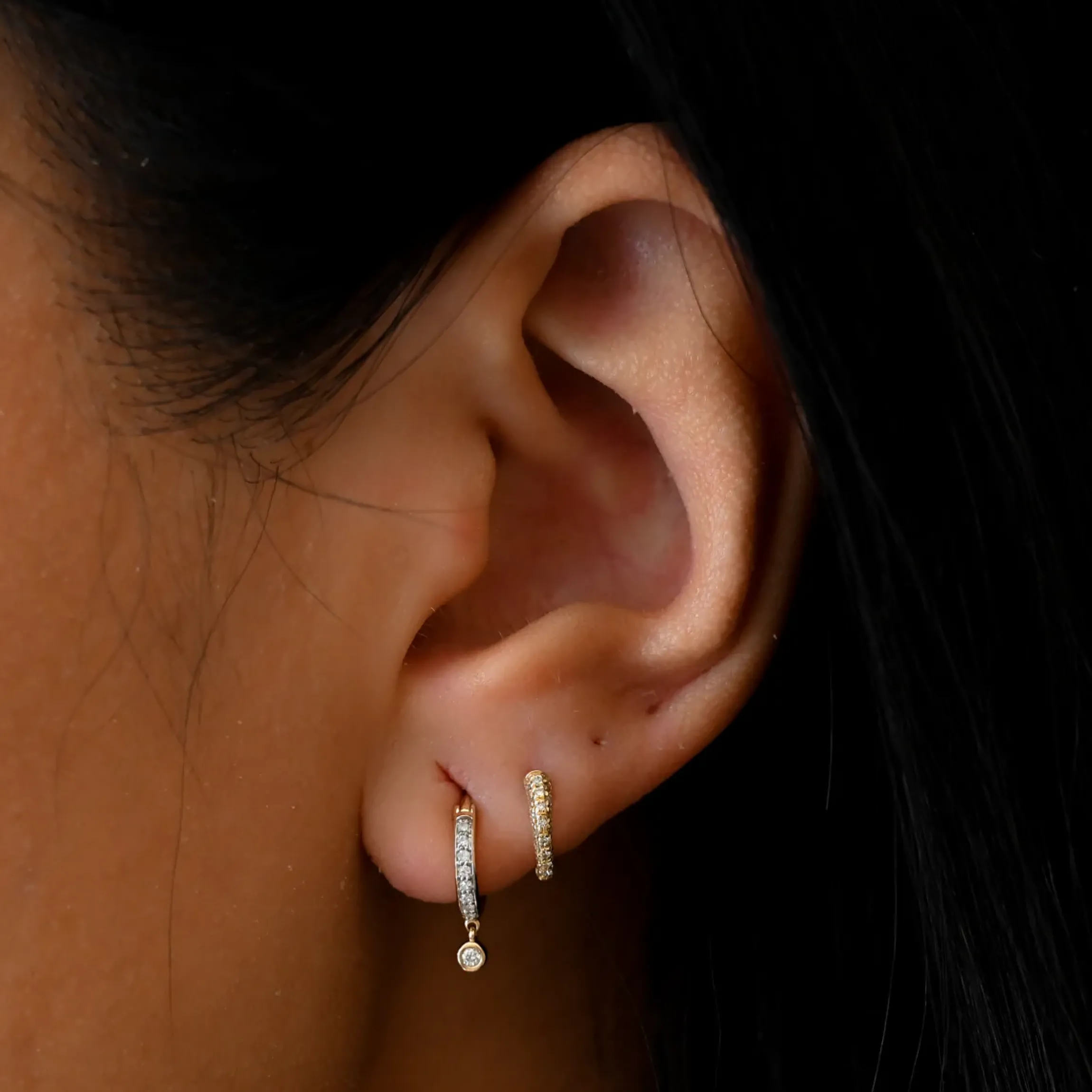 The Gabriela Artigas signature tusk silhouette is no less striking in miniature, especially when encrusted with white diamonds. Perfect for everyday wear, these new huggies are designed for comfortable wear both low on the lobe and higher up the ear for those with multiple piercings. Sold as a pair.