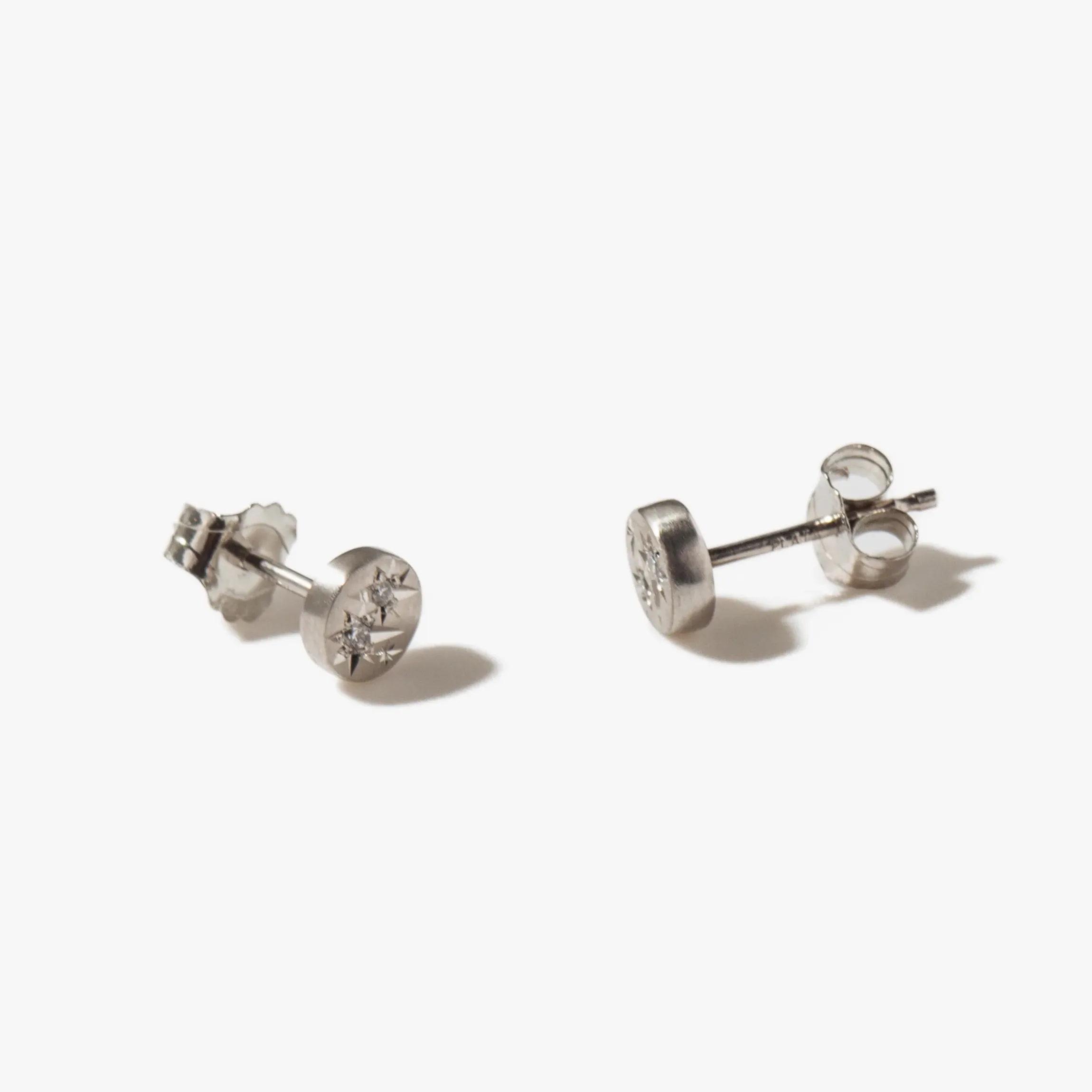 Platinum set with four white brilliant-cut Canadian origin diamonds (FG/VS) totaling 0.04 carat.