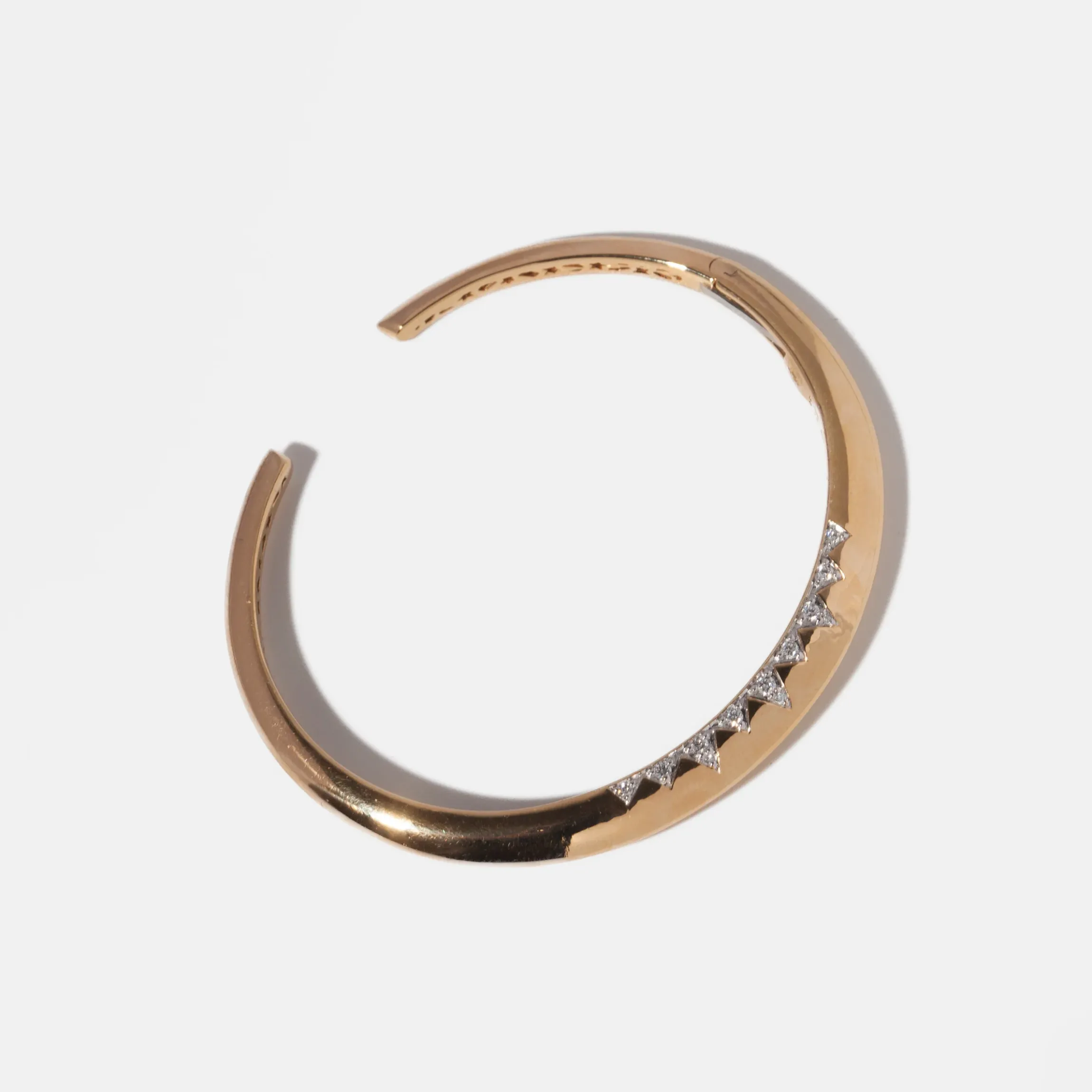 The unique dome shape and sparkling round white diamonds at the crown points make this piece a must-have for anyone looking to elevate their arm candy. Designed in New York City with femininity, motherhood, beauty, nature, and harmony in mind.