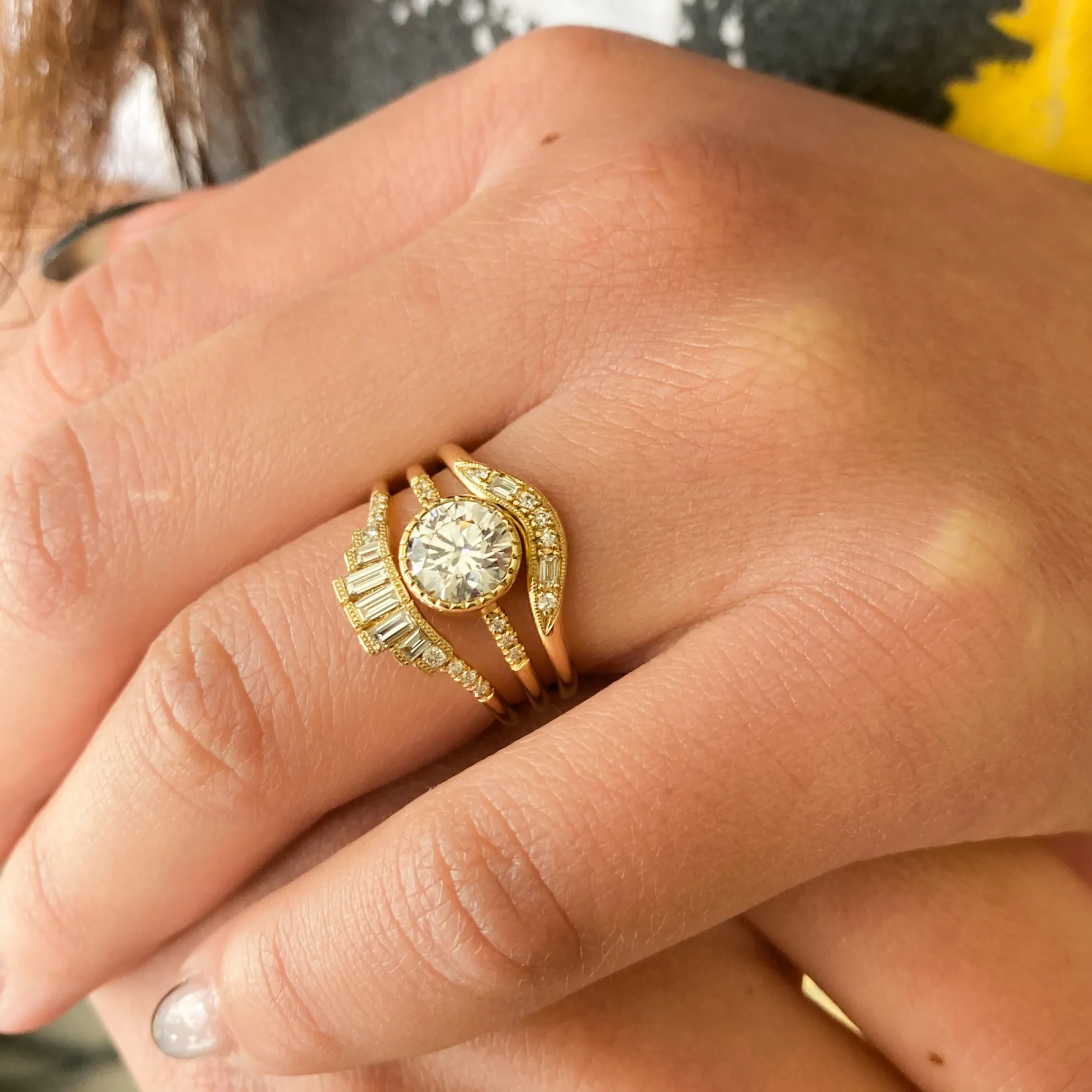 Baguettes are one of our favorite silhouettes for their clean cut, modern geometric shape, and the way they uniquely catch sparkle. This new Diamond Baguette Crown Arch Band features them in the most beautiful way possible. Made in the USA.