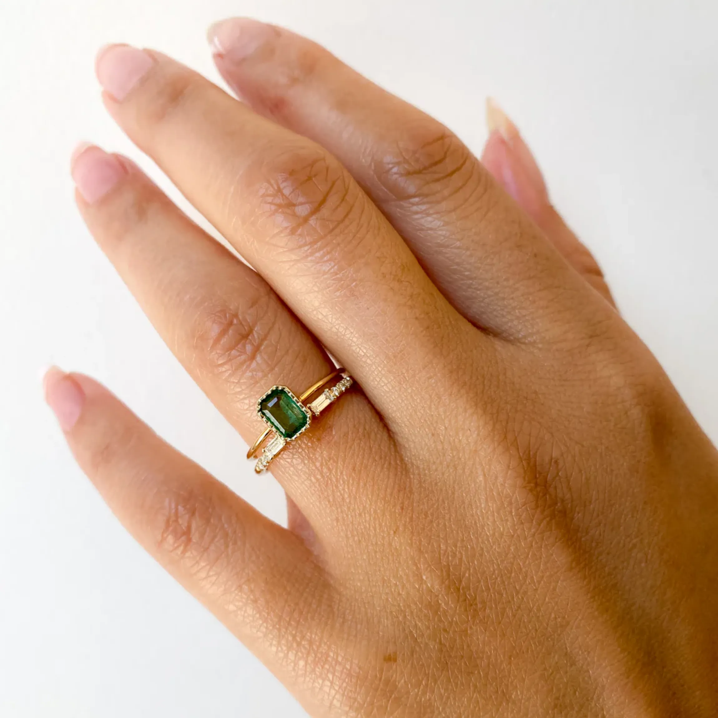 We love how Jennie Kwon revisited her beloved Equilibrium style by opening it up and turning it into the perfect stacking band. The center space makes it easy to accommodate all types of shapes and settings, letting you add a little extra sparkle anywhere you like. For a more minimal look, wear it alone to make its distinctive form even more special. Made in the U.S.A.