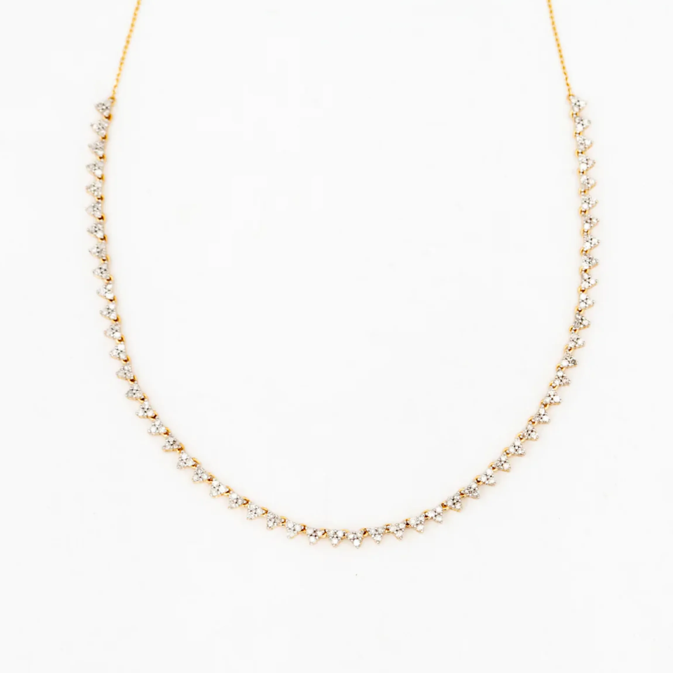 As with any riviera—the Italian word for “coastline”—this necklace sparkles fiercely yet softly with every ray of light that touches it. Wear it alone and let the clusters of diamonds do the talking—or pair it with gold chains of varying lengths and textures for an unforgettable yet versatile stack suitable for day and night.