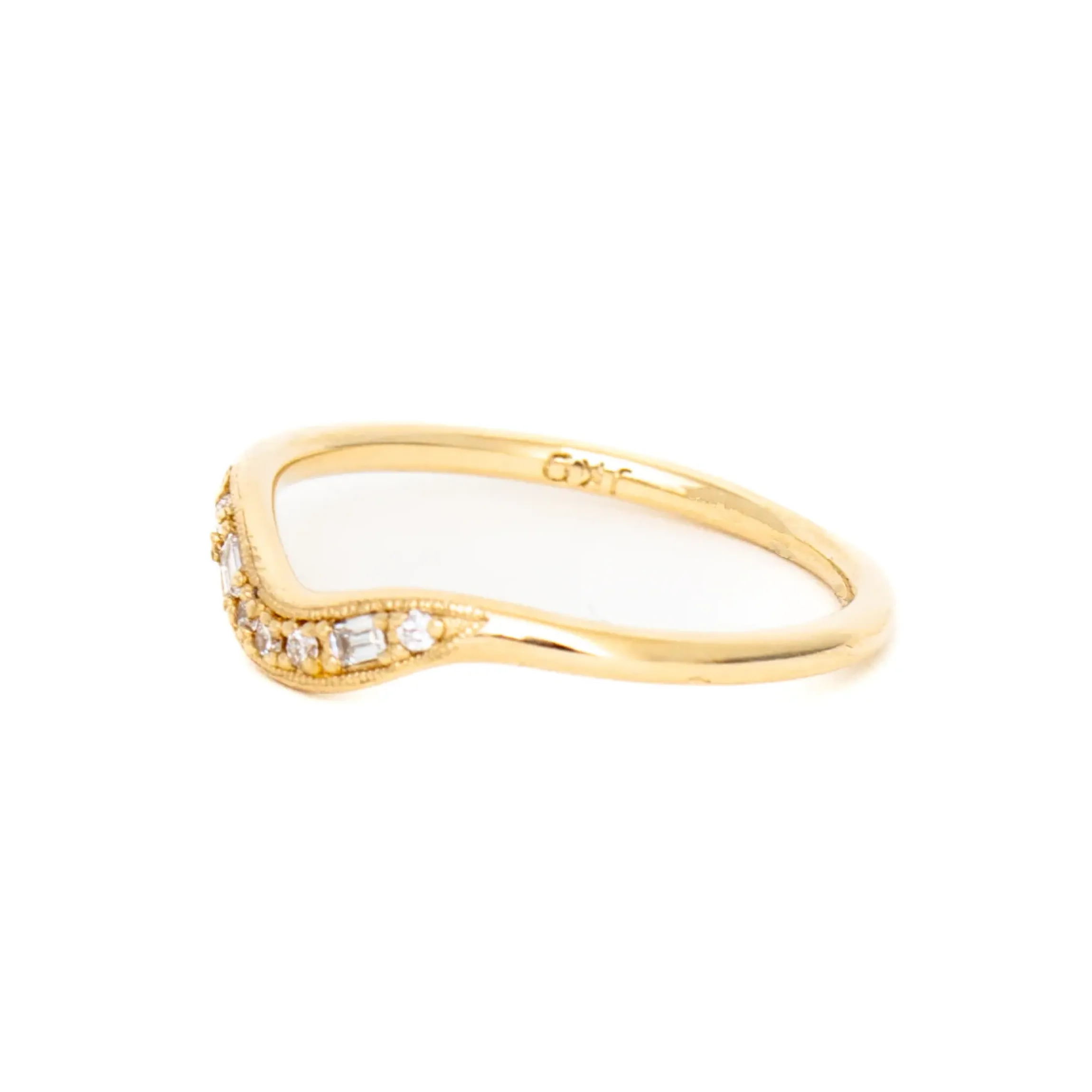 – two 2 x 1.25 mm baguette diamonds”}’ data-sheets-userformat='{“2″:769,”3”:{“1″:0},”11″:4,”12″:0}’ data-mce-fragment=”1”>five 1.2 mm diamonds and <span data-sheets-root="1" data-sheets-value='{"1":2,"2":"A graceful curve that pairs beautifully with existing rings, but the intricate detail that makes her pop.