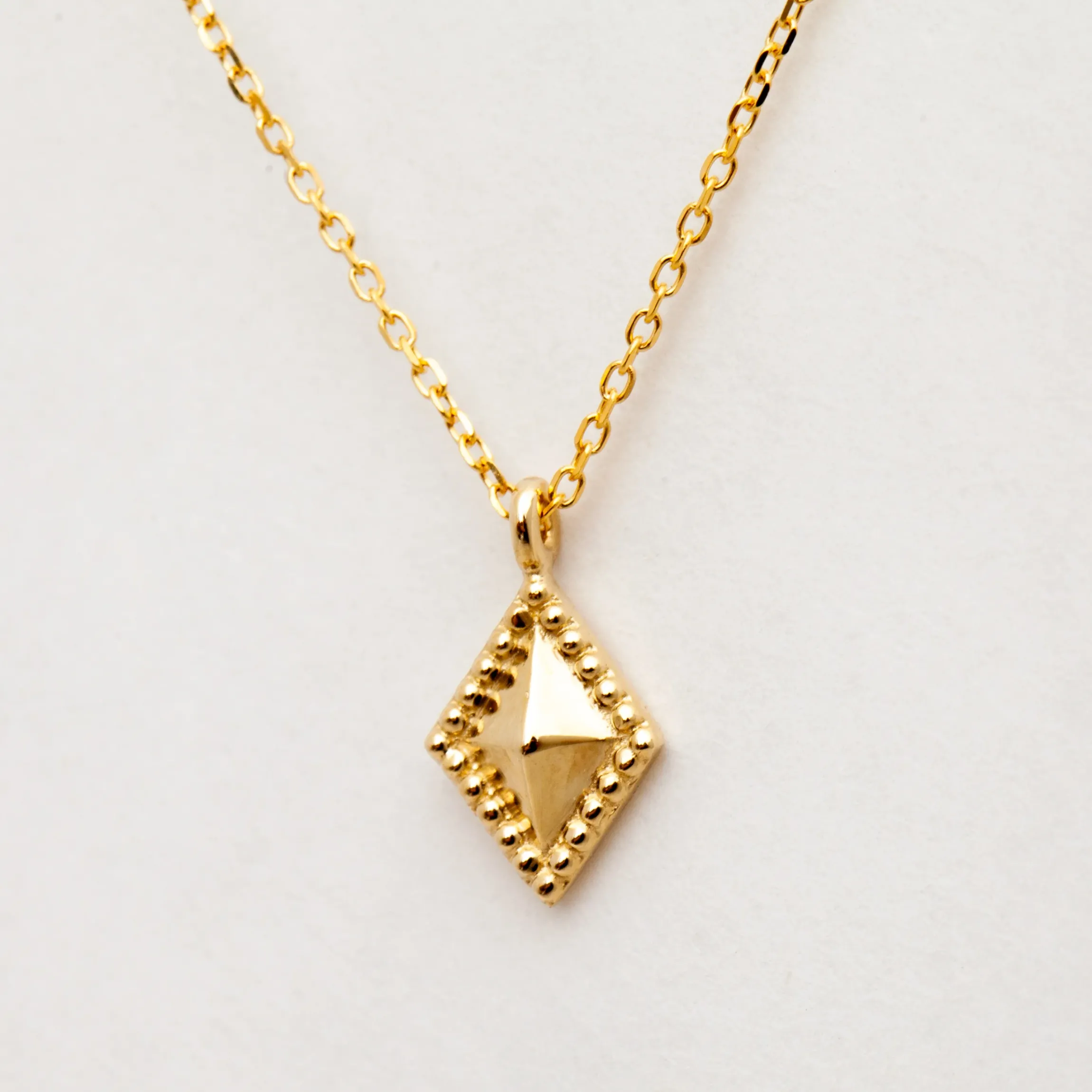 This necklace is simplicity itself, which is why we’re so infatuated with its perfectly polished shape. A domed diamond pendant cast in solid 14 karat gold hangs effortlessly from a delicate diamond-cut cable chain. This gorgeous piece catches light beautifully for a wonderfully subtle shine. Finished with a spring ring clasp. Made in the U.S.A.
