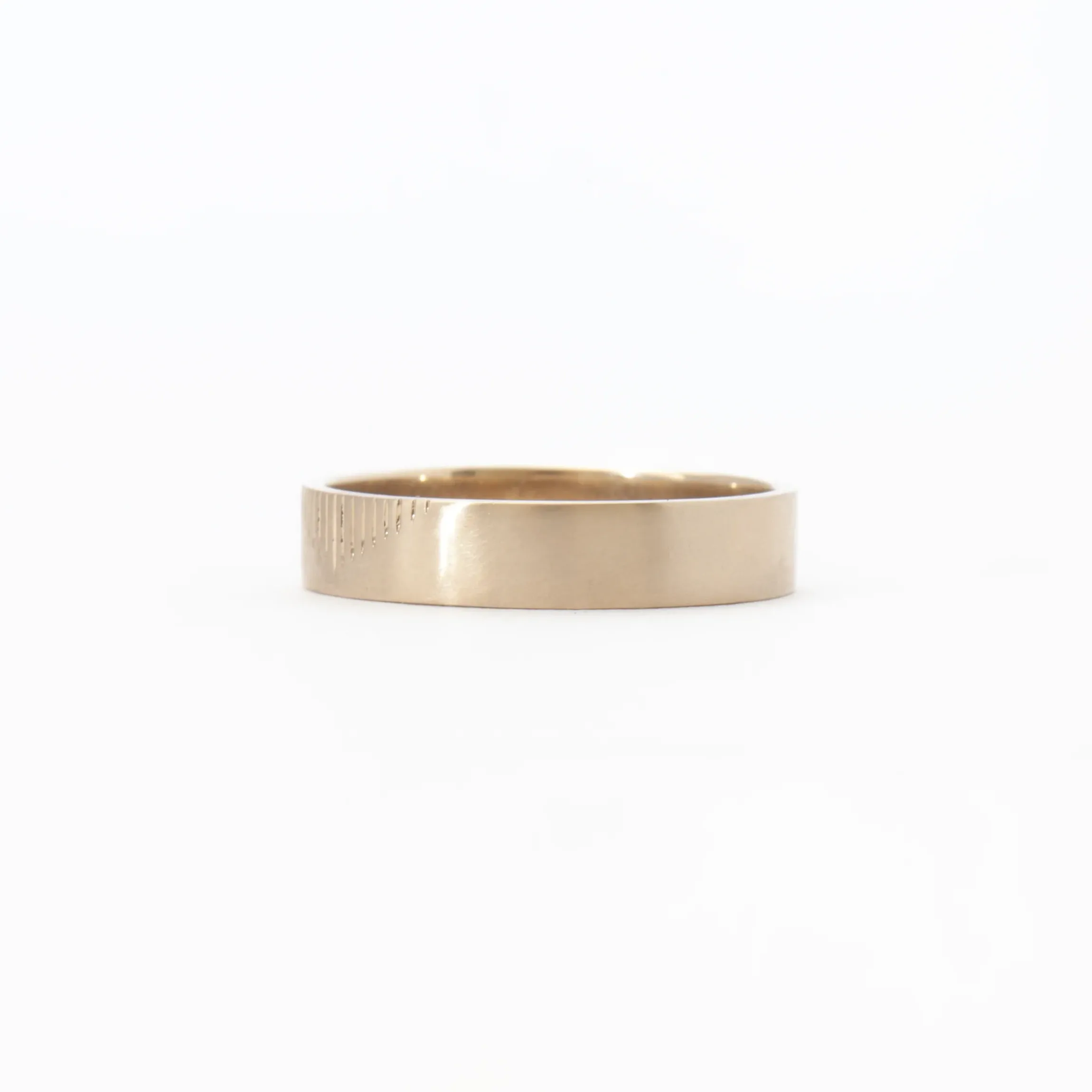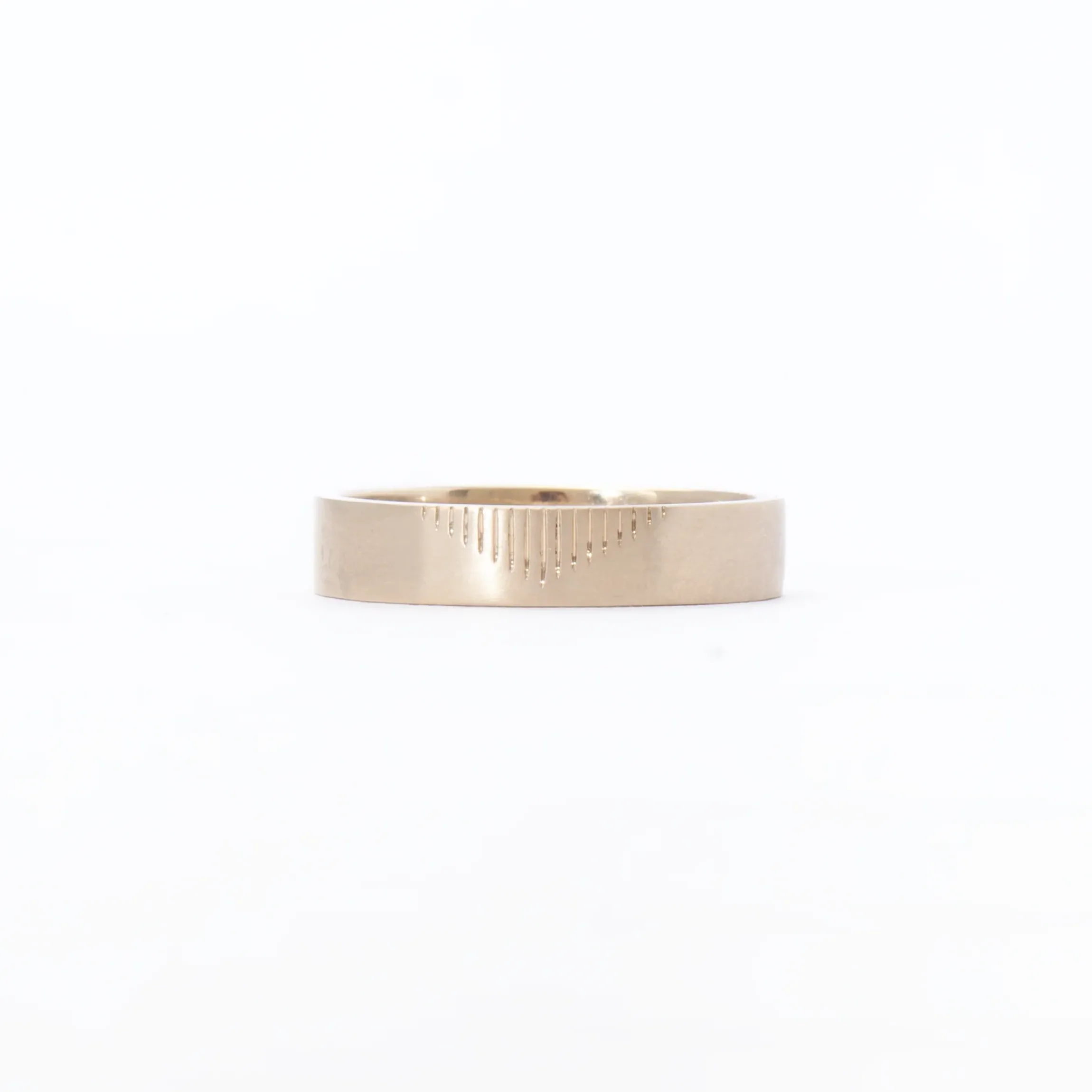 The engraved pyramid wedding band is a modern design with an ode to an ancient time. This band features an interior comfort fit band, and on the outside a geometric engraving in the shape of a classic pyramid.