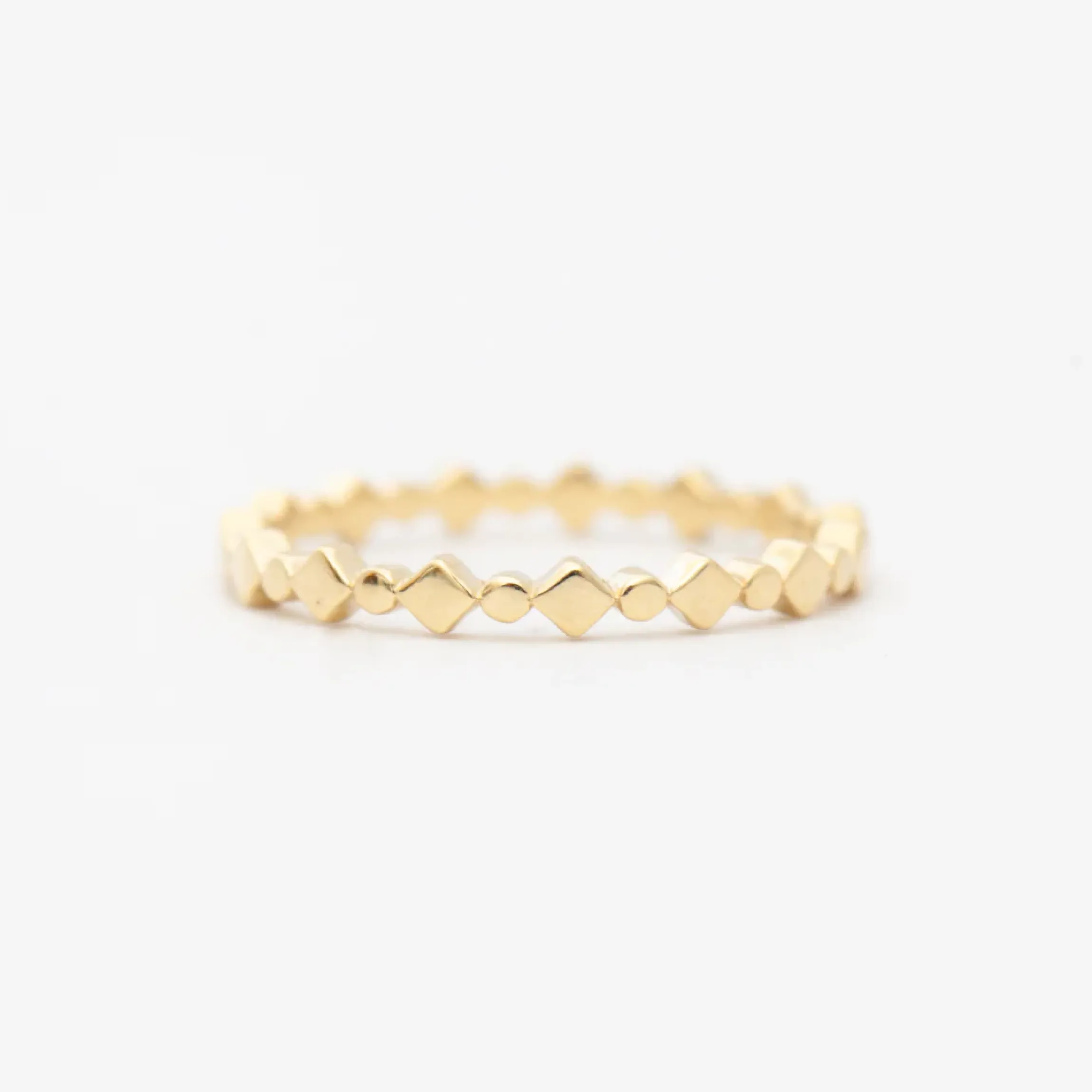 Never underestimate the power of plain gold to add texture, style, and character to your stack. This band by Jennie Kwon combines diamond and round shapes for an endlessly playful pattern that can be worn alone or paired with an engagement ring.