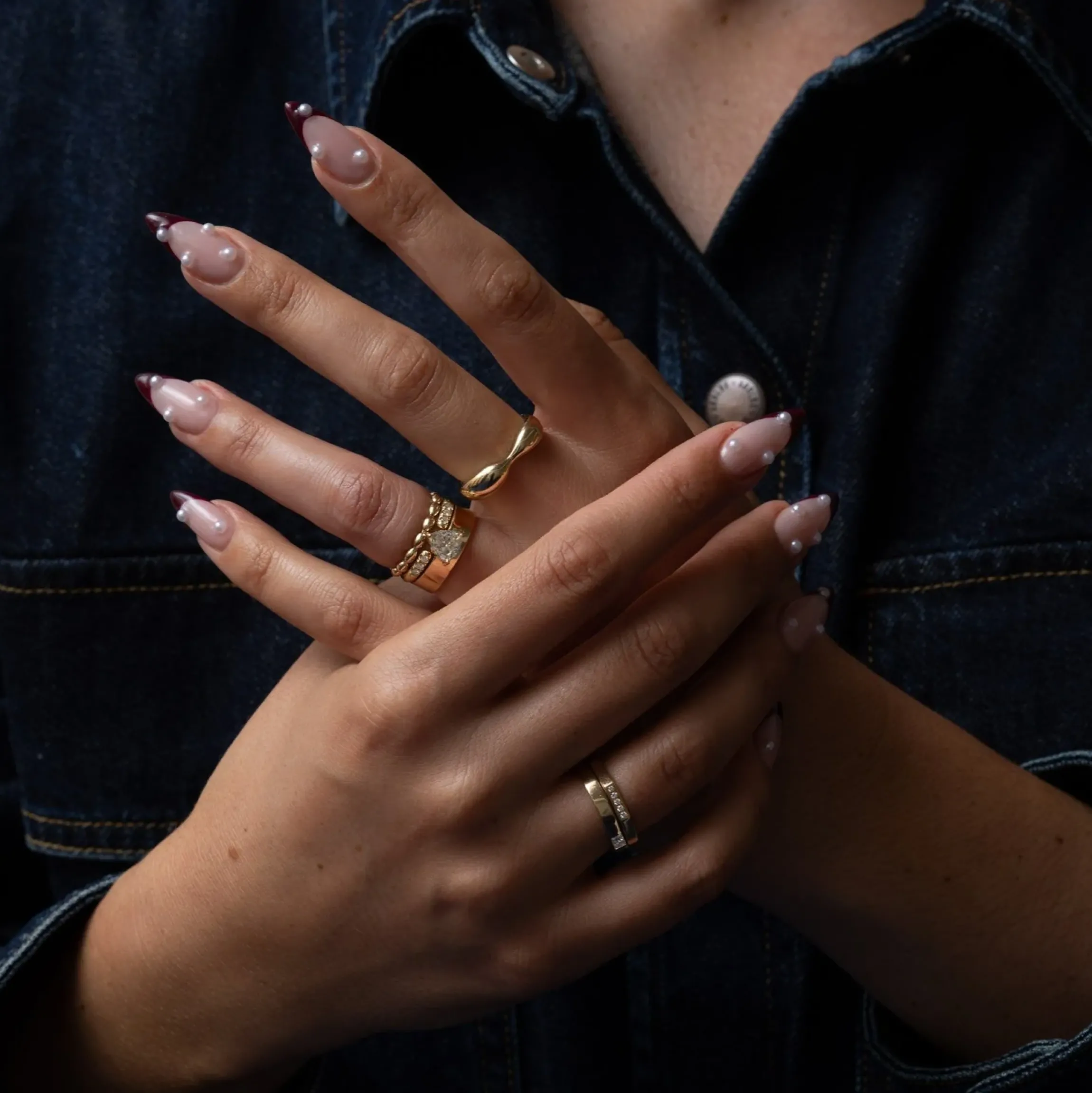 This dynamic band is an M. Hisae signature. A humble dedication to the divine womanly figure. The Figure Ring is support, sensuality, strength, and warmth. Bring your meaning to this piece, whether a shapely body, a woman reclining, or a beautiful bosom.