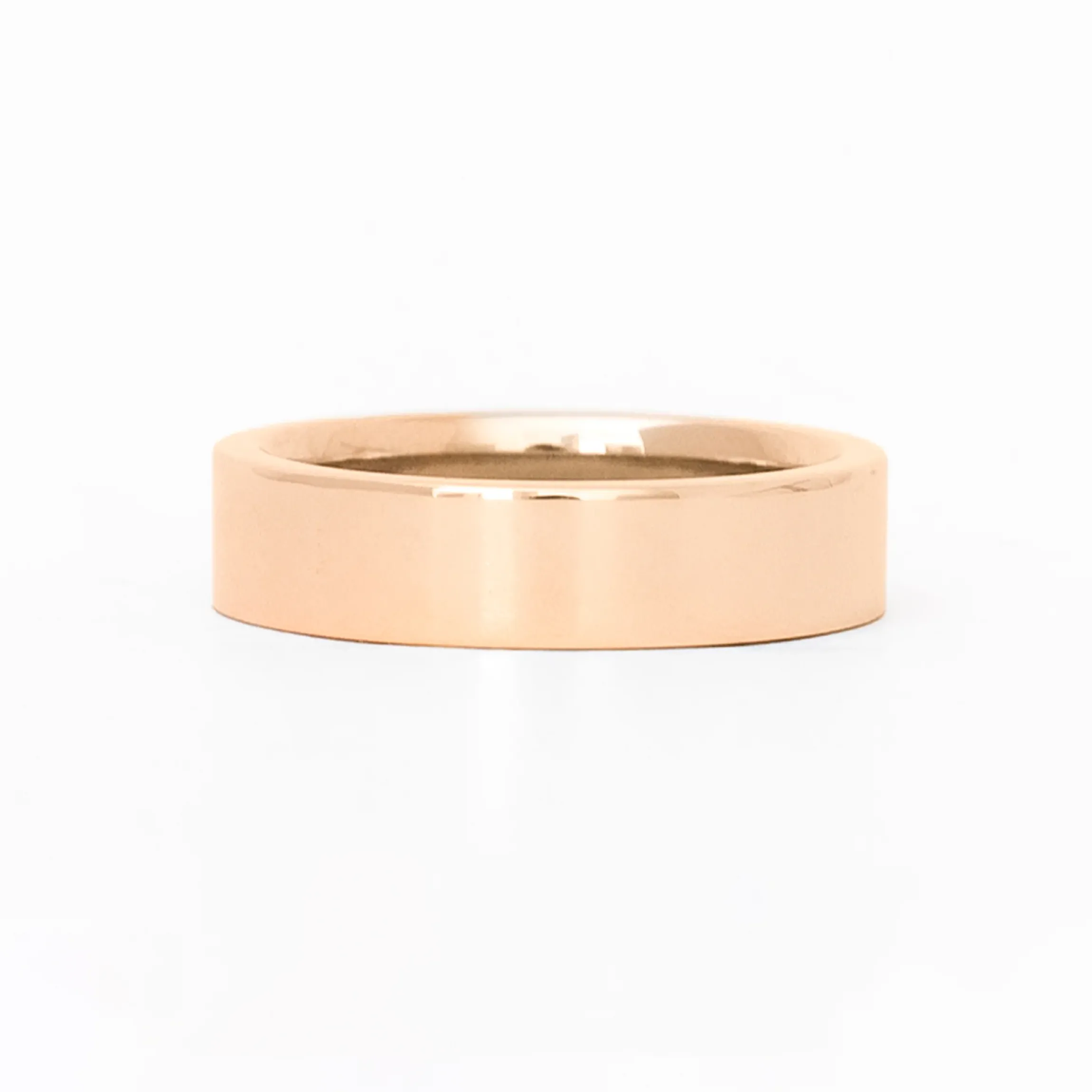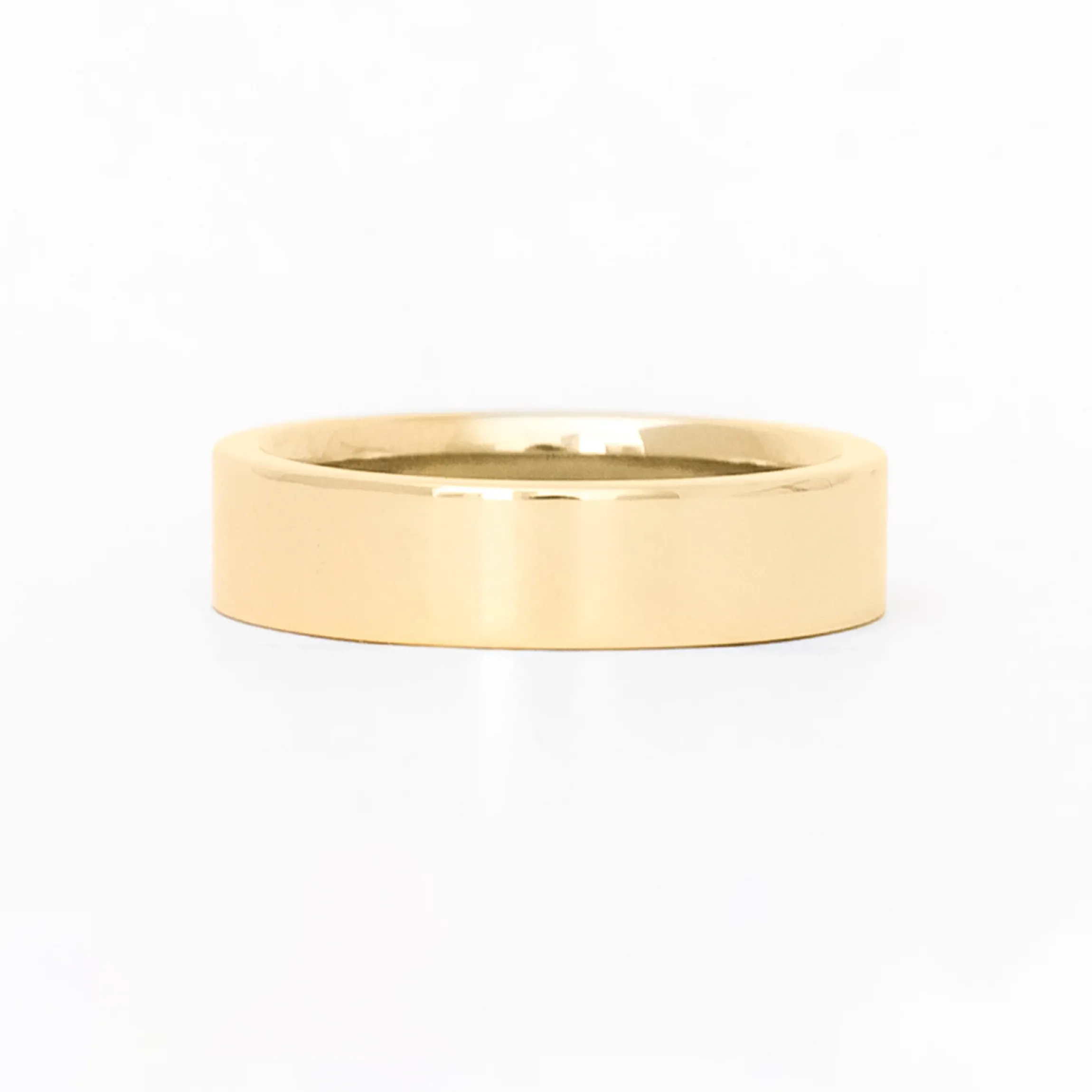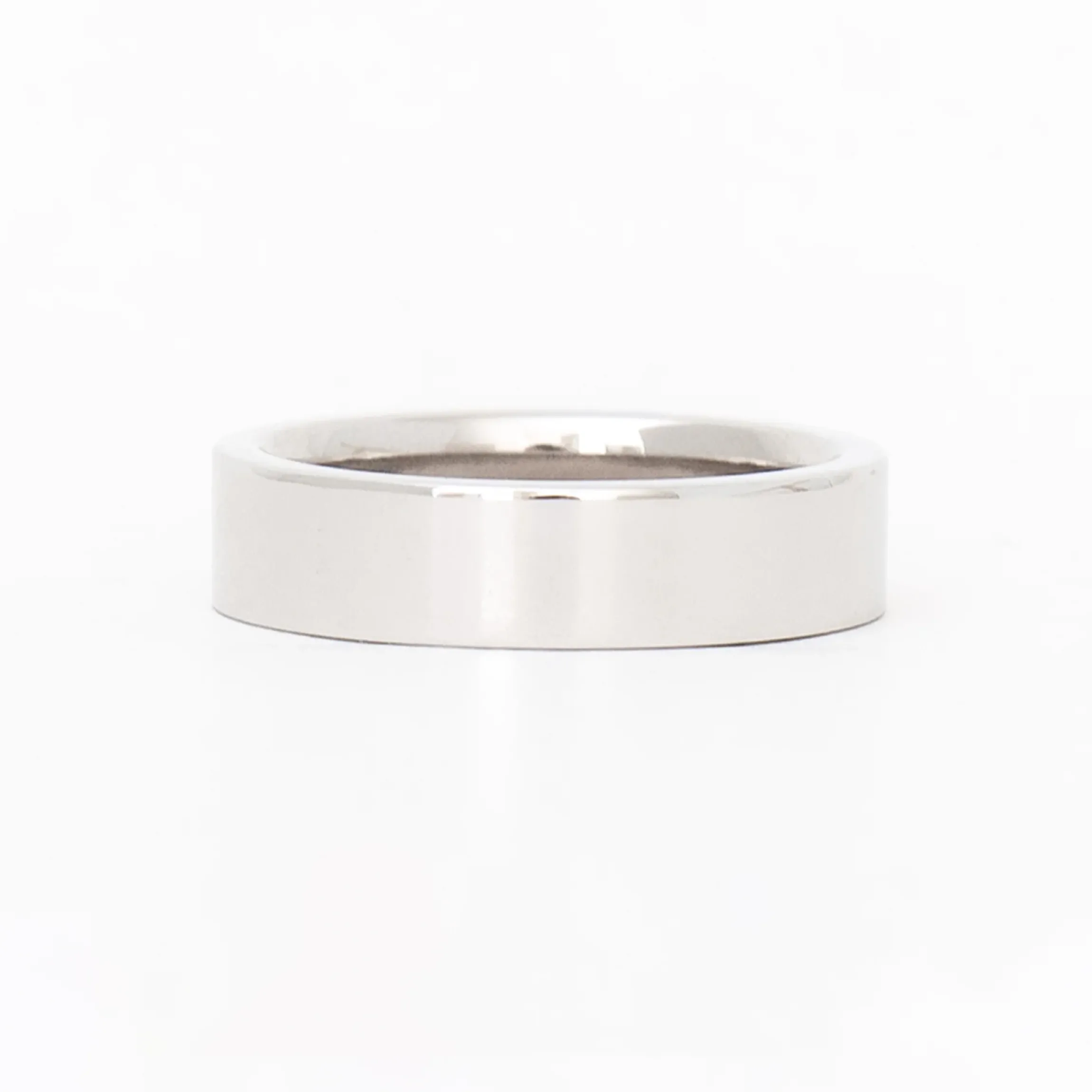 This slick band maintains a minimalist design, yet still exudes a luxurious, weighty appearance. On the flip side of the flat edge, a rounded comfort-fit interior allows for comfortable daily wear. Finished with a polished shine. Made in the U.S.A.