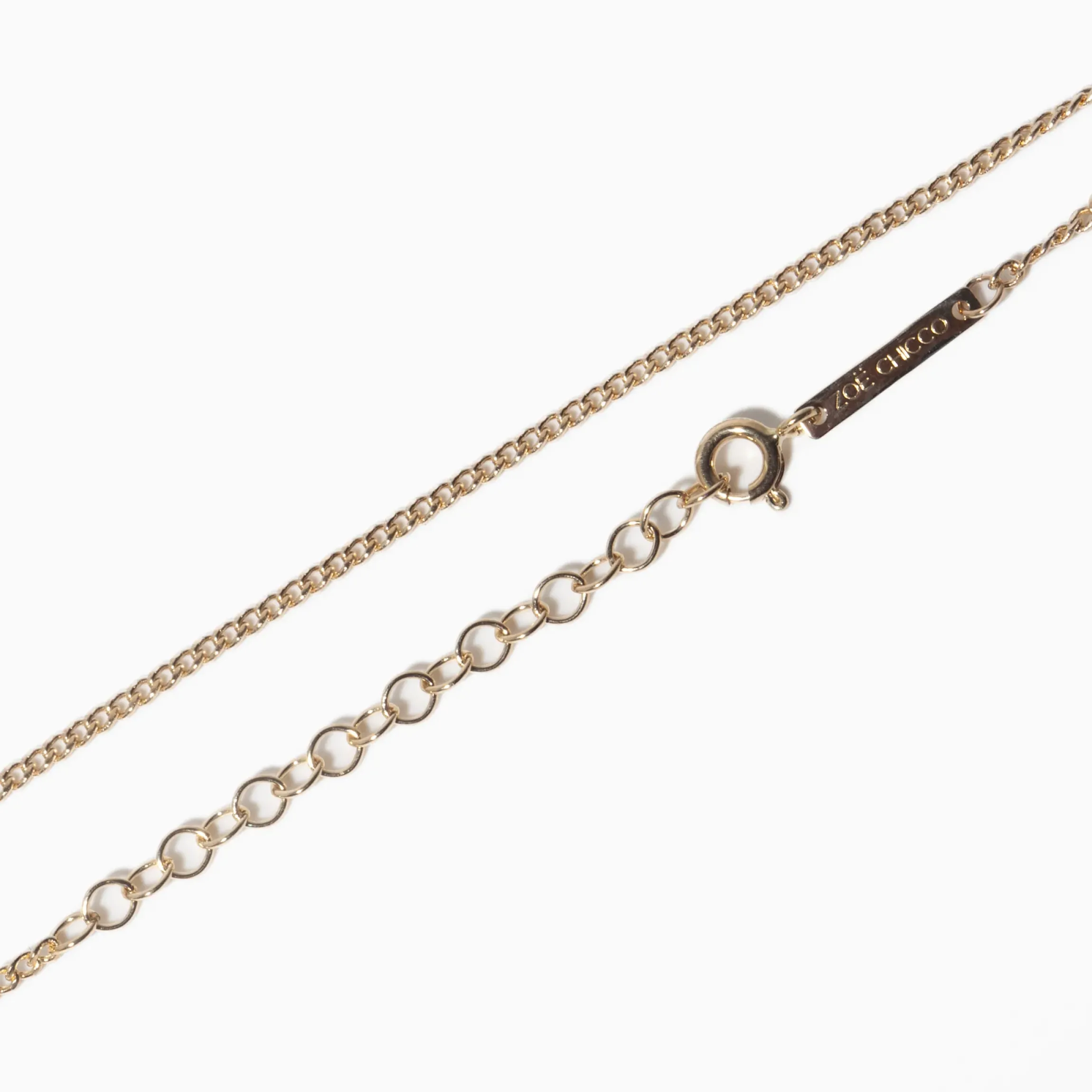 Adjustable chain measures 16″ to 18″.