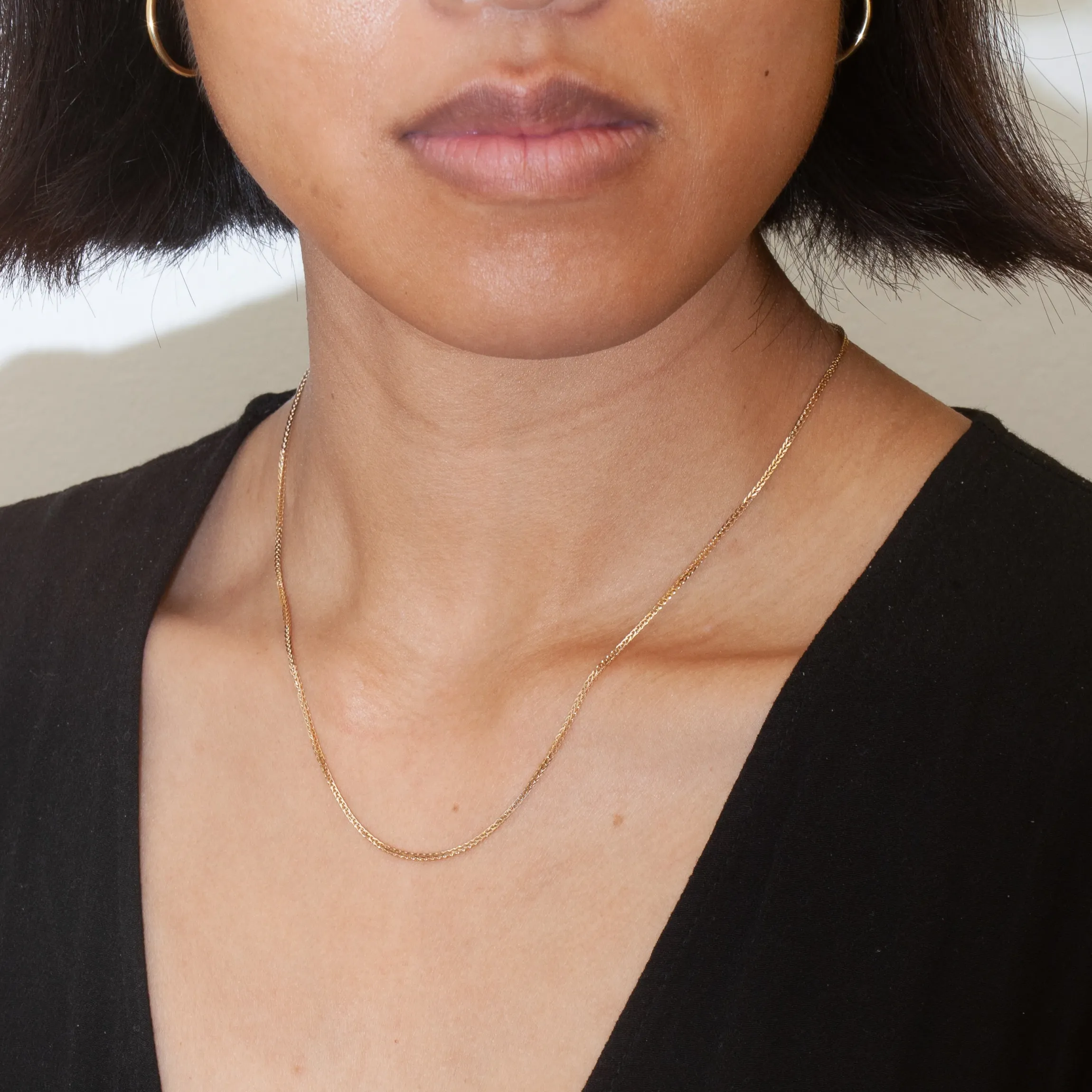 The dense links of this solid gold Franco chain hangs with a semi-rigid drape on the neck. It’s perfect for securing heavier pendants or adding extra texture to daintier layers. Finished with a lobster clasp closure. Made in the U.S.A.