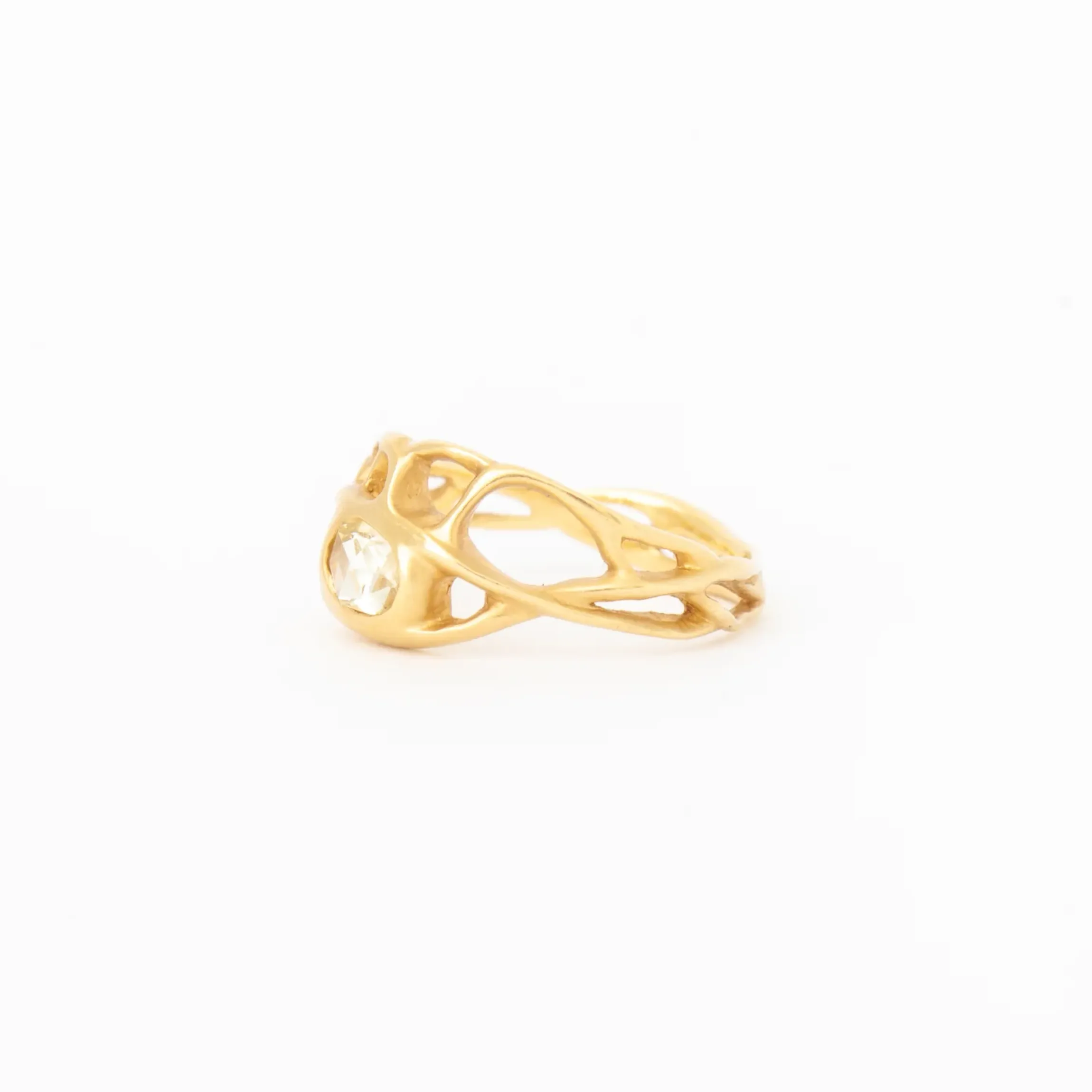 This gorgeous ring designed by Bario Neal features unbelievable movement and playful negative space. The lines guide your eye to the star of the show, a rose cut champagne diamond. Designed to be as unique as the one who wears it, the Gale Ring is a showstopper. Made in the U.S.A.