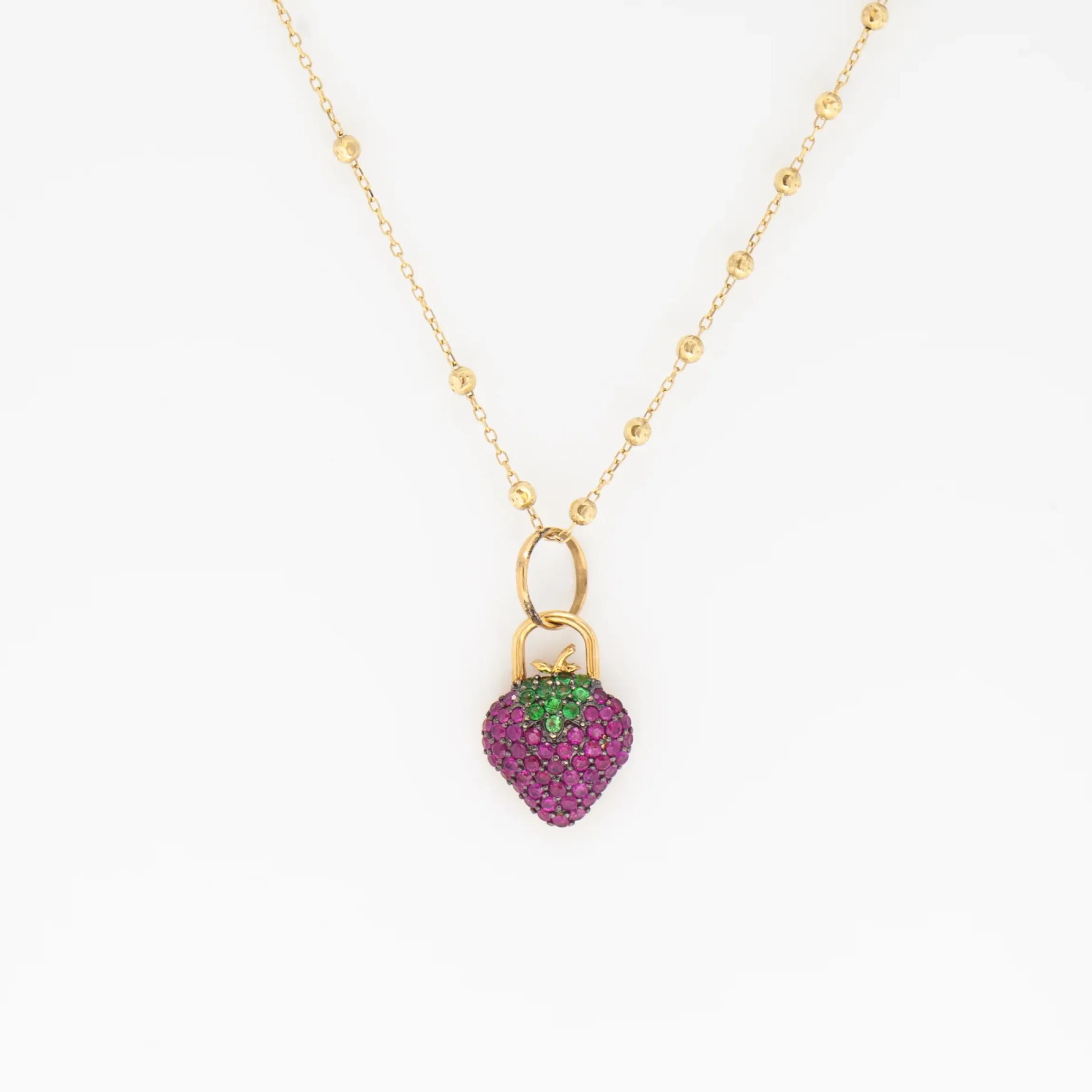 Add some berry fun to your jewelry game with this Gemstone Pavé Strawberry Charm! Perfect for any chain, wear it all season long for a playful touch. Makes a sweet gift for yourself or a friend.