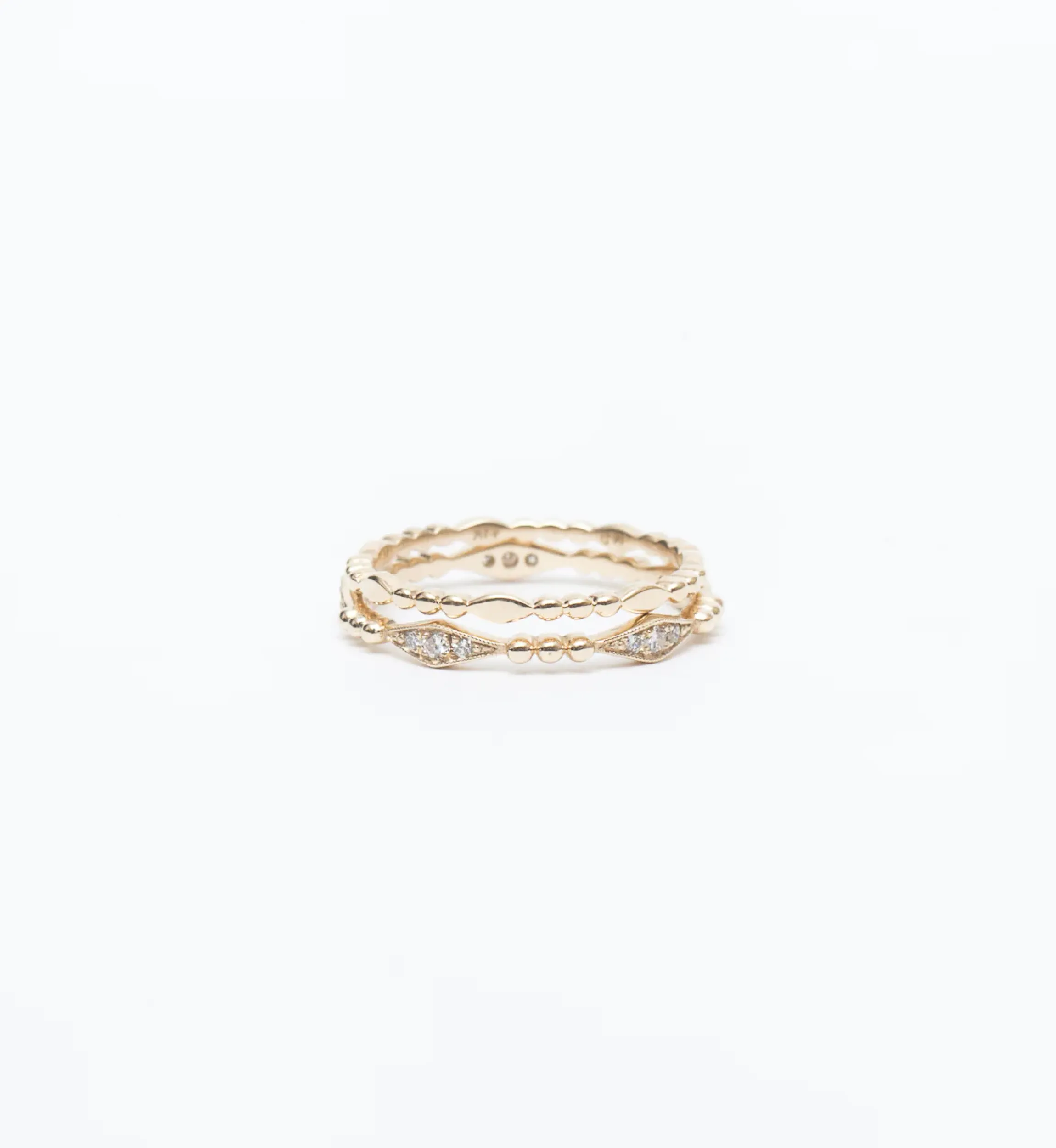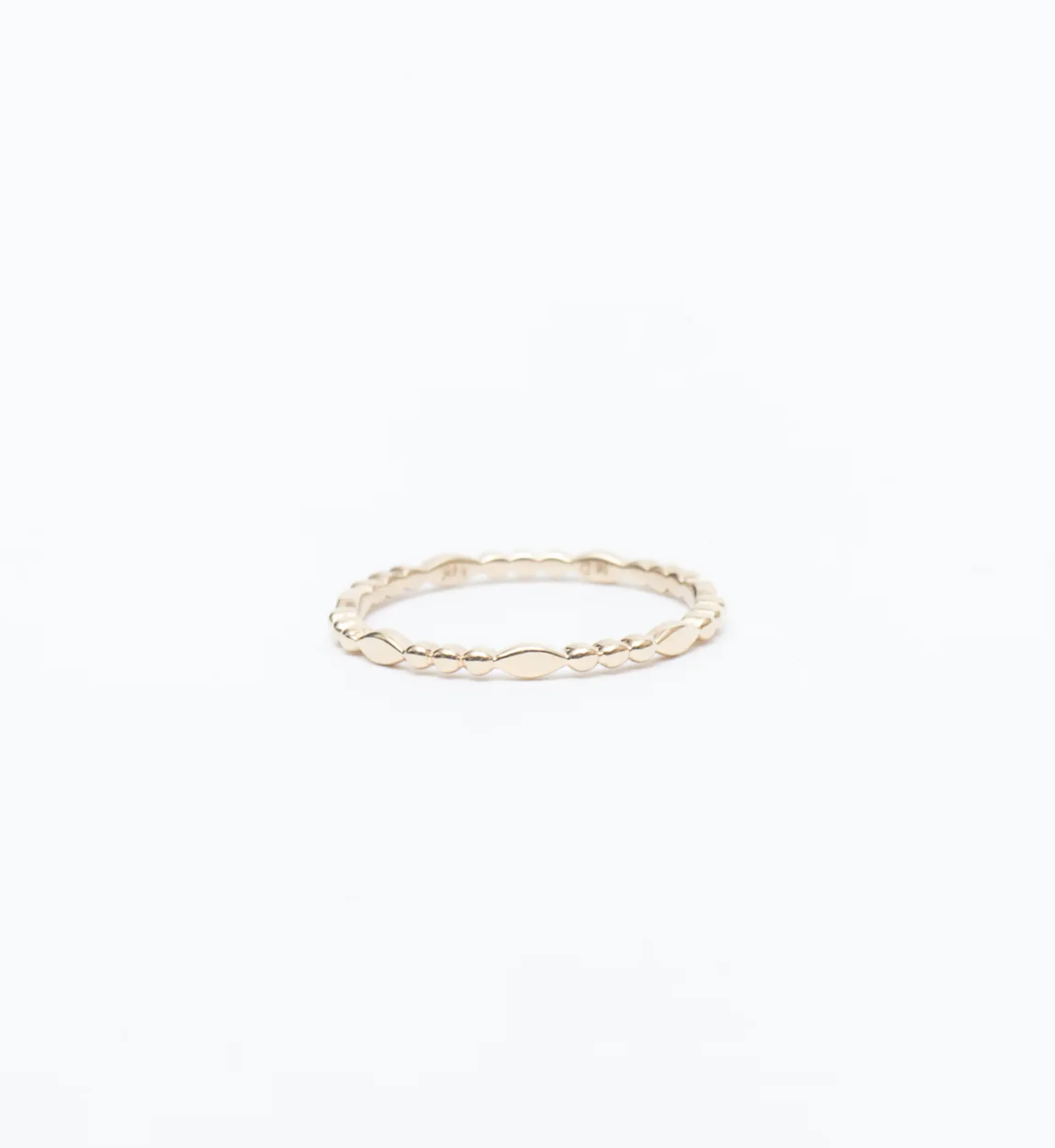 You can never have enough stackers, especially when they feature a graphic mix of shapes in a comfortable, skinny silhouette like this. Alternating marquise and round segments give this solid gold band a remarkably detailed look with plenty of polished surfaces to catch the light. Slip it amongst your most well-worn rings and you’ll wonder how you ever got dressed without it. Made in the U.S.A.