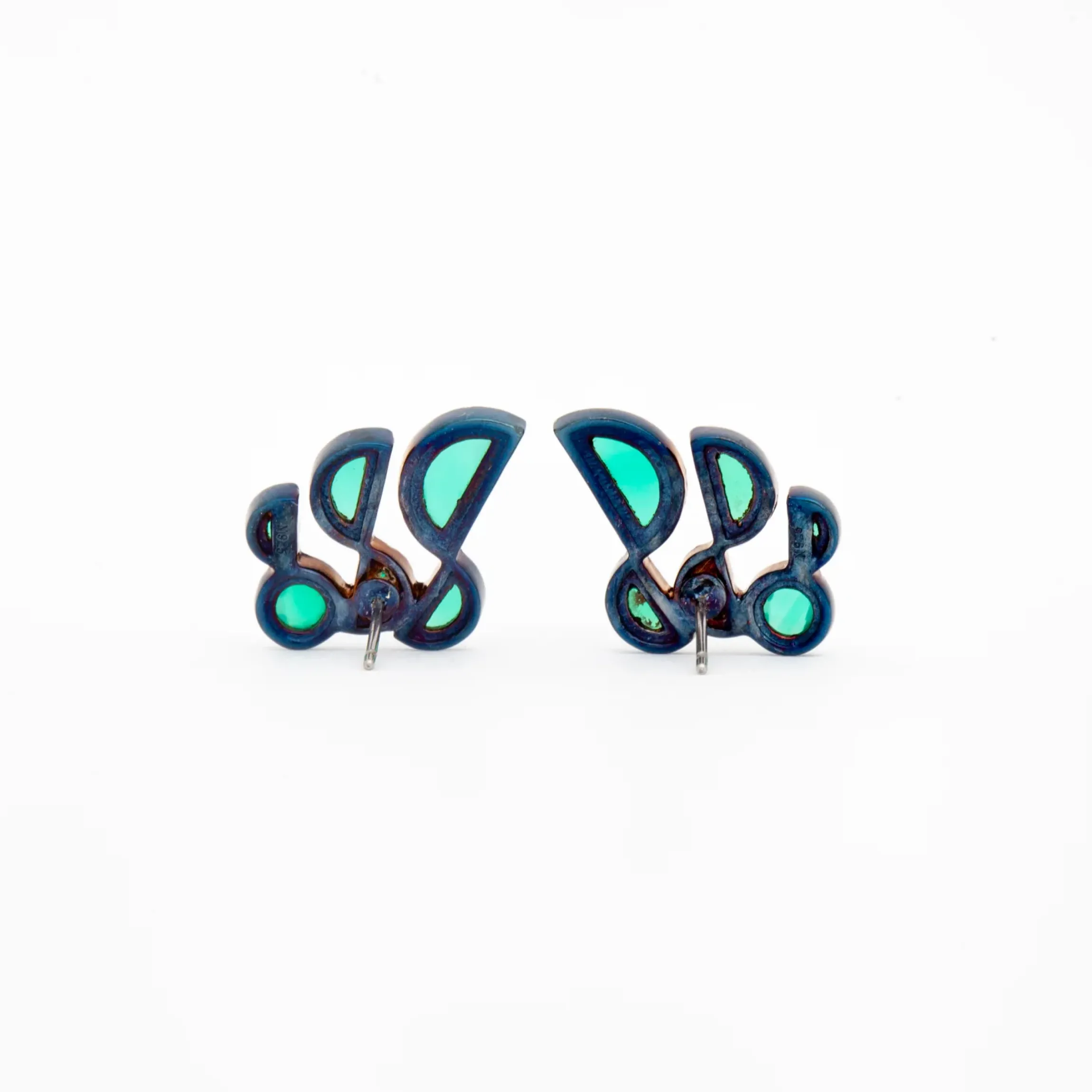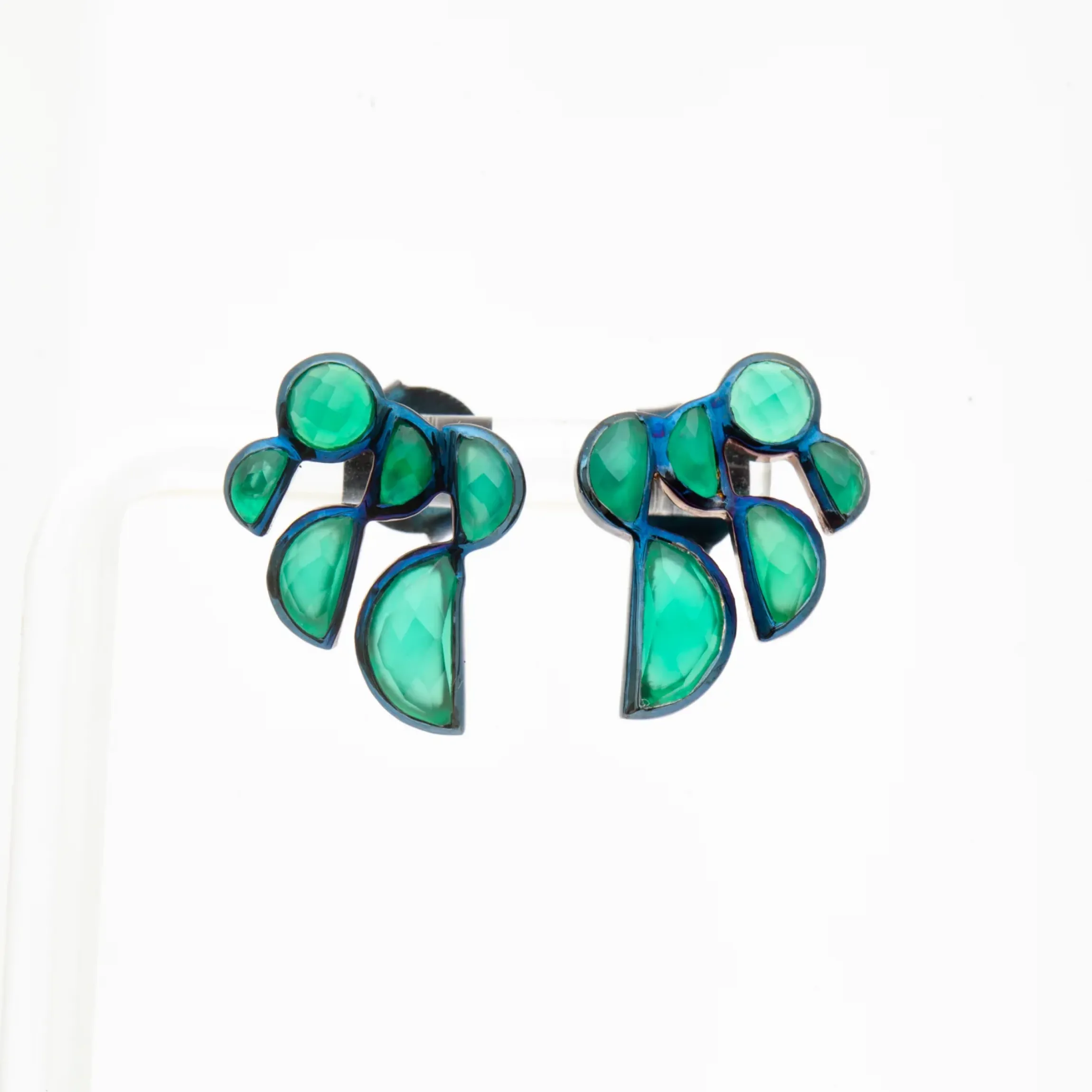 These uniquely crafted alternative earrings are as bold in color as they are in design! Created with artful intention and crafted with high-quality green onyx stones set in sterling silver with blue rhodium bezels, these modern earrings will let you show off your style in a whole new light. Designed in Austin, Texas.