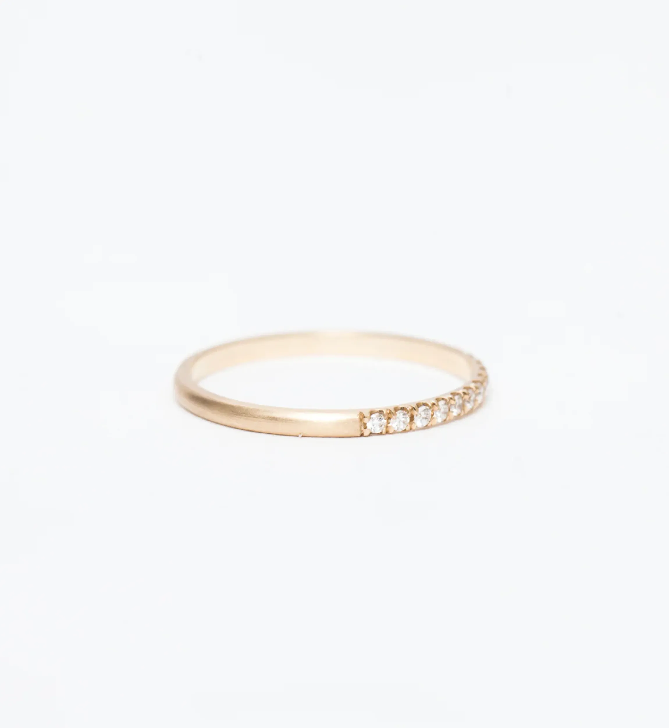 A classic Jennie Kwon style gets revamped with more gold, more diamonds, while retaining all of its minimalist grace. This effortless stacking band features matte yellow gold, setting its sparkling white diamonds into stark relief for an even brighter look. Wear it with plain gold bands for a discrete, yet luxe, vibe. Made in the U.S.A.