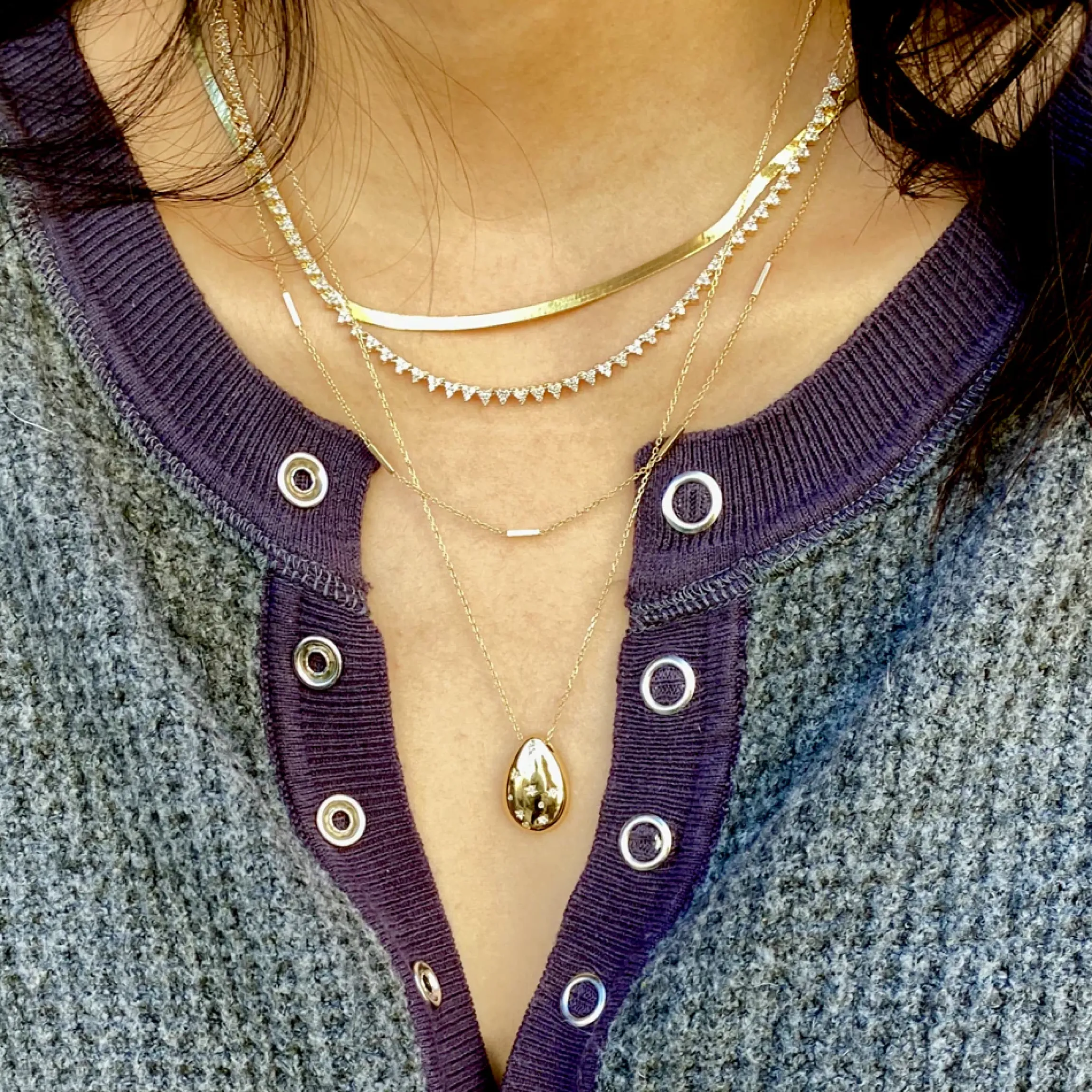 You’ll wonder how you ever got dressed before you found this understated gold necklace. Zoe Chicco strings five solid gold bars across this chain necklace for the perfect combination of hard and soft details. Though this style works perfectly as an everyday piece, you’ll find it layers seamlessly with other necklaces, too, thanks to its minimal look and adjustable length. Finished with hallmarked logo plate and spring ring clasp closure. Made in the U.S.A.