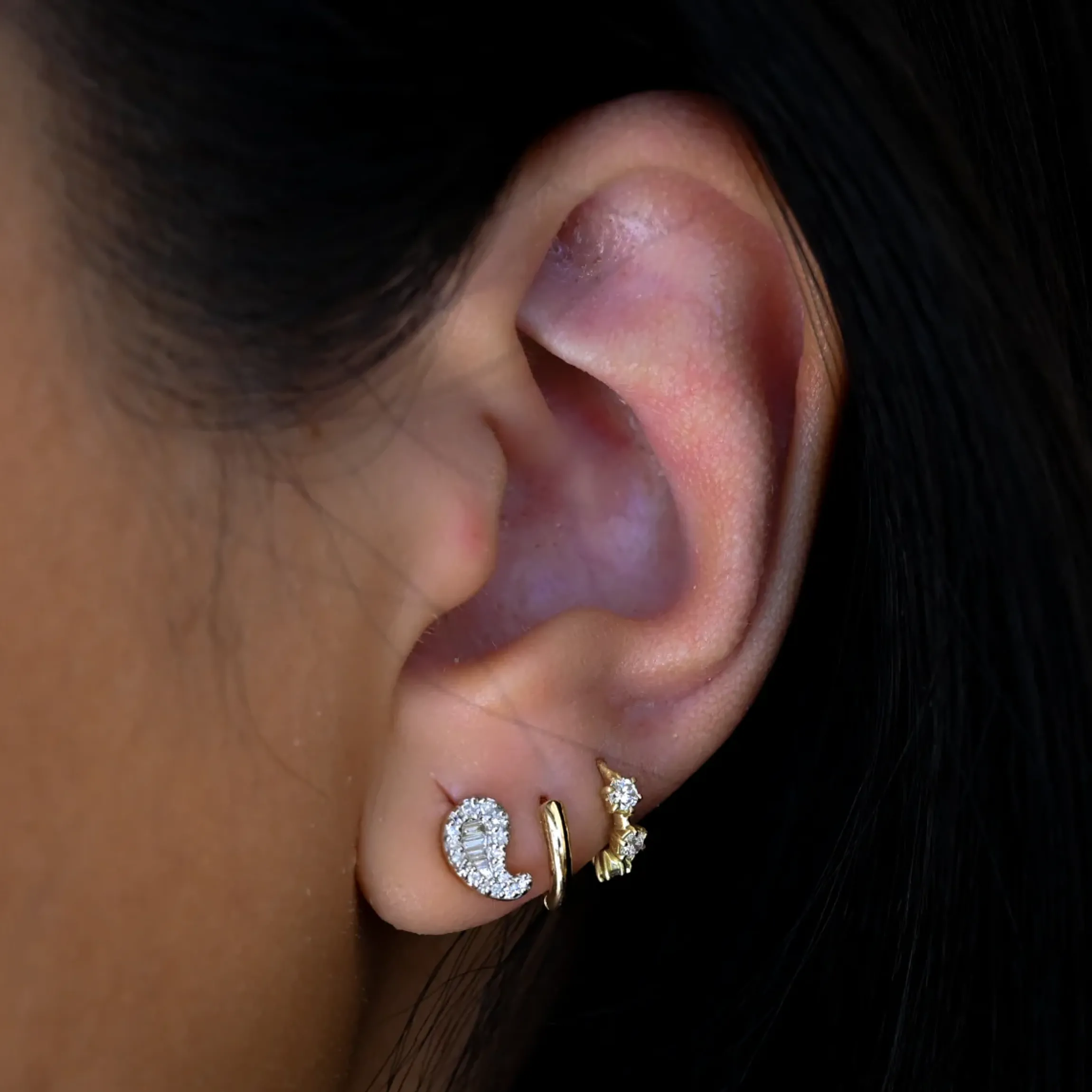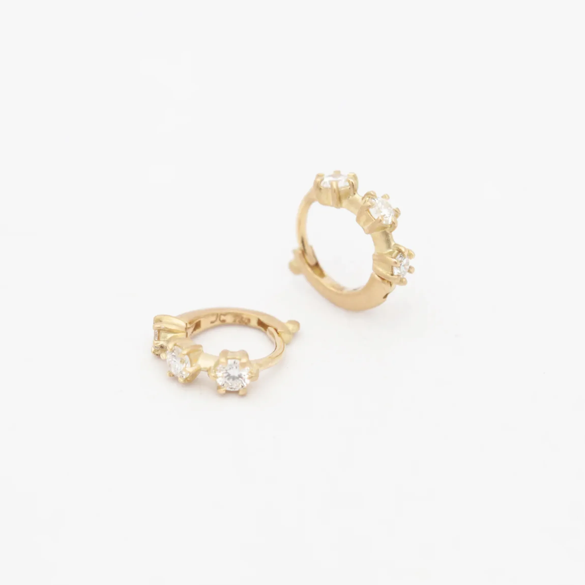 A favorite of Jade Trau herself, these hoops feature petite prongs cradling a trio of diamonds on each little hoop. They’re the perfect addition to any personal collection when worn alone or as part of a curated ear. Wear them in your lobe or—as Jade does—higher up in a cartilage piercing. Made in the U.S.A.