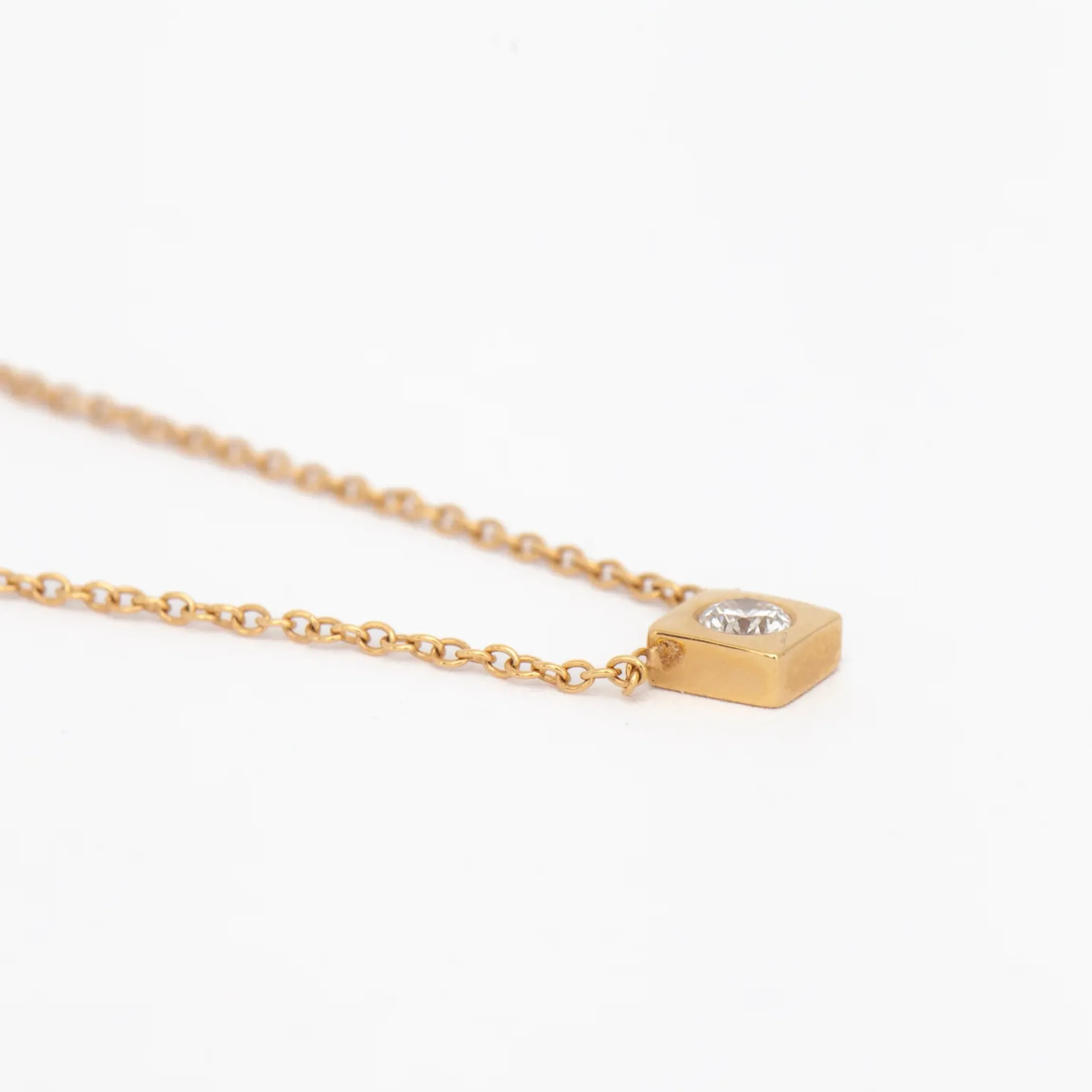 A classic solitaire choker necklace, this white diamond and 14k gold choker adds a layer of minimalist sophistication to your everyday necklace layering. Designed with perfect balance. A circle within a square, fairly represents the complexity that lives within each and every one of us. If you love the Rain Studs, you’ll also love the Rain Necklace. Designed in NYC.