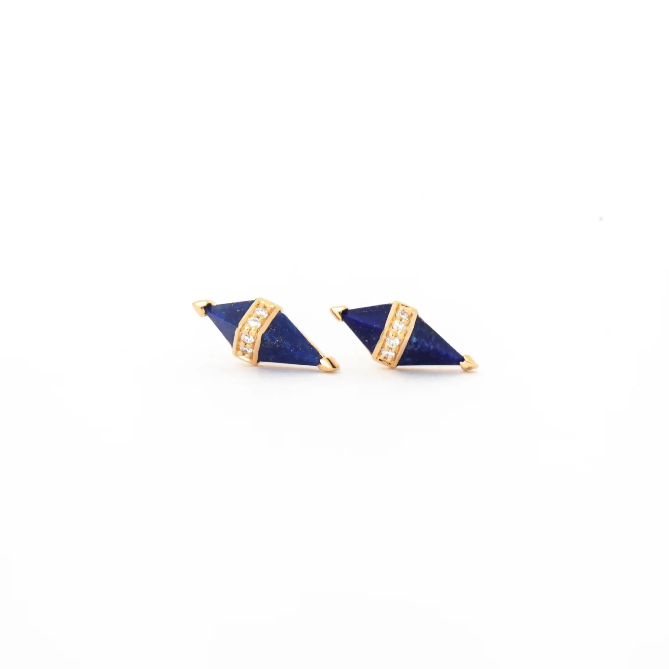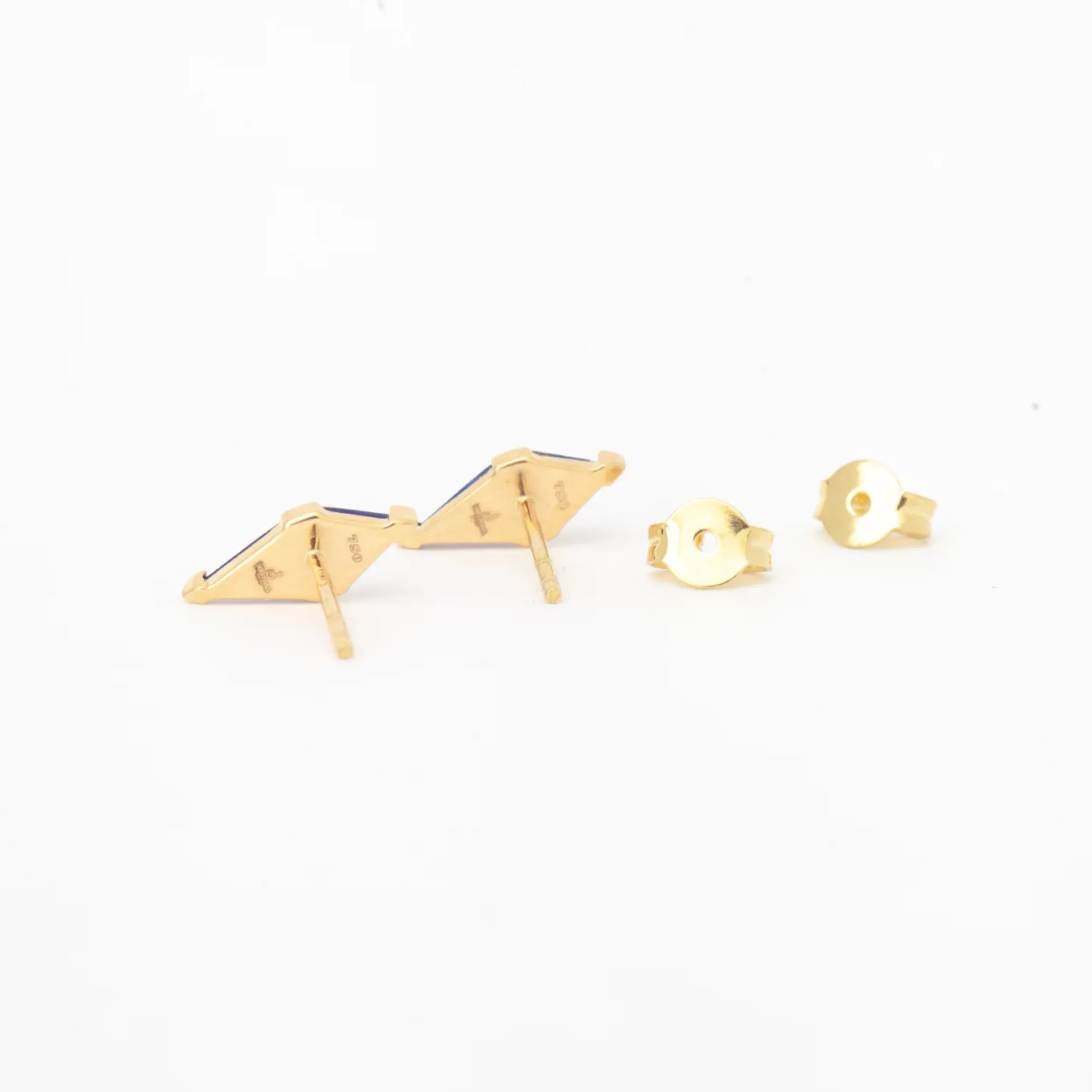 18K yellow gold stud earrings with lapis and white diamonds (G-H color/SI clarity) totaling 0.04 ct.