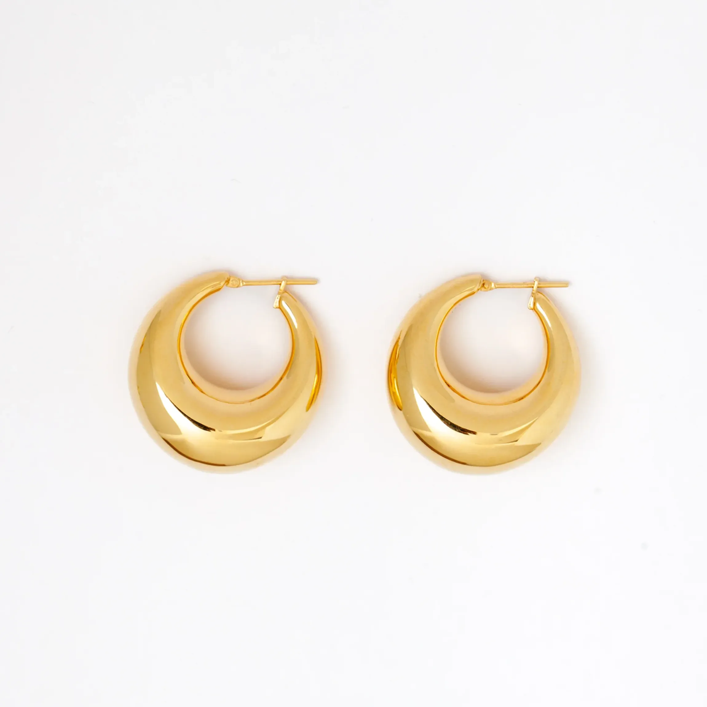These bubbly hoops have quickly become our go-to piece and for good reason. Their striking yet charming shape is sure to earn you plenty of praise. Love chunky earrings but not the added heaviness? Don’t be fooled by the bold appearance–these hoops are surprisingly lightweight, thanks to their hollow design. They pair perfectly with everyday wear and beautifully accentuate slim huggies and gemstone studs for an effortless and chic look.