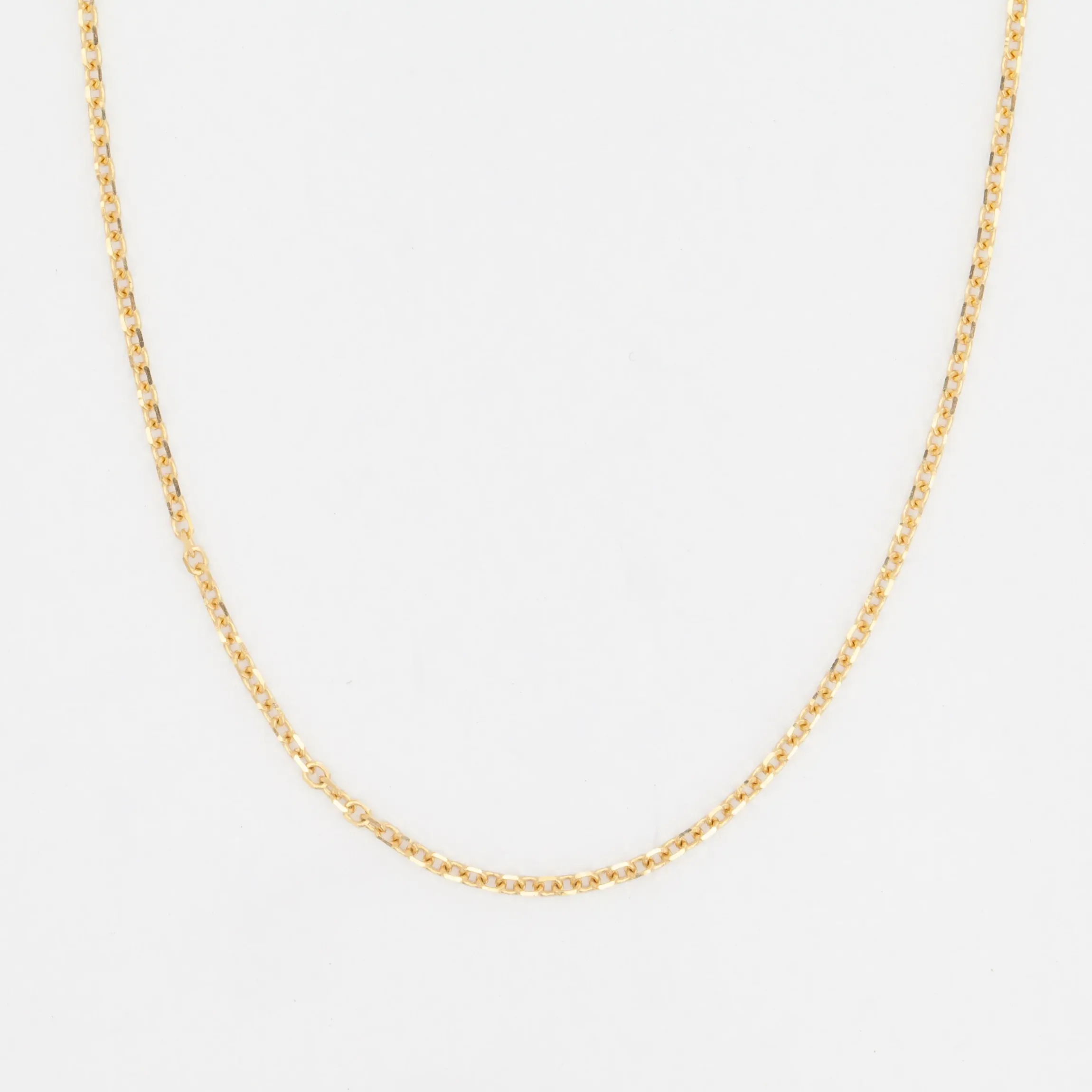 The ever-so-slightly thicker width and heavier drape of this cable chain offers a subtle upgrade from our finer styles. We think the more substantial links make a perfect canvas for your heavier charms like engraved and monogrammed pendants and larger, pavé-set talismans. Finished with a lobster clasp. Made in the U.S.A.