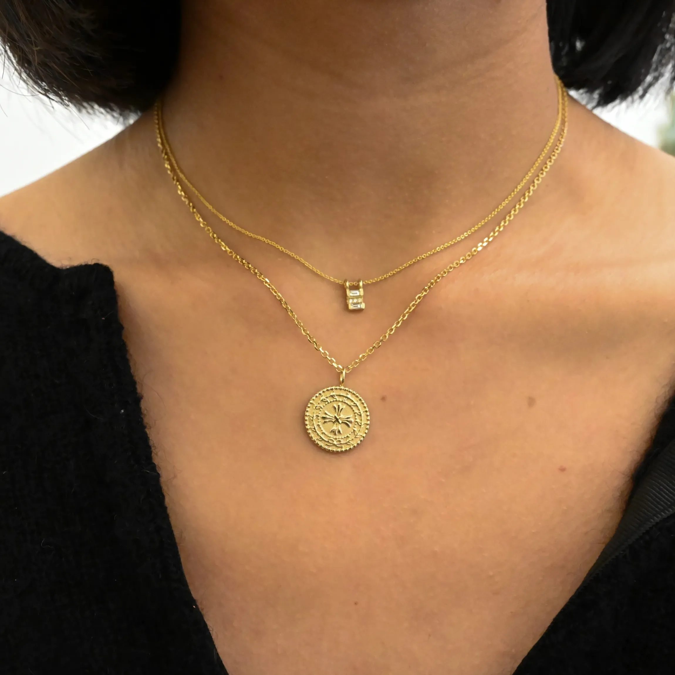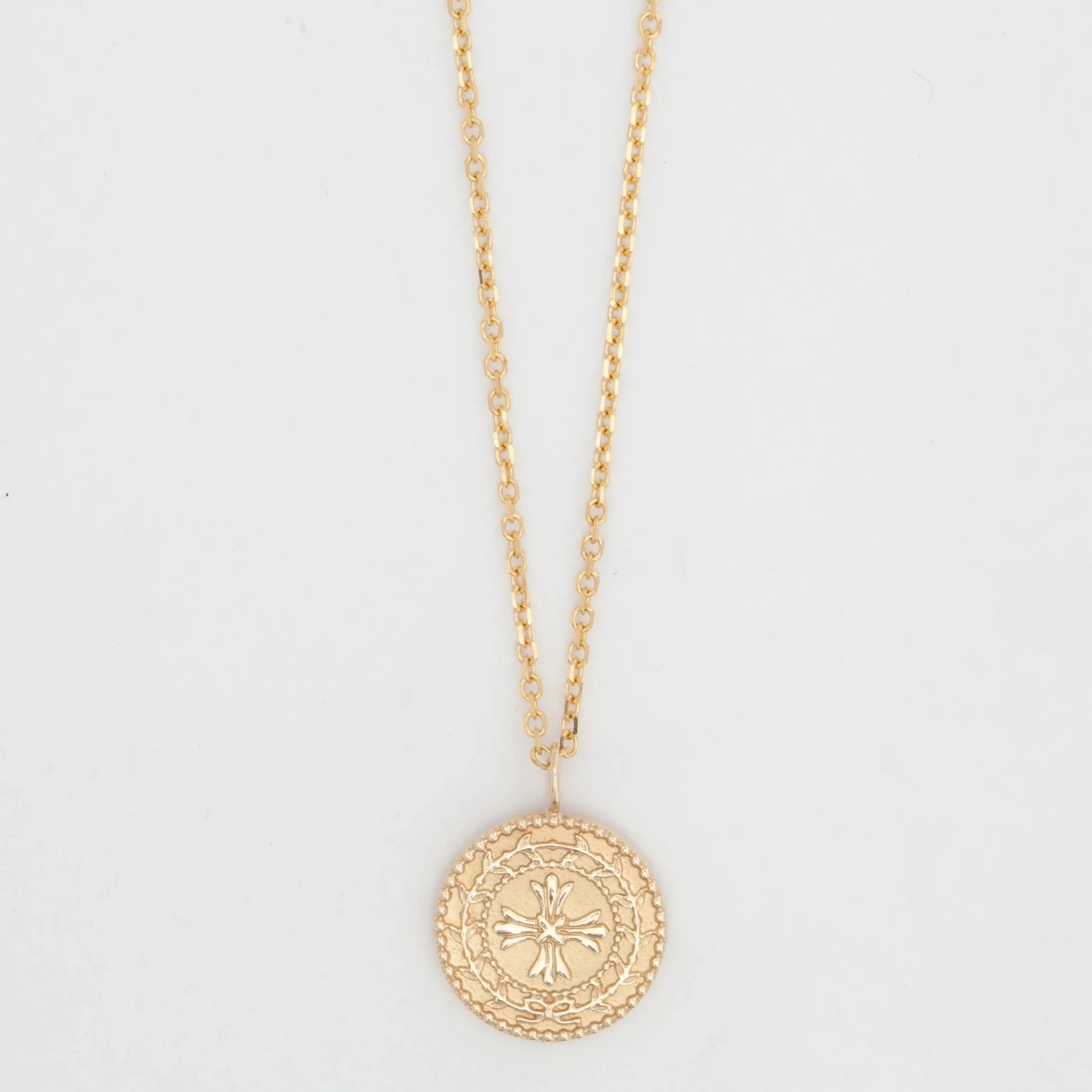 Shown with the Large Protection Amulet and alongside our thinner Diamond-Cut Cable Chain.