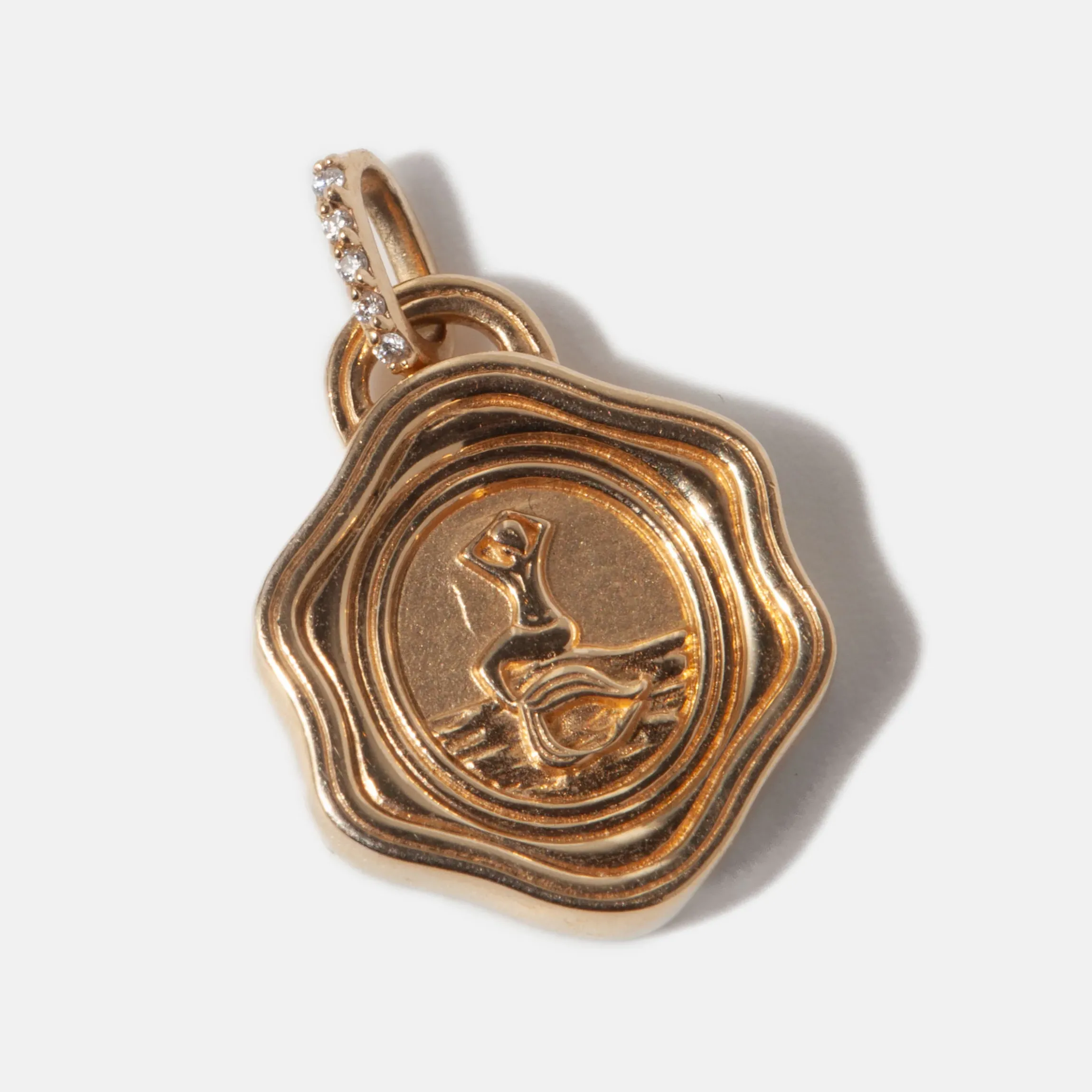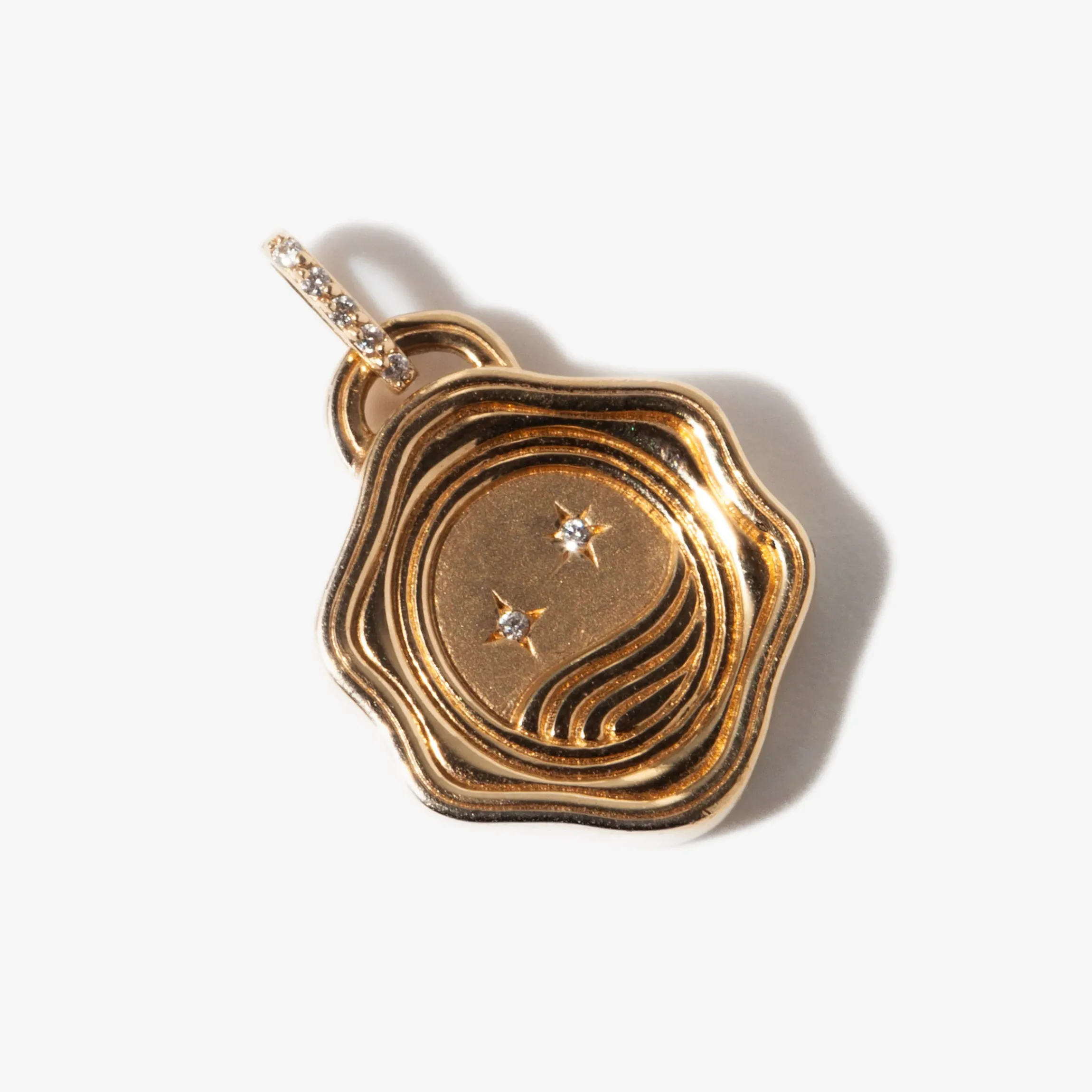 18k yellow gold with white round diamonds (G-H color/SI clarity) totaling 0.03 cttw.