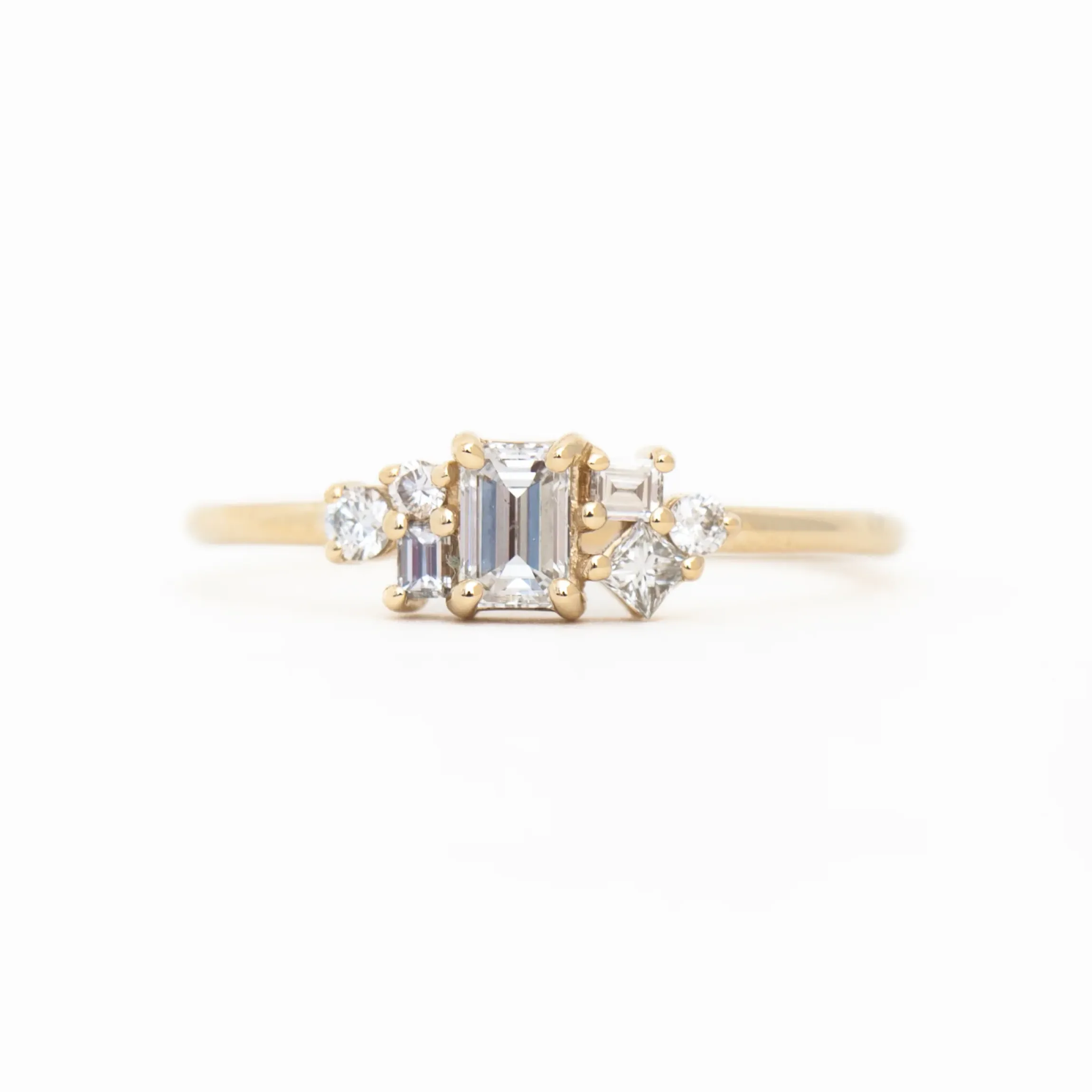 The Mosaic Rings by Brookyn-based designer, WWAKE, are an assemblage of diamonds — different shapes and sizes — creating unexpected combinations. A whole greater than the sum of its parts. Featuring a gorgeous mixture of white diamonds, this ring is about to be your new favorite. Composition and shape play together to make this ring a piece of perfection. Made in the U.S.A.