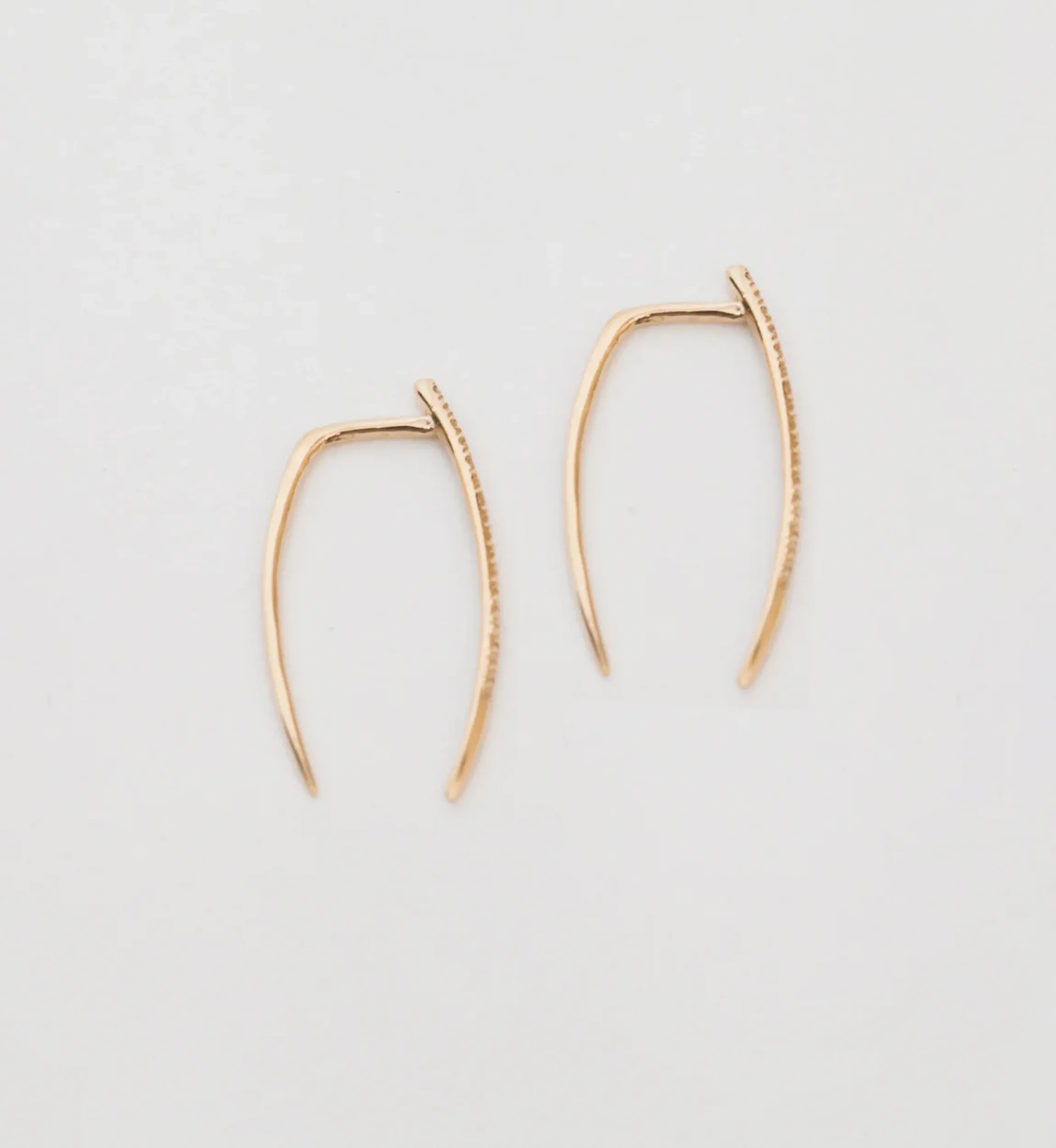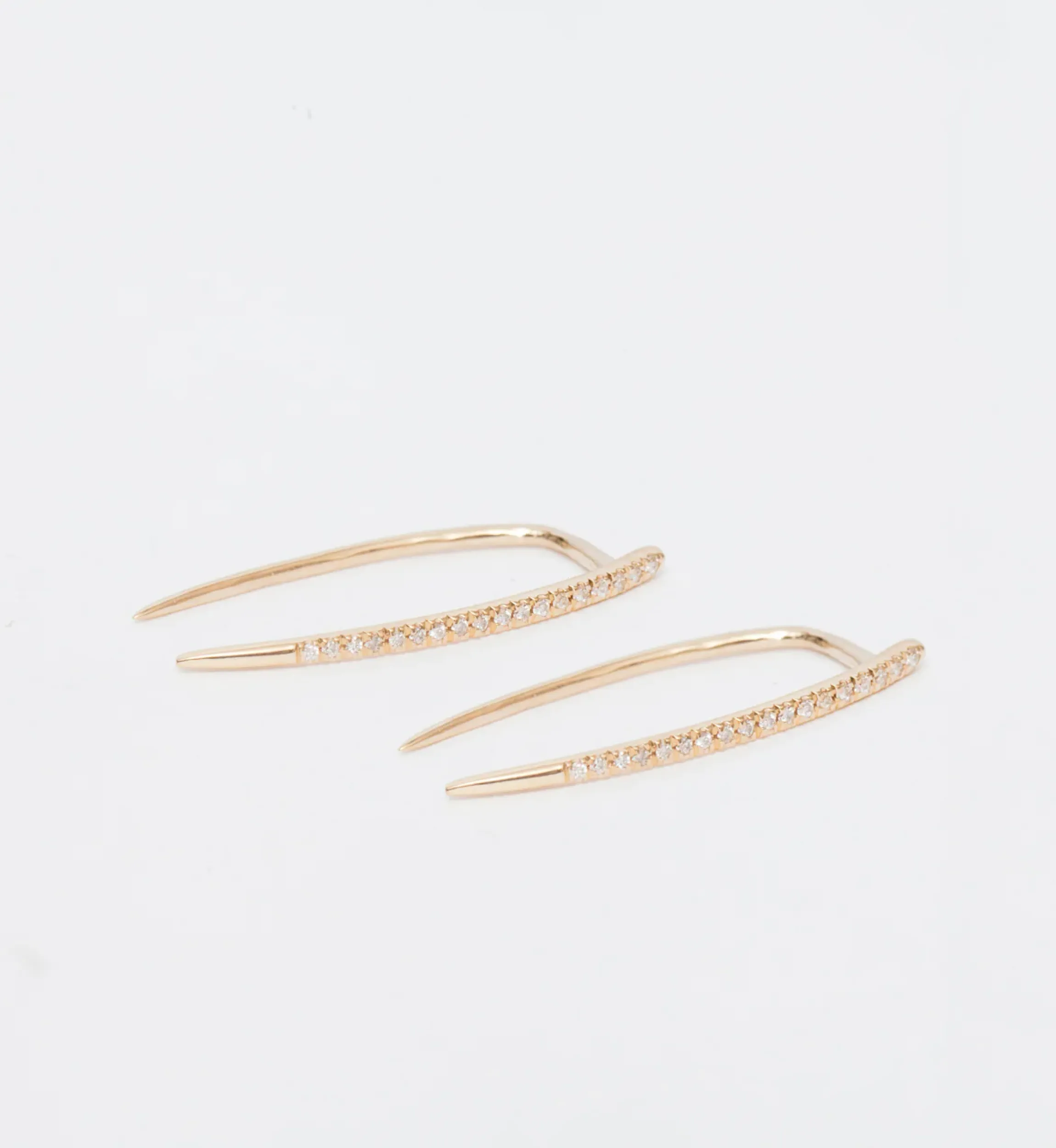 The curves and taper of Gabriela Artigas’s signature tusk silhouettes have been elongated and dusted in diamonds for a luxe look that’s powerful, feminine, and impossible to ignore. These solid gold earrings blur the line between geometric and organic with a curve inspired by nature and perfect for the jeweler’s art. Wear them as an alternative to diamond studs that offer all the sparkle, with so much more personality. Made in the U.S.A. Sold as a pair.