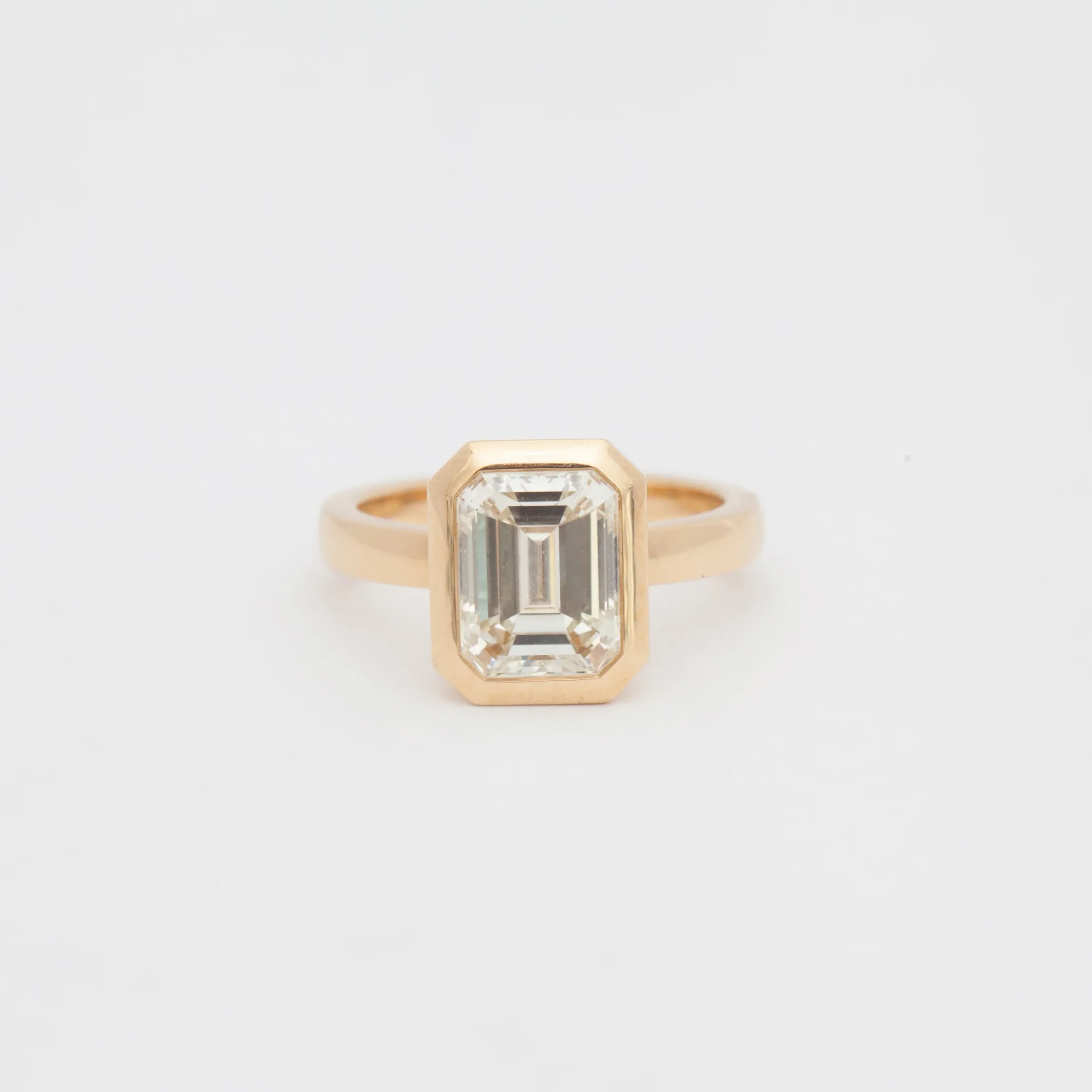 18 karat white gold set with a 3.00 carat emerald-cut white diamond (L color, VS1 clarity).