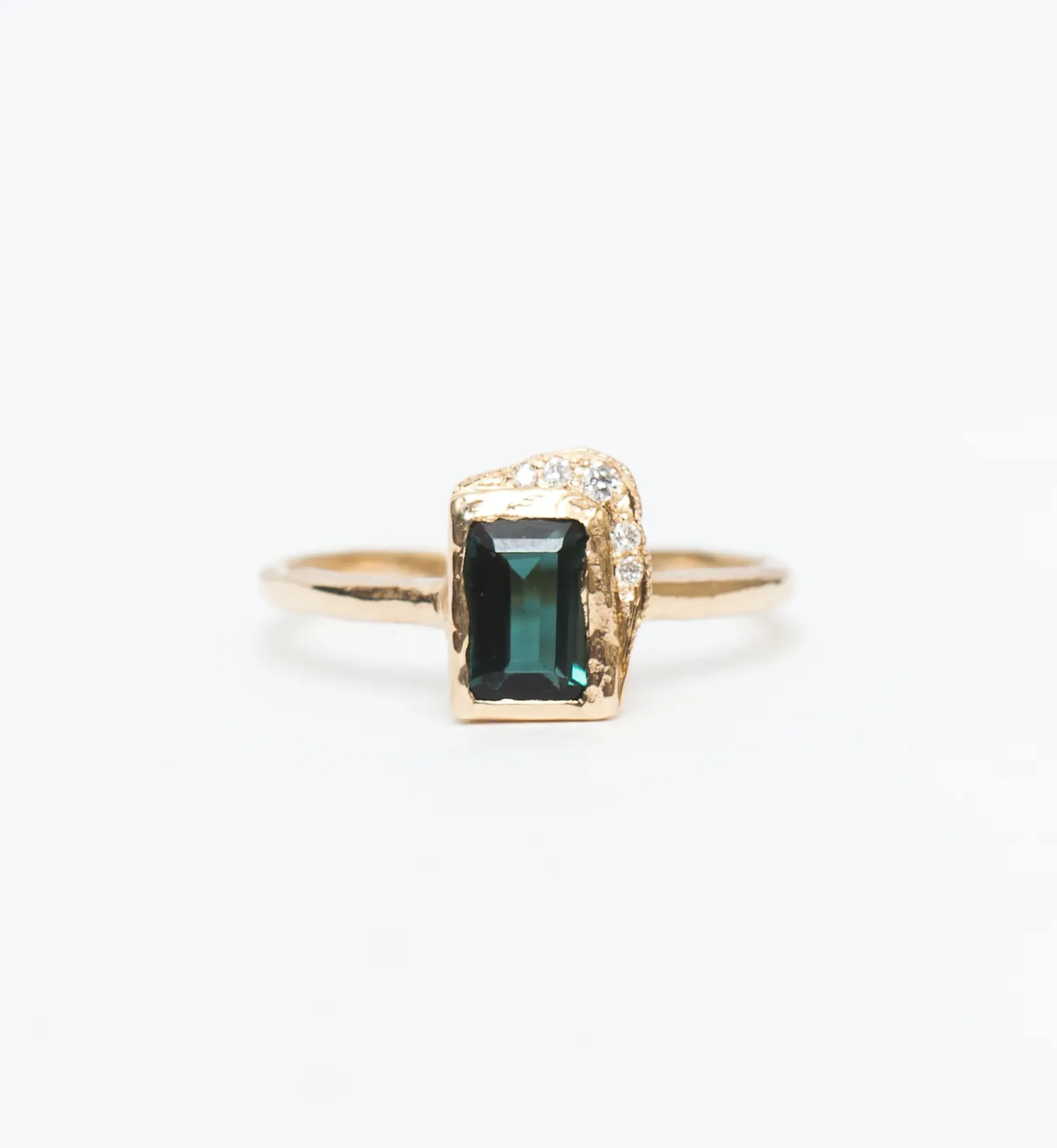 Like a mirror or the still surface of a lake, the serene beauty of this green tourmaline ring invites you to reflect. A delicately carved frame with milgrain beading lets diamond pavé “trickle” down the center’s long edge, adding a subtle note of sparkle to the finger. The slightly raised setting makes stacking a breeze so you can create a suite of rings that truly reflect who you are. Made in the U.S.A.