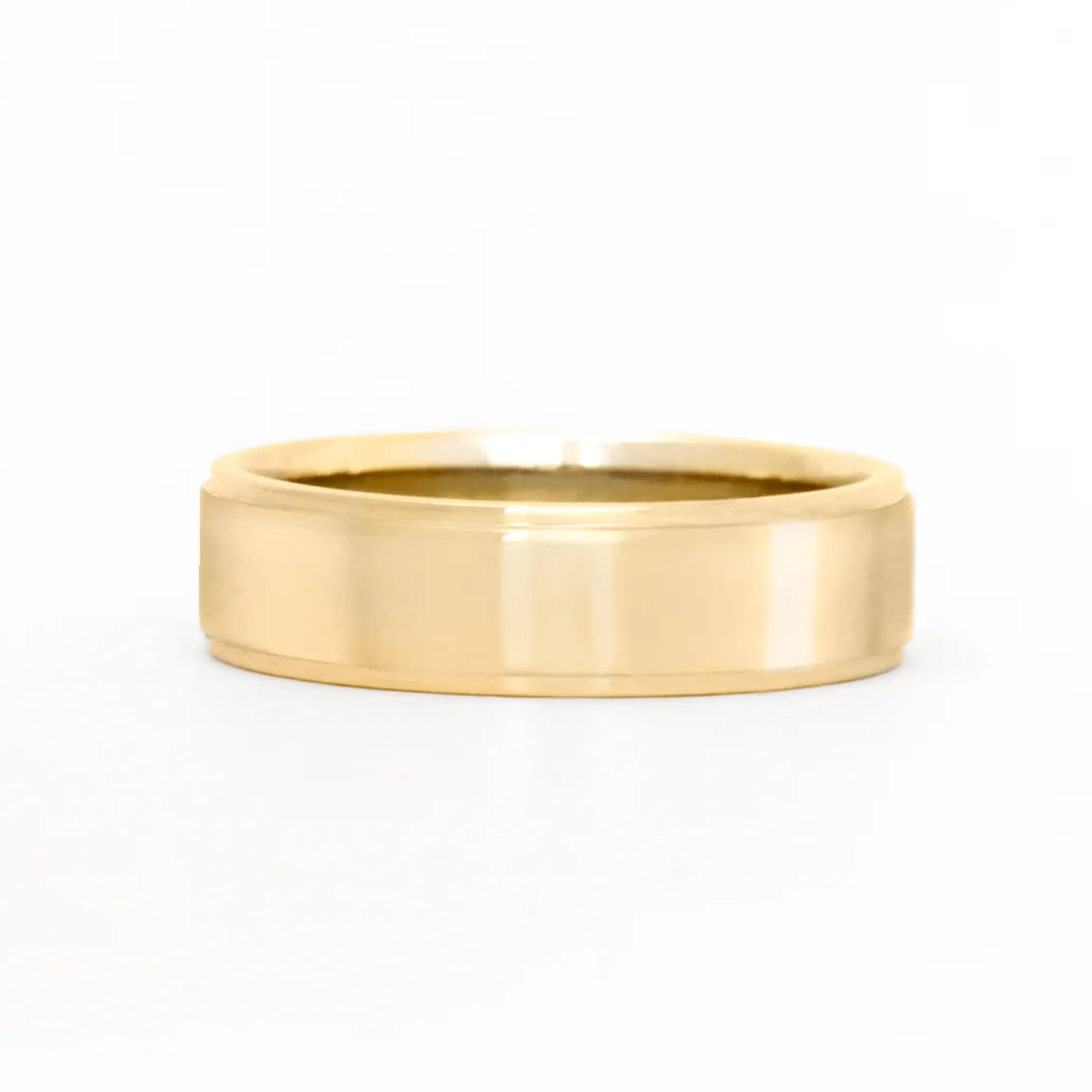 This sleek band includes a unique stepped-edge design that brings a touch of intrigue to your ring. The comfort-fit feature boasts smooth, rounded edges for a comfy everyday wear and the polished finish provides a sleek shine. Made in the U.S.A.