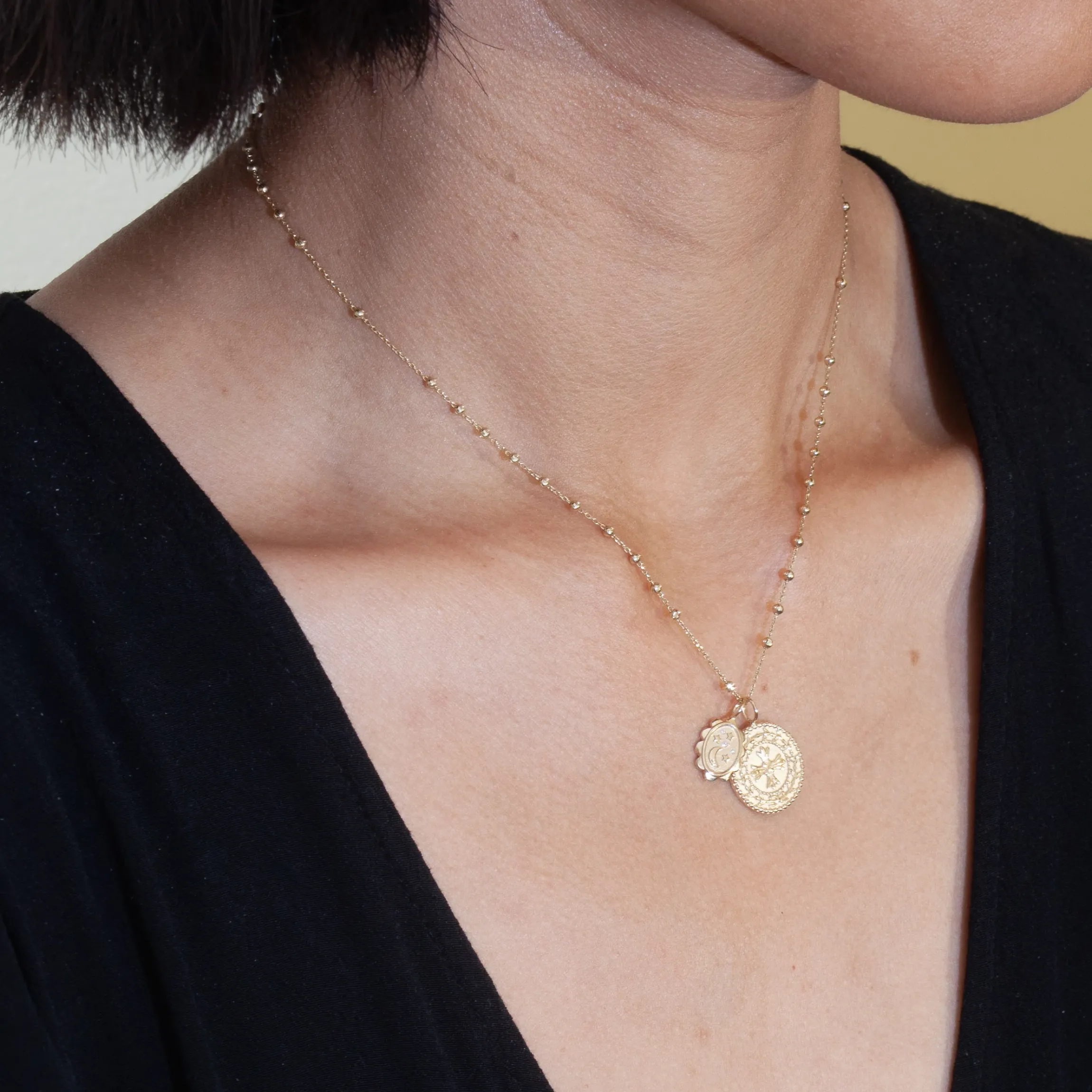 We never see the twin designers of Vale without strand after strand of these signature layering necklaces, which is all the reason you need to get one (or two) for yourself. Made exclusively for their collection, this necklace features diamond-cut beads and delicate links arranged into one long, glittering chain. Available in a number of lengths, they’re perfect for adding bright, shimmering texture to your look. Finished with a lobster clasp closure. Made in the U.S.A.