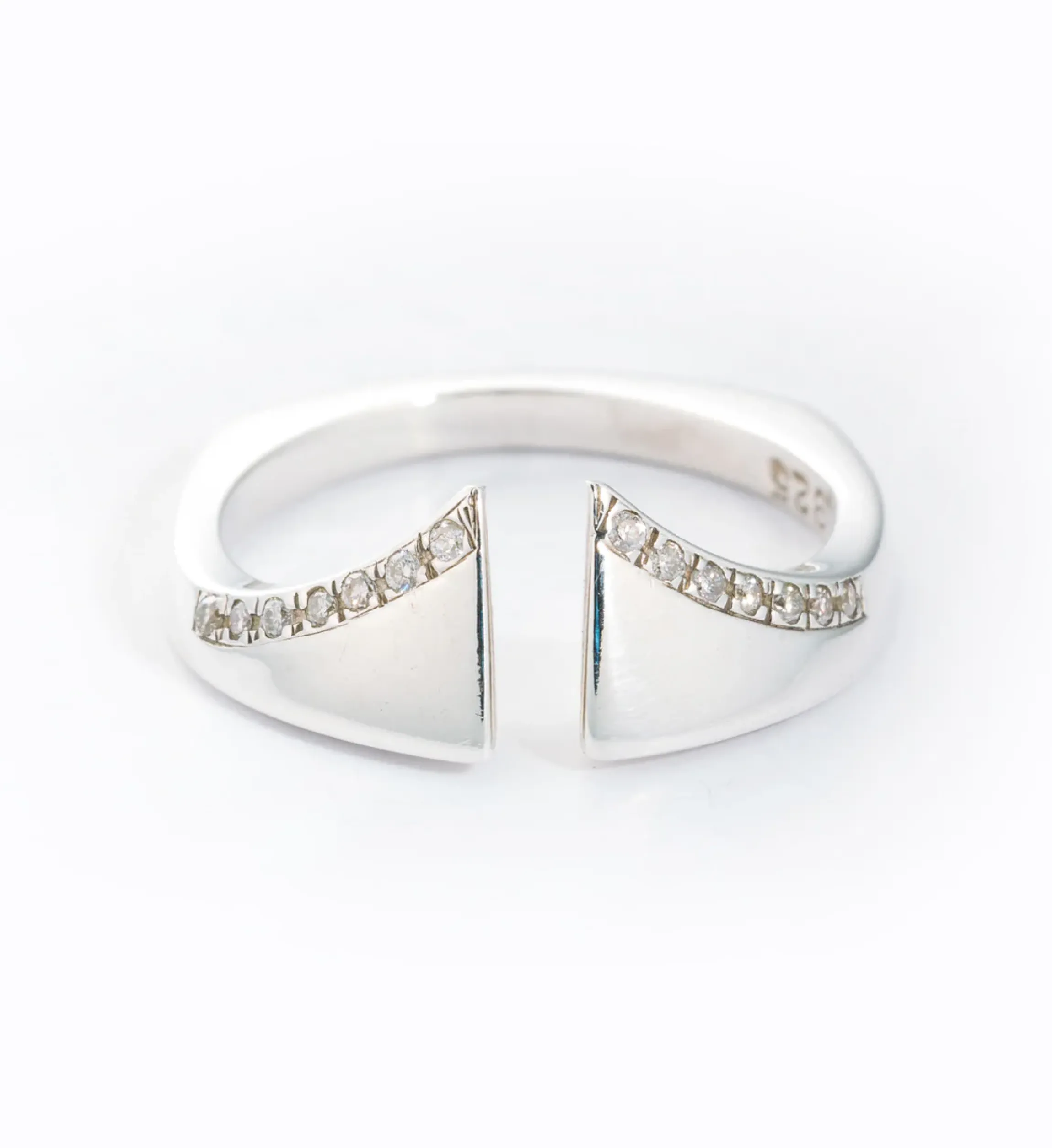 Sparkling tips in white diamond pavé add a luxe, precious element to this essential part of Bliss Lau’s Kaleidoscope series of rings. Inspired by the shifting shapes and patterns housed within the mirror-lined tube, this ring features a split center with peaked points for a perfectly symmetric design. Slot it into Lau’s other rings or stack it with her other simple bands for a look that you can recreate endlessly, each time you get dressed. Made in the U.S.A.