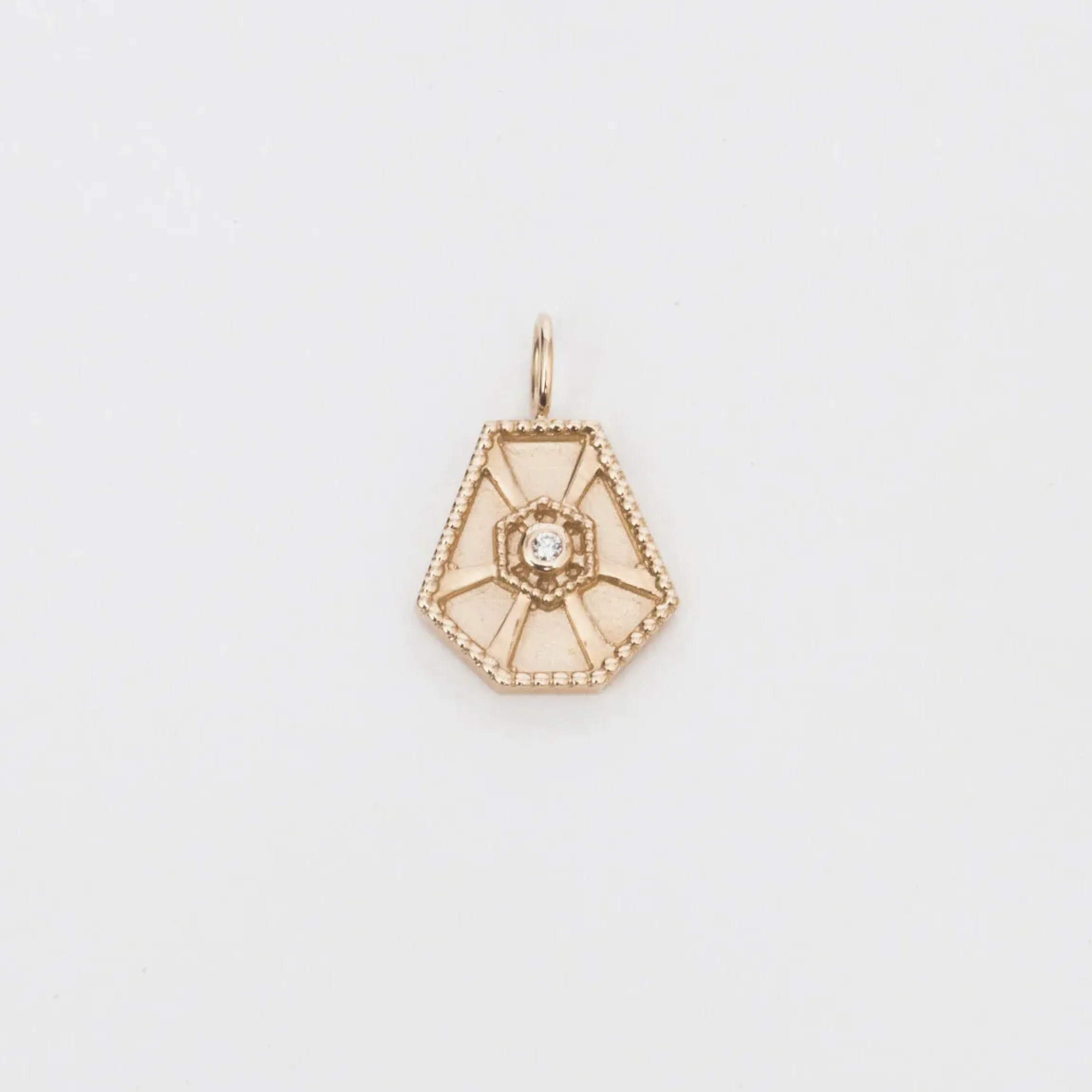 When past poets wrote about Arcadian beauty, we bet they were imagining a landscape lit by the sun like the diamond lights up this elegant gold pendant. A single bezel-set gem throws off six golden rays with two halos of milgrain beading for extra glamour. Slip this charm on your most beloved necklace for a bright new look. Made in the U.S.A.