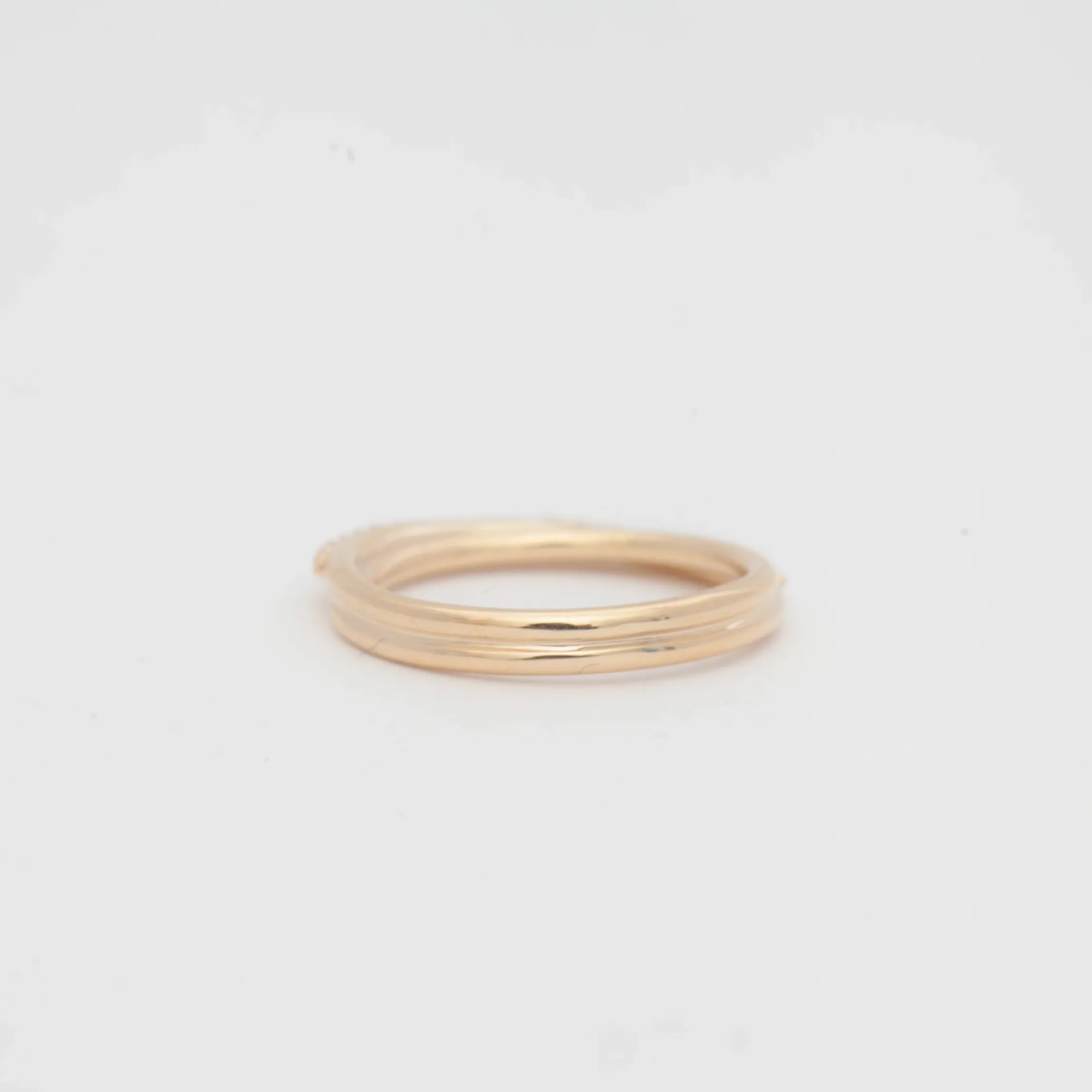 Gold and diamond live in perfect harmony on this delicate band that updates classic styling with undulating form. Inspired by the Moebius loop, designer Wing Yau transforms esoteric mathematics into sculptural wonder. Easy to wear everyday, yet extraordinary in its finish, this style makes for a perfect fashion piece or a chic alternative wedding band. Made in the U.S.A.