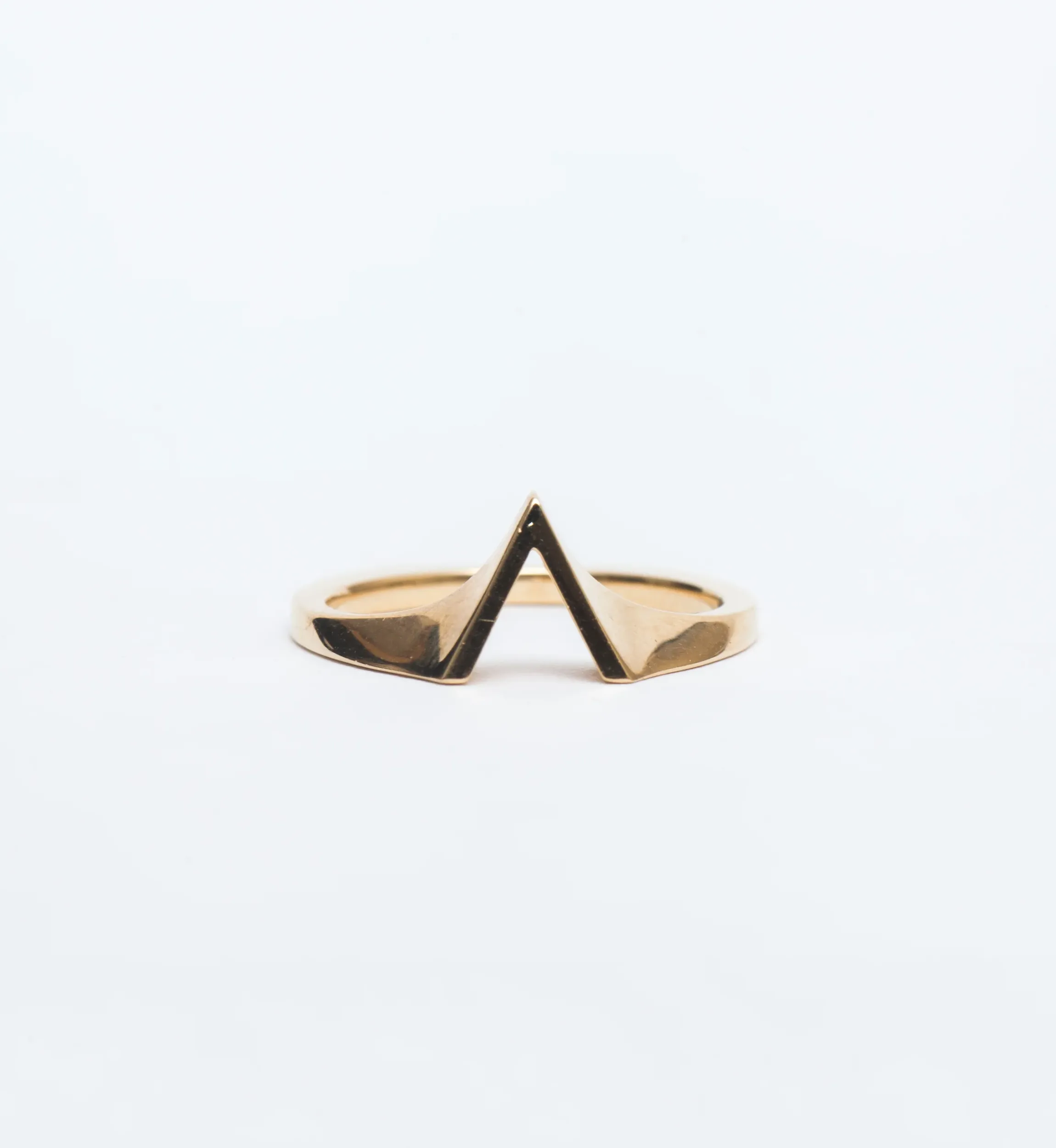 The dramatic angles of this solid gold ring make a perfect, modern frame for Bliss Lau’s signature solitaire rings. Crafted out of solid 18 karat yellow gold, the Spire Ring draws you in with its architectural shape and precise edges. Stack it next to cathedral-set gems to let your style reach new heights. Made in the U.S.A.