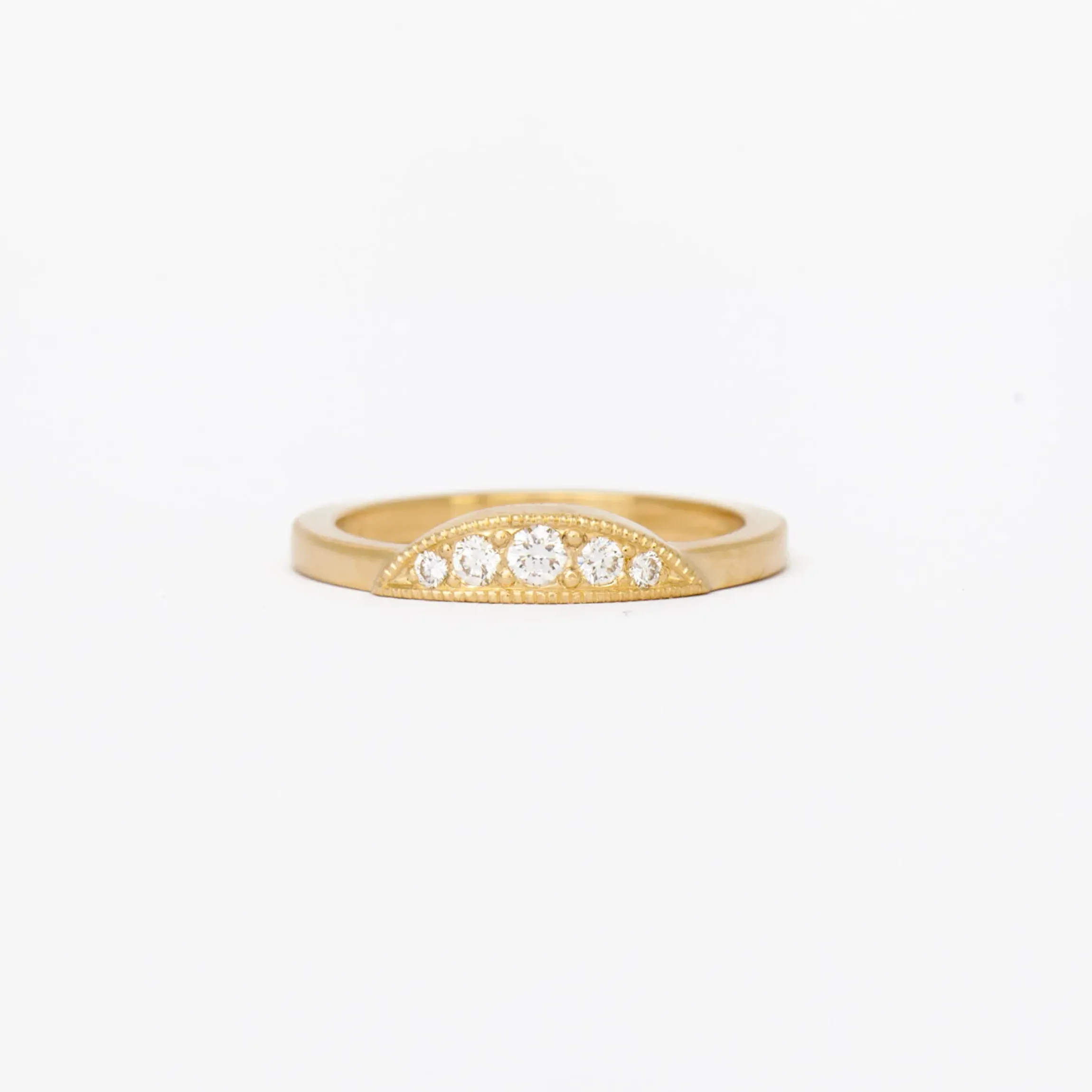 Just like a sunrise, the sliver of light represents a fleeting moment in time and a new beginning. Featuring five round, pavé set brilliant white diamonds graduated in size, it can be worn as a wedding band or as an addition to any everyday ring stack. Made in the U.S.A.